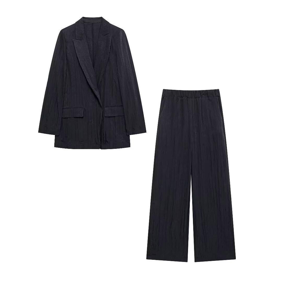 Conjunto de chaqueta cárdigan arrugada con pantalones de pierna ancha para mujer europea y americana de comercio exterior transfronterizo de Amazon, verano 2024