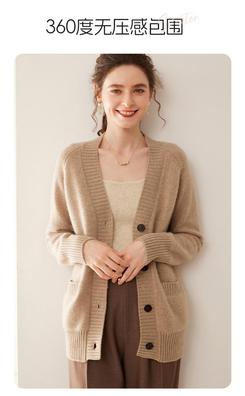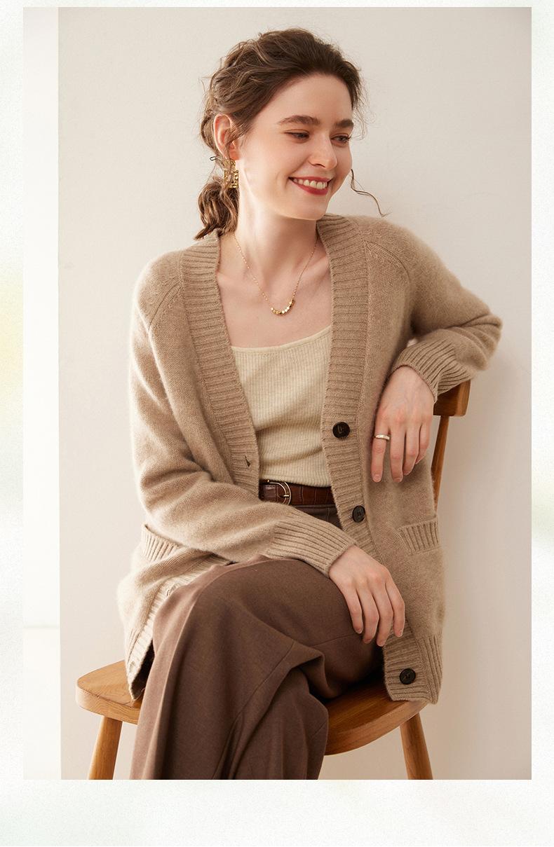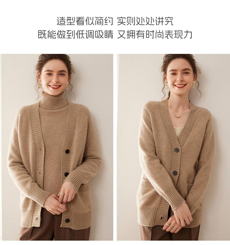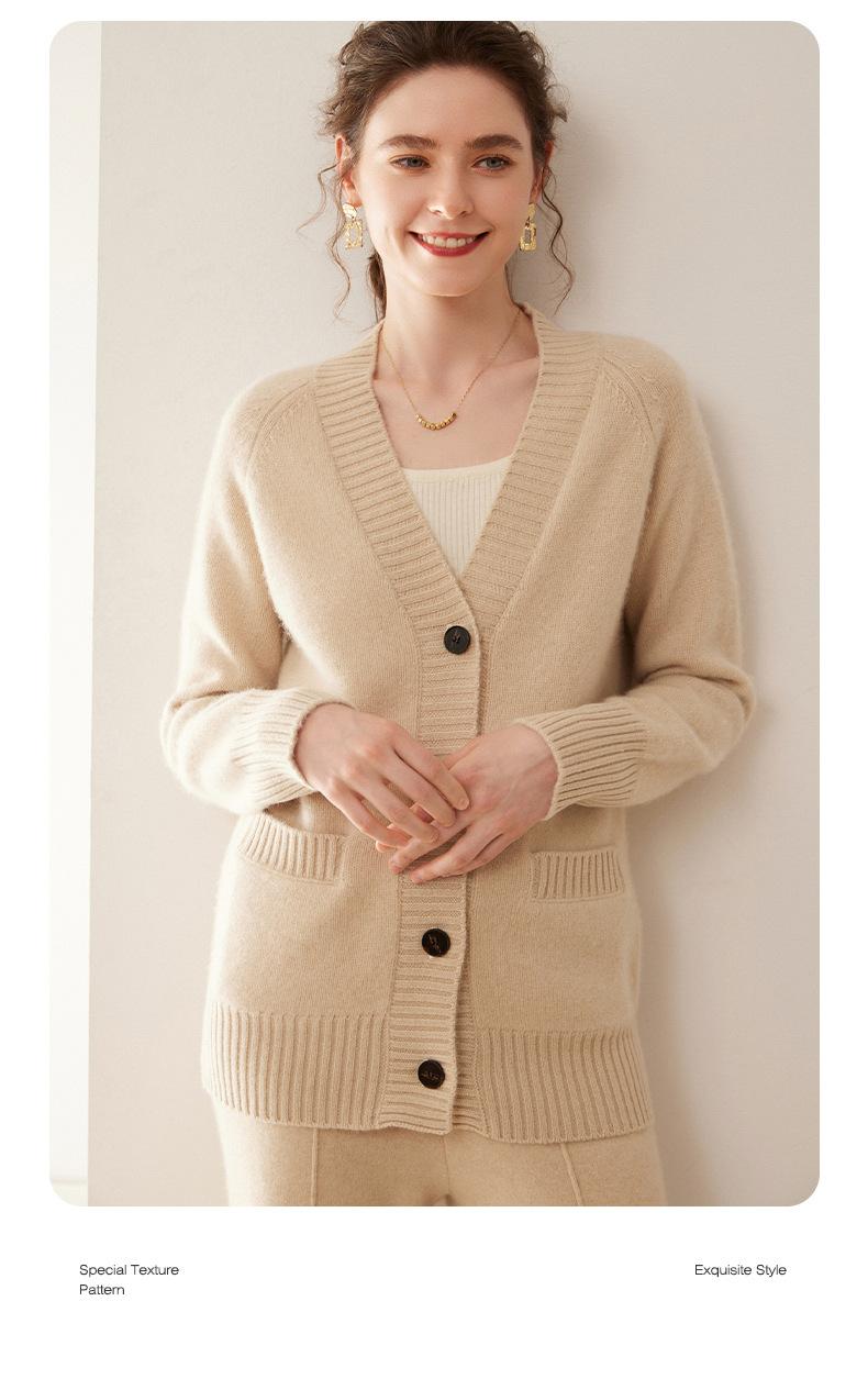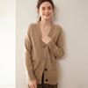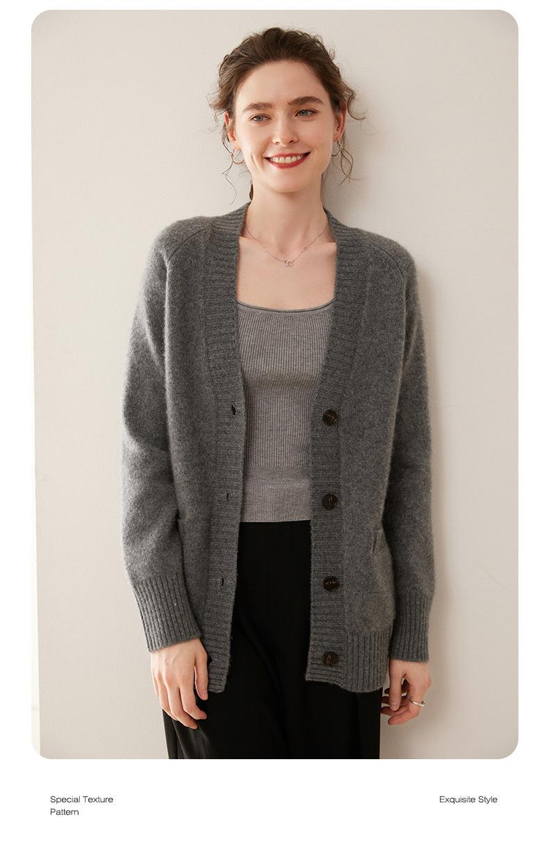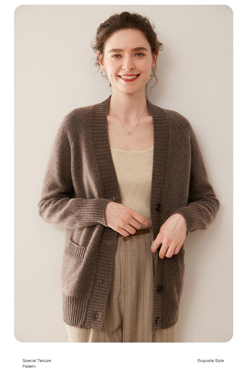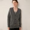 Cárdigan de cachemira con cuello en V para mujer, abrigo holgado y grueso, suéter de punto de color liso con bolsillo informal, otoño e invierno de 2024