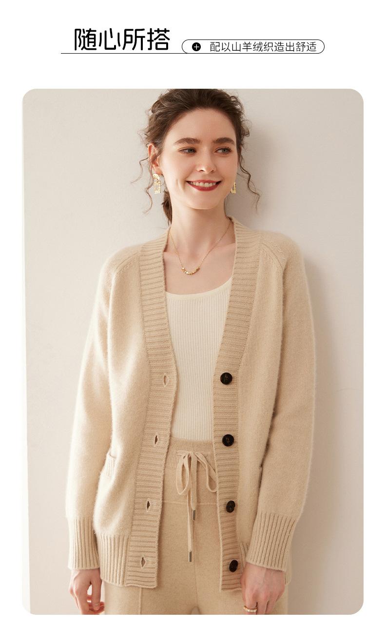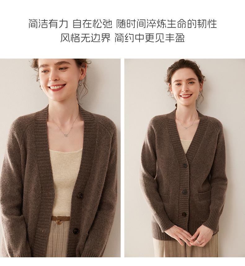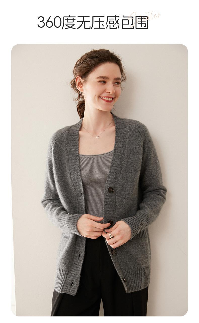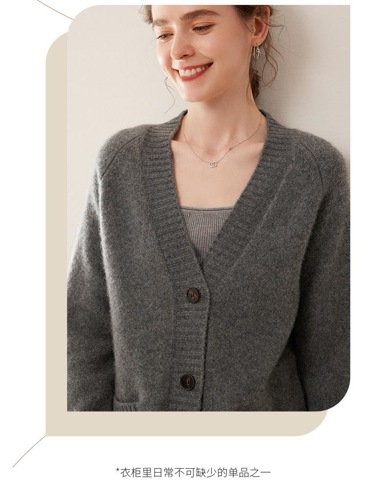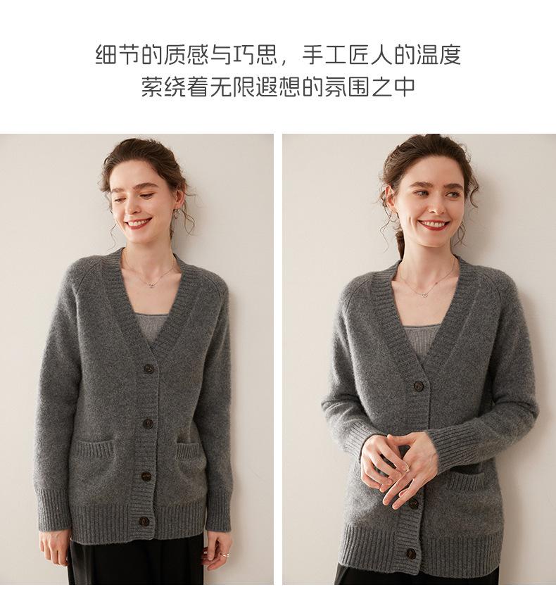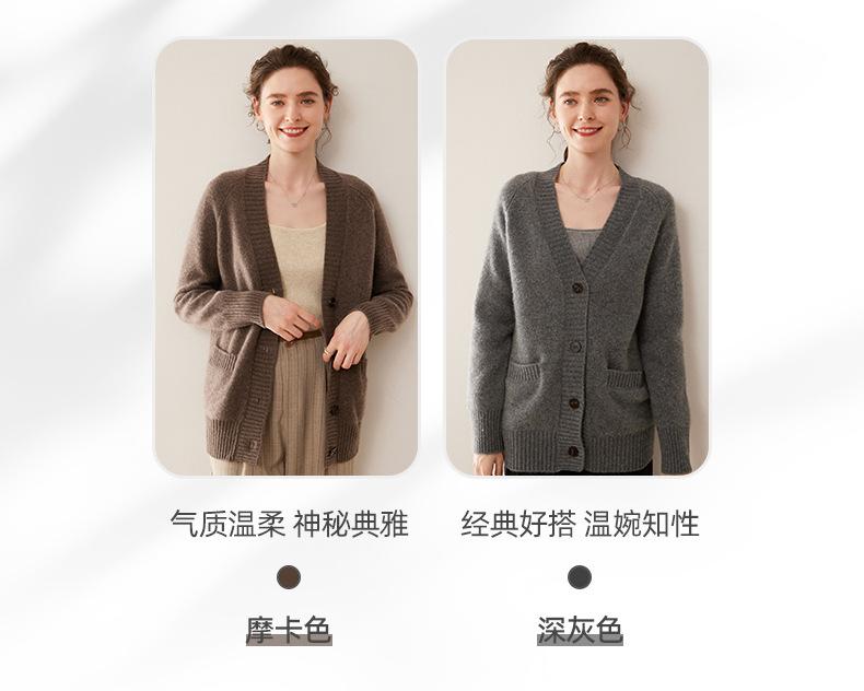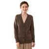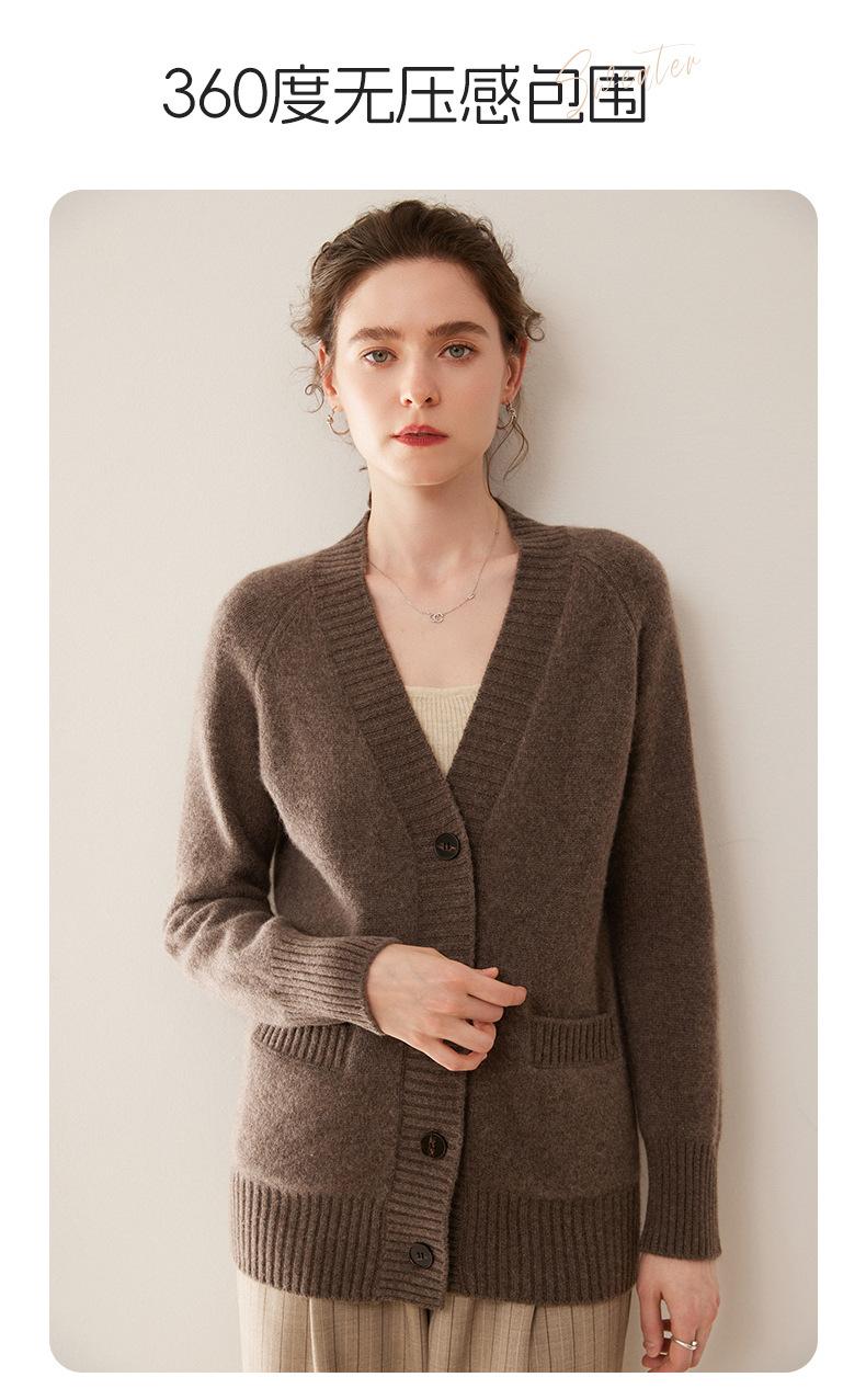 Cárdigan de cachemira con cuello en V para mujer, abrigo holgado y grueso, suéter de punto de color liso con bolsillo informal, otoño e invierno de 2024