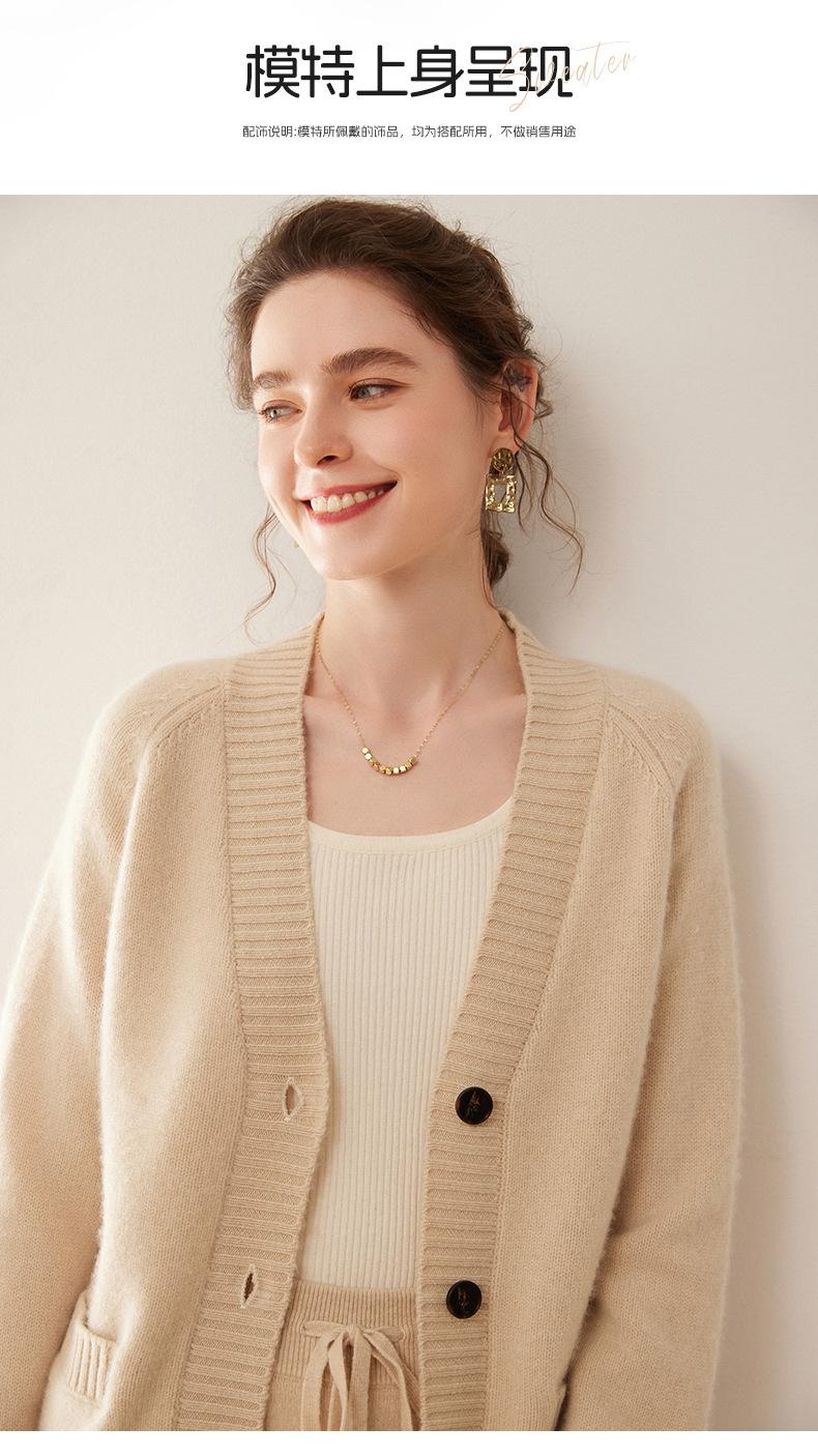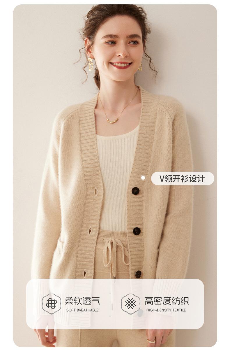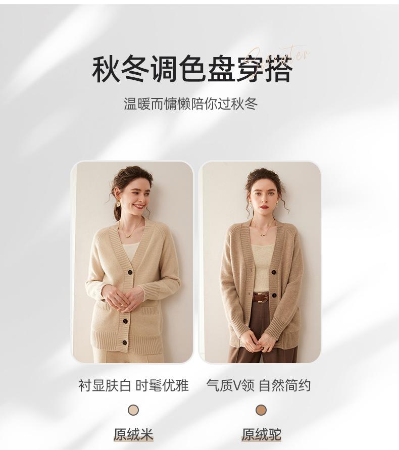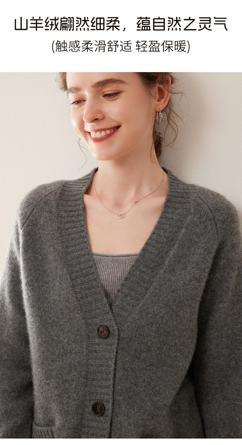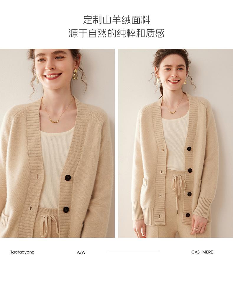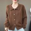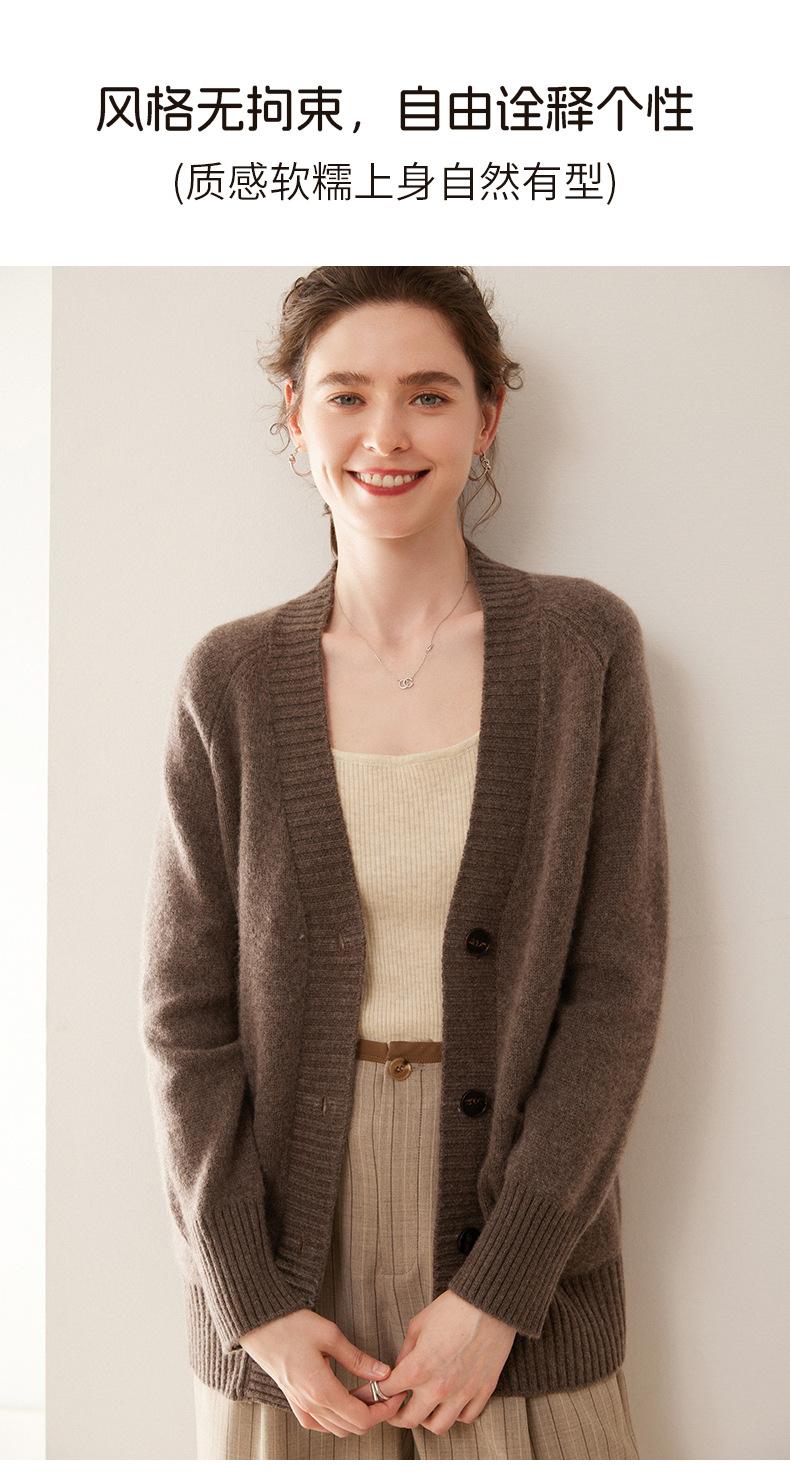 Cárdigan de cachemira con cuello en V para mujer, abrigo holgado y grueso, suéter de punto de color liso con bolsillo informal, otoño e invierno de 2024