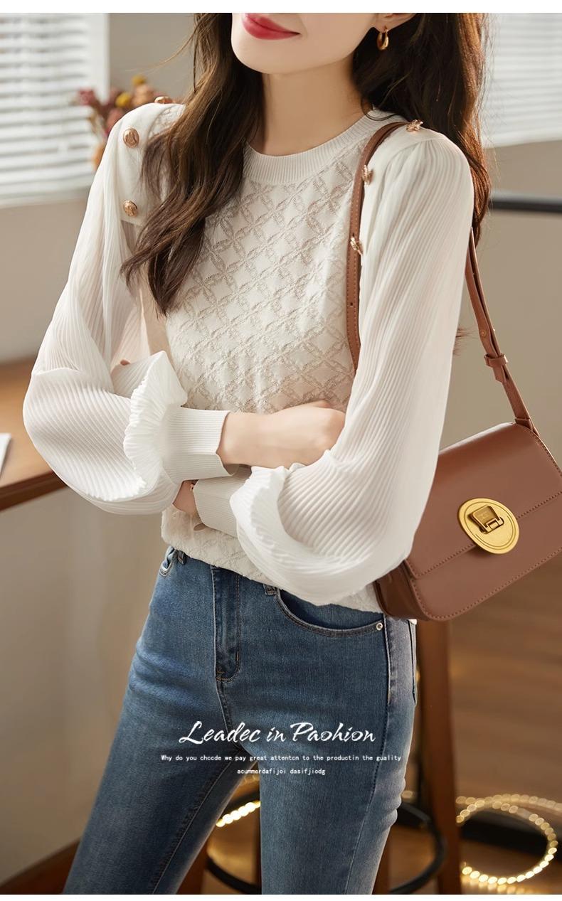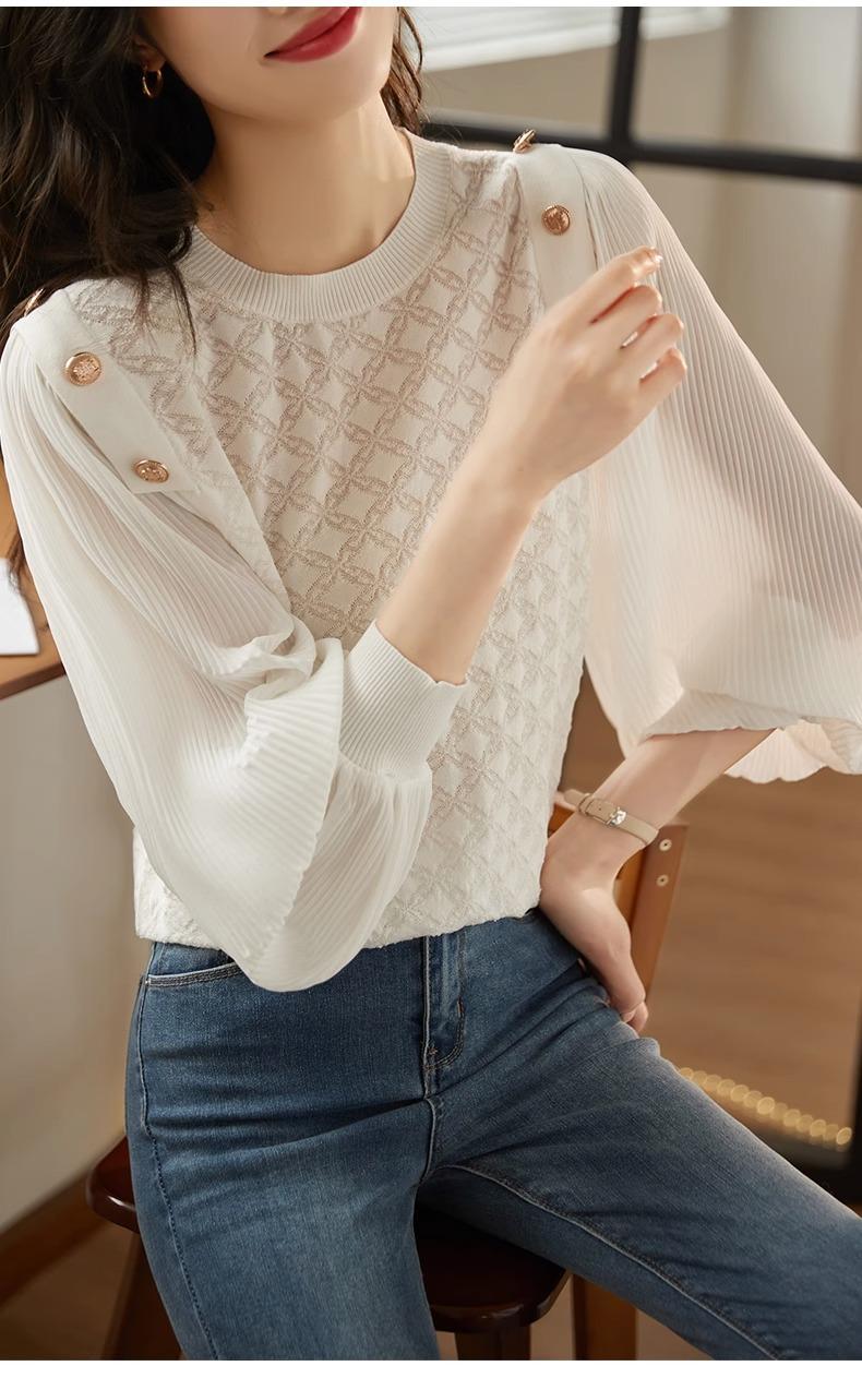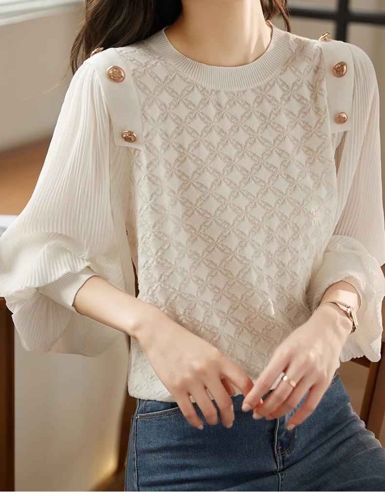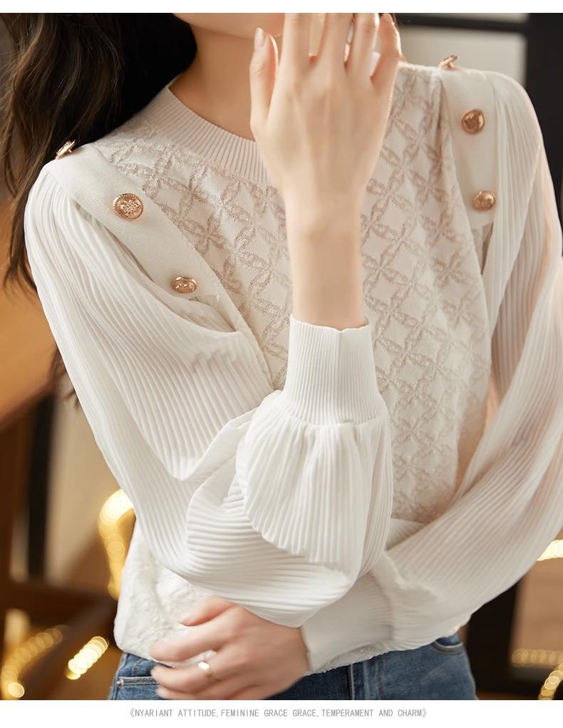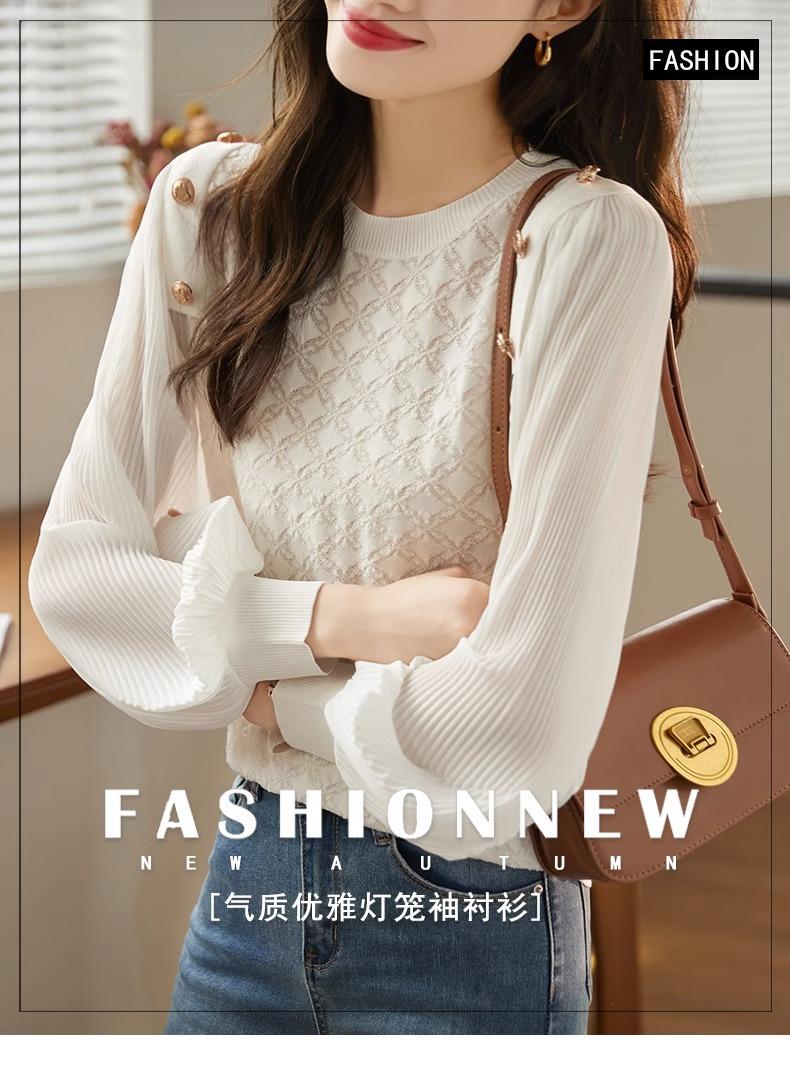 Blusa de gasa de moda de otoño 2024 para mujer, hermosa camisa holgada informal de manga larga estilo occidental antiedad