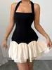 Falda corta ajustada de una pieza, estilo europeo y americano, de verano 2023, para mujer, nueva moda, con corte en jacquard, manga única, cuello redondo y cintura alta