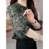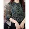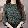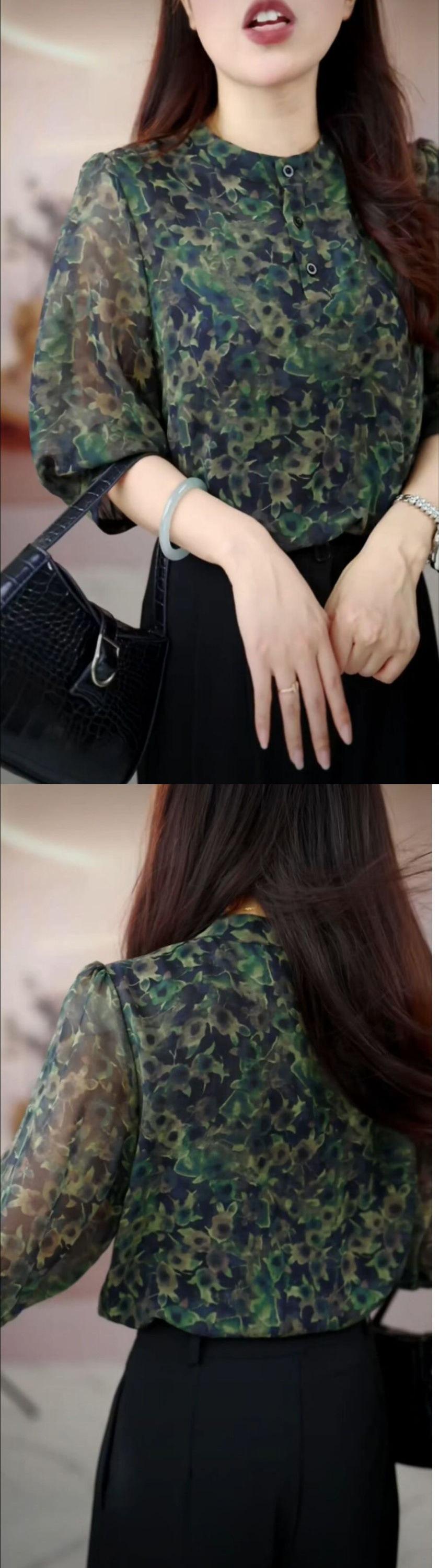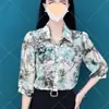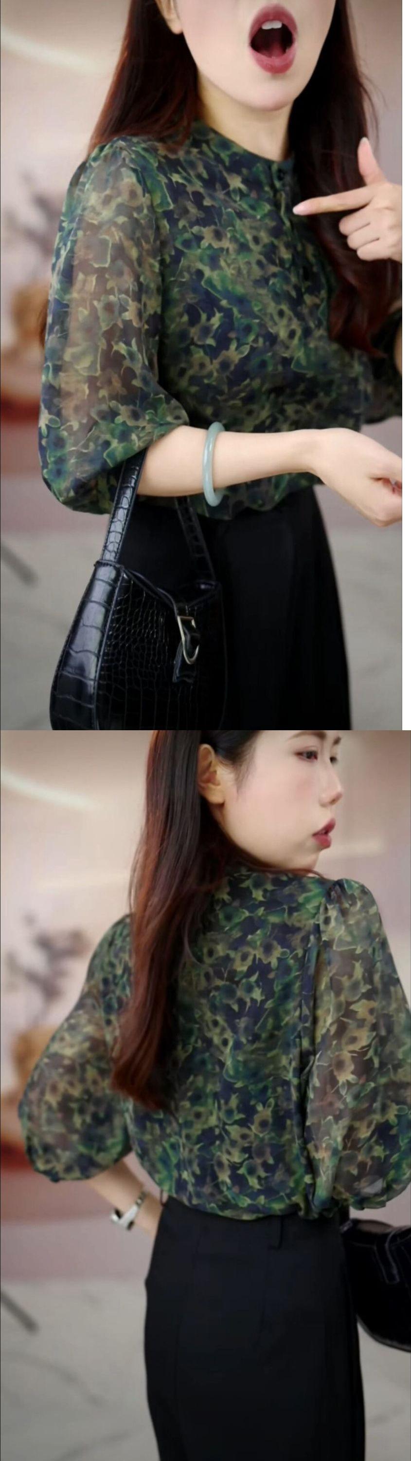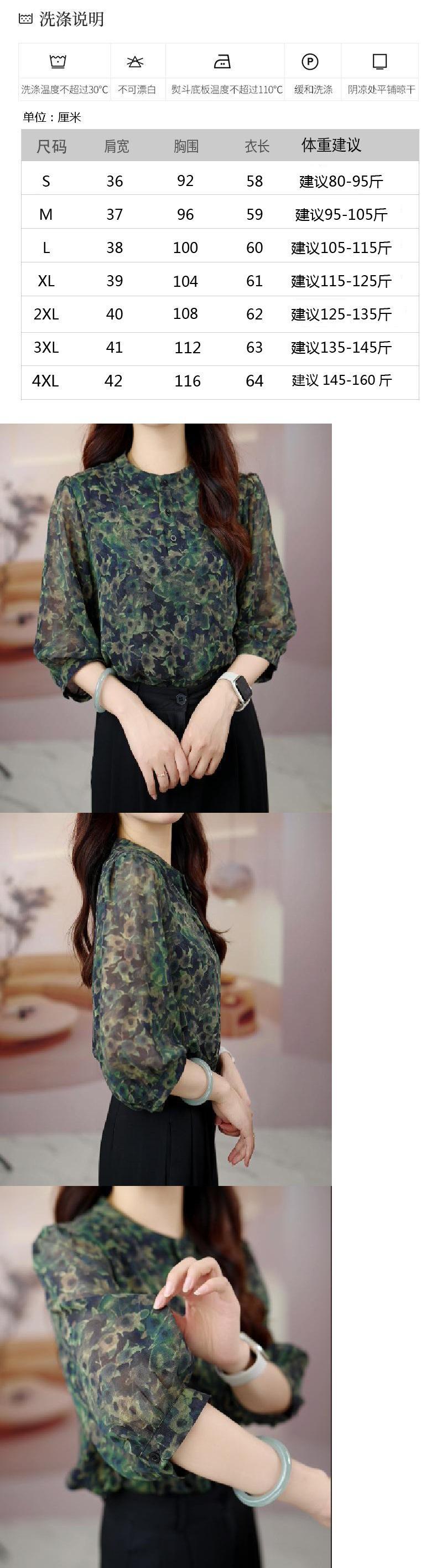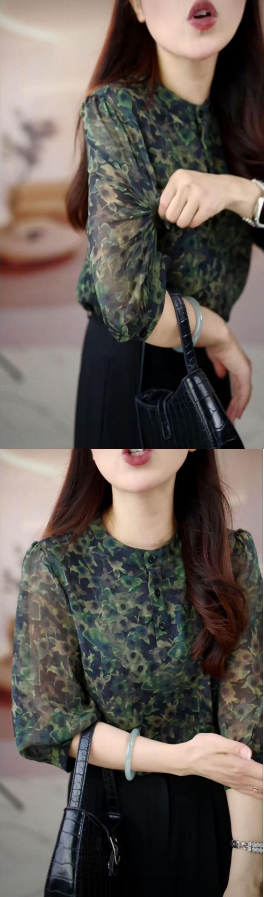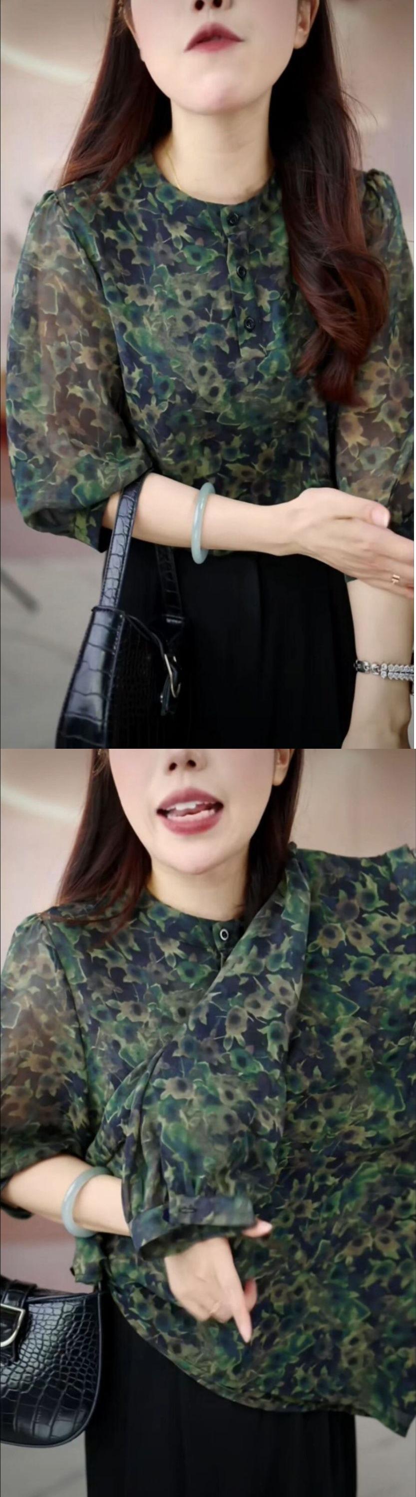 Camisa de nieve floral de manga tres cuartos para mujer, verano 2024. Versátil, holgada, ajustada, antiedad, cubre abdomen y elegante.