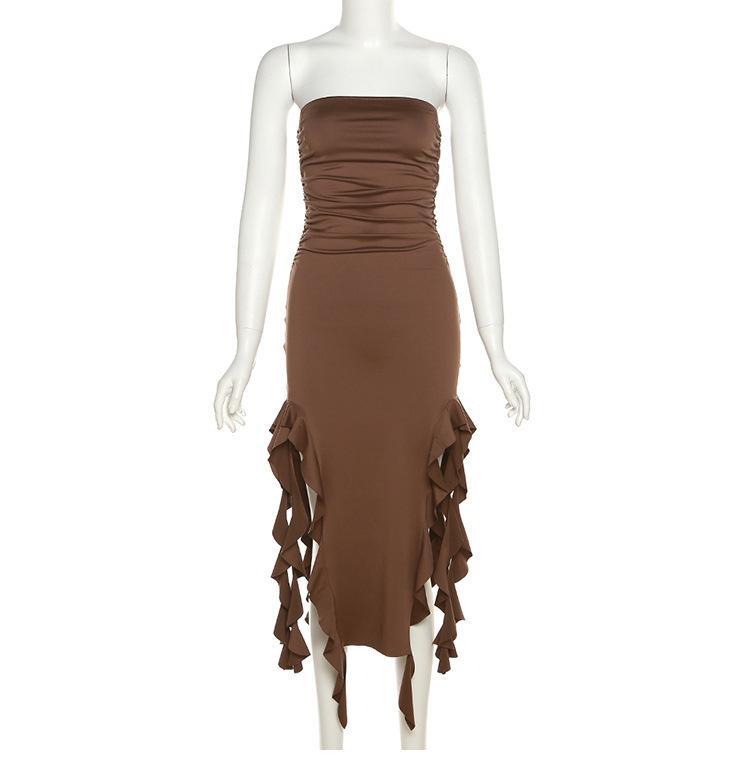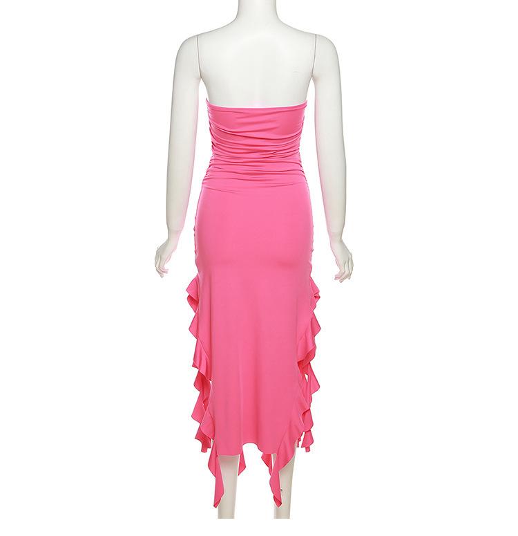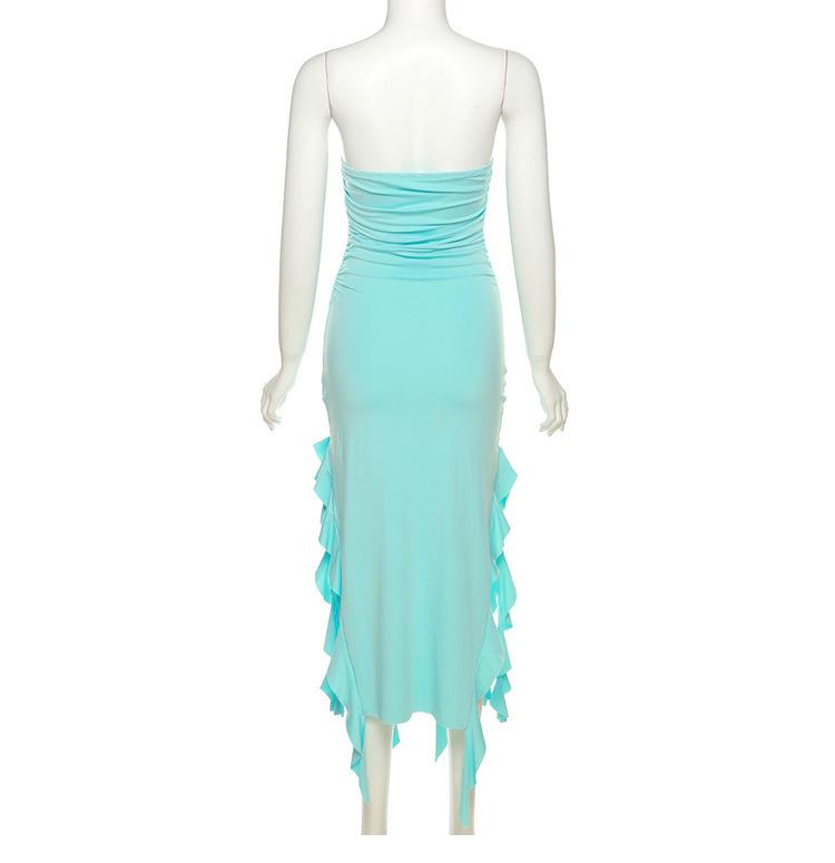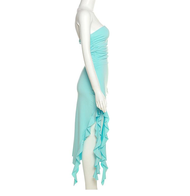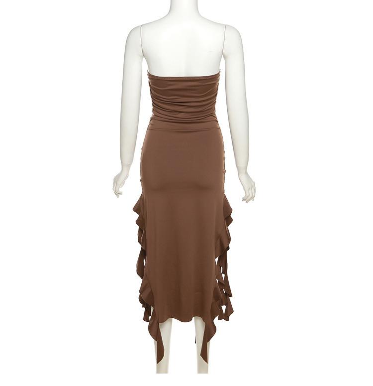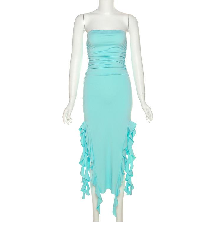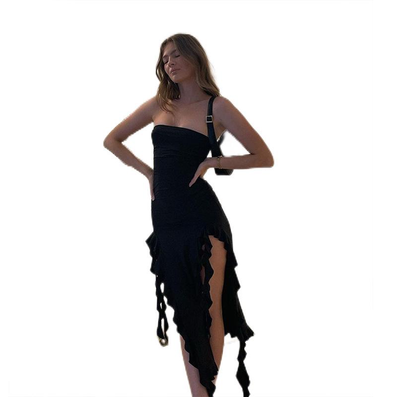 Estilo Europeo y Americano Moda de Primavera 2025 Trendy Nuevo Top de Tubo de un Hombro para Mujer Vestido Asimétrico Slim Cubre Caderas