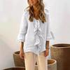 2024 Otoño Nuevo Transfronterizo Moda Europea y Americana Cuello en V Manga Volante Holgado Casual Mujeres