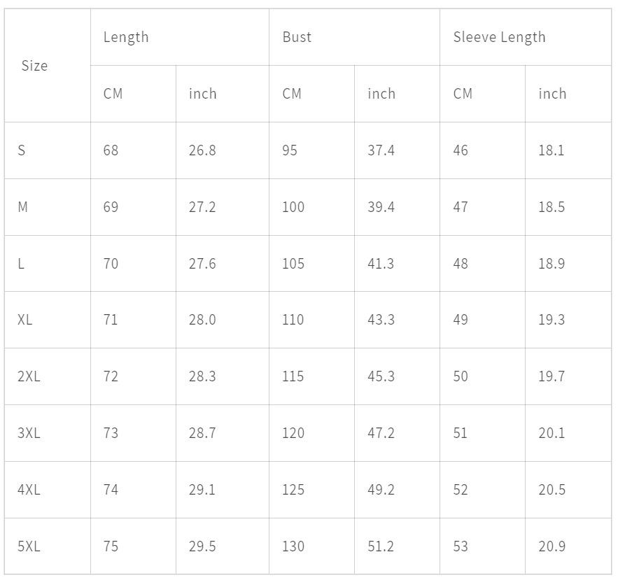 S, M, L, XL, XXL, 3XL, 4XL, 5XL