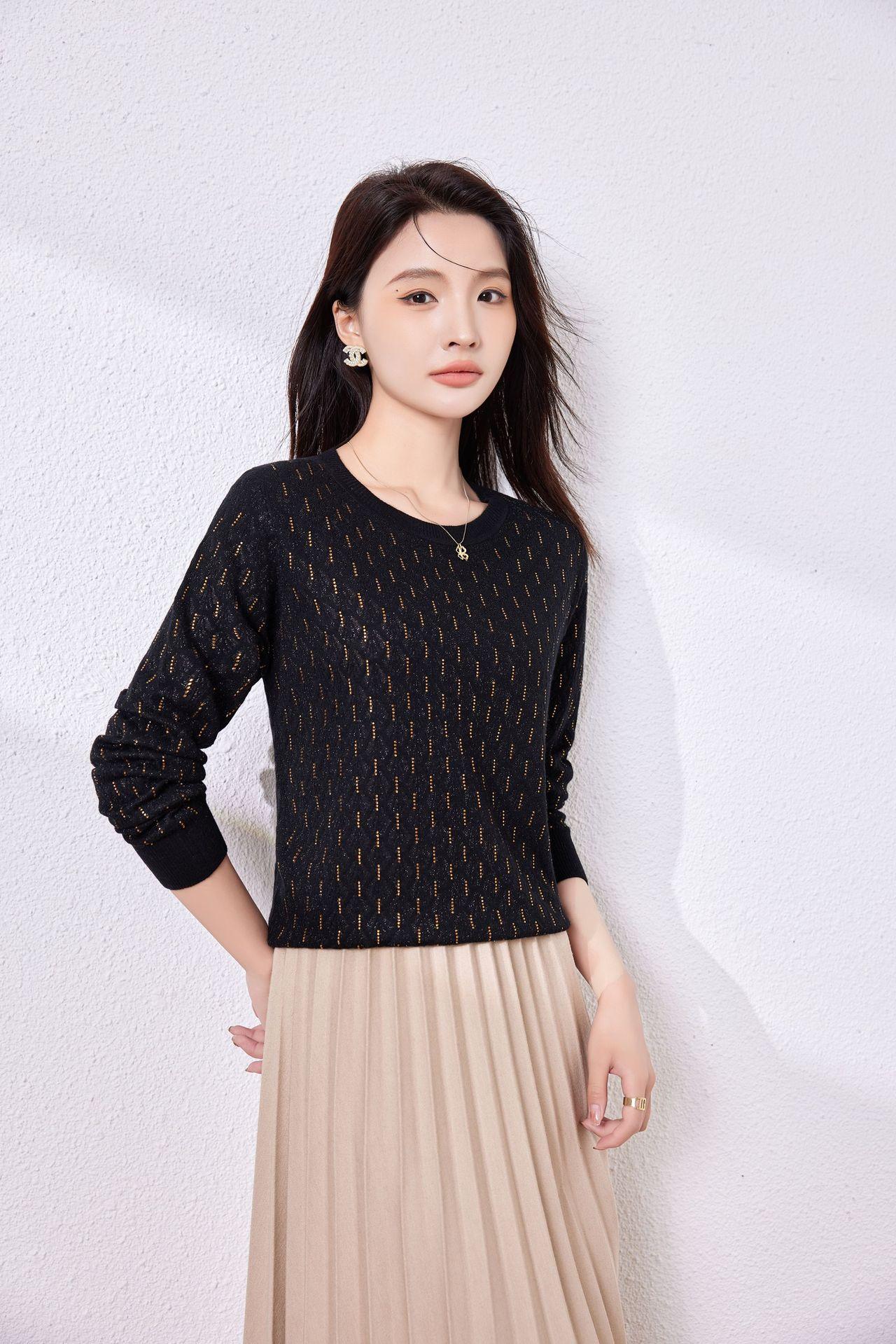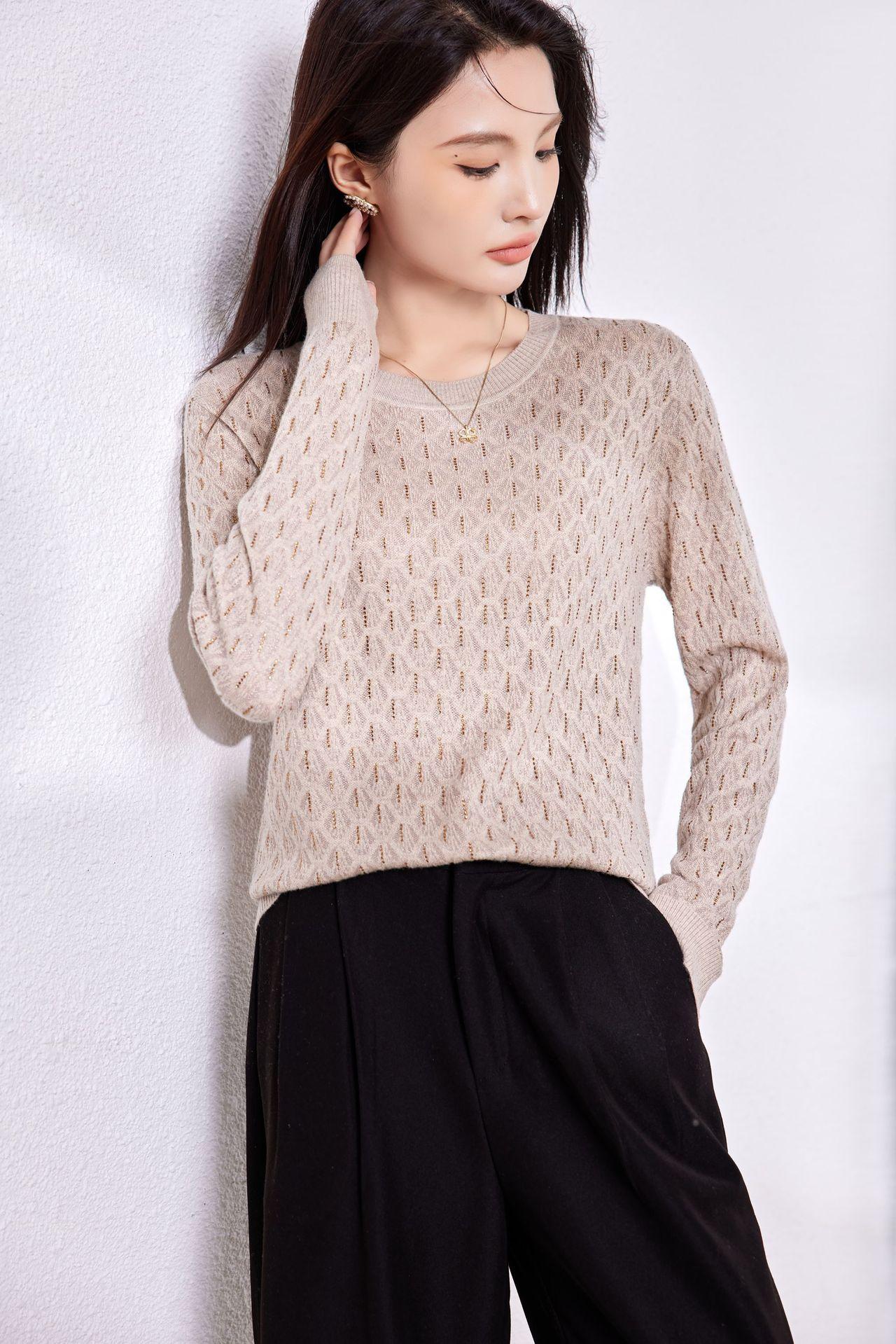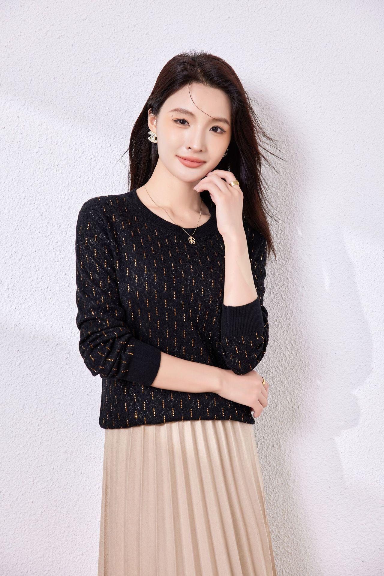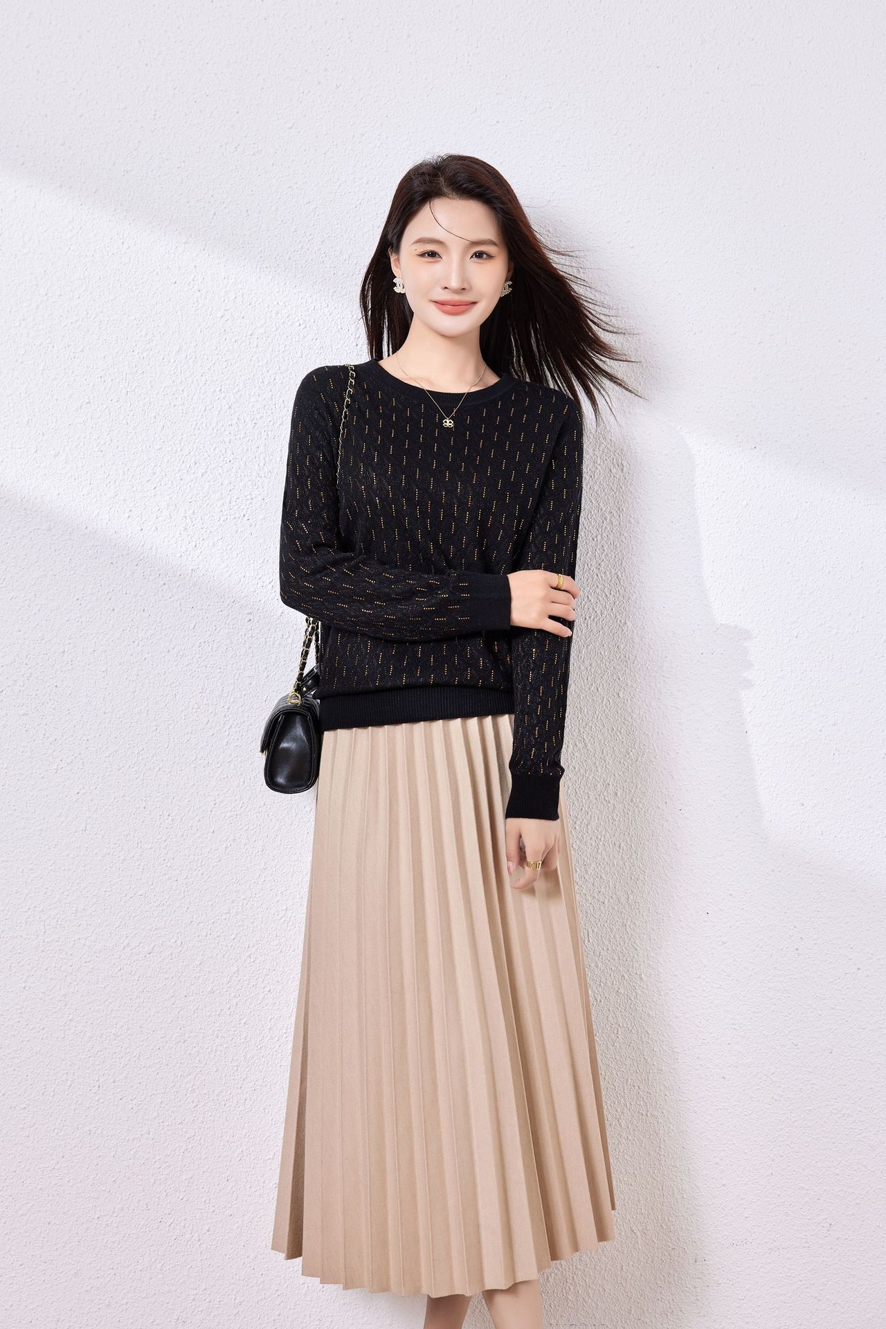 Suéter de punto suave y agradable para la piel con cuello redondo de mezcla de seda y lana para mujer, nuevo estilo de otoño 2025, suéter tipo jersey ajustado