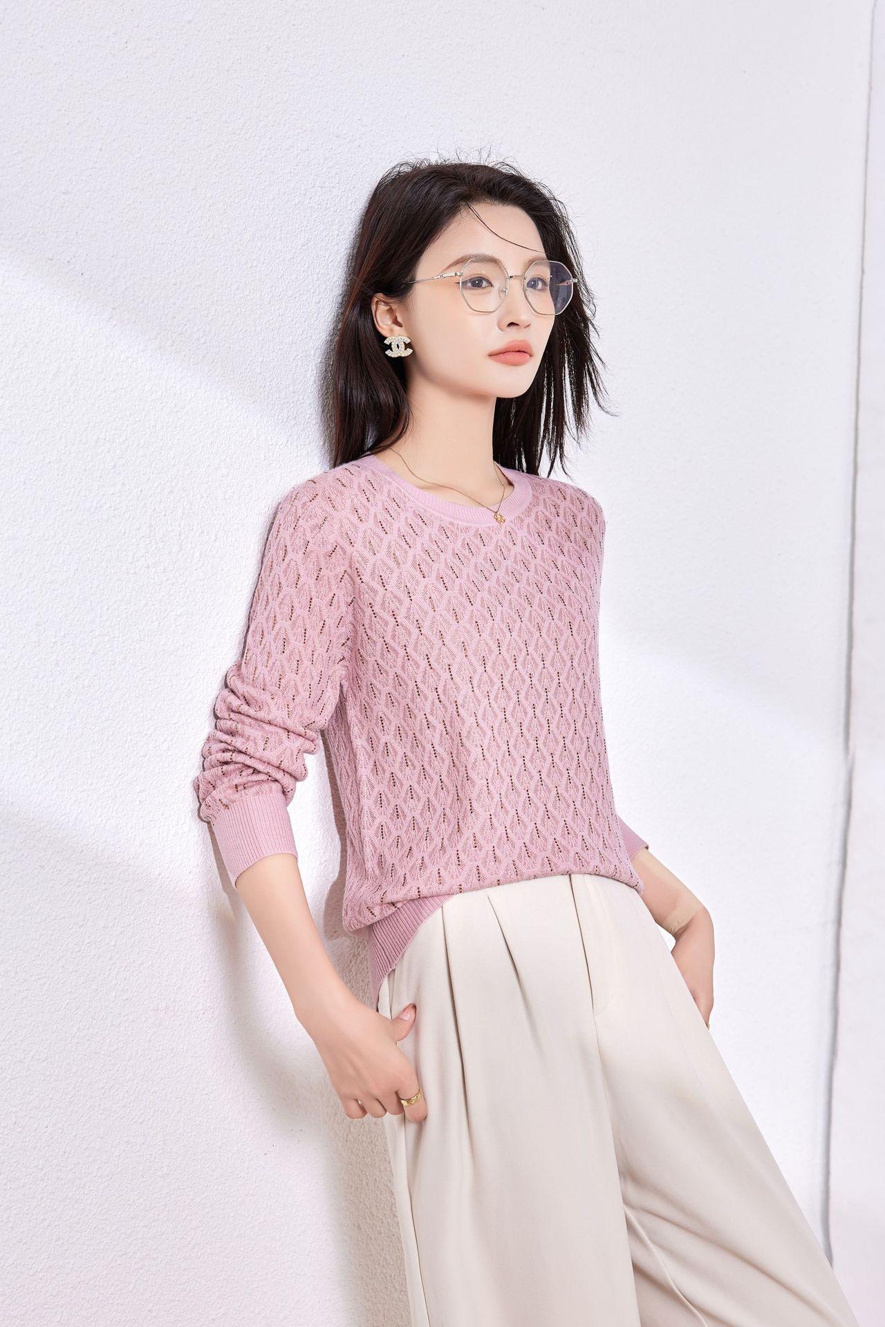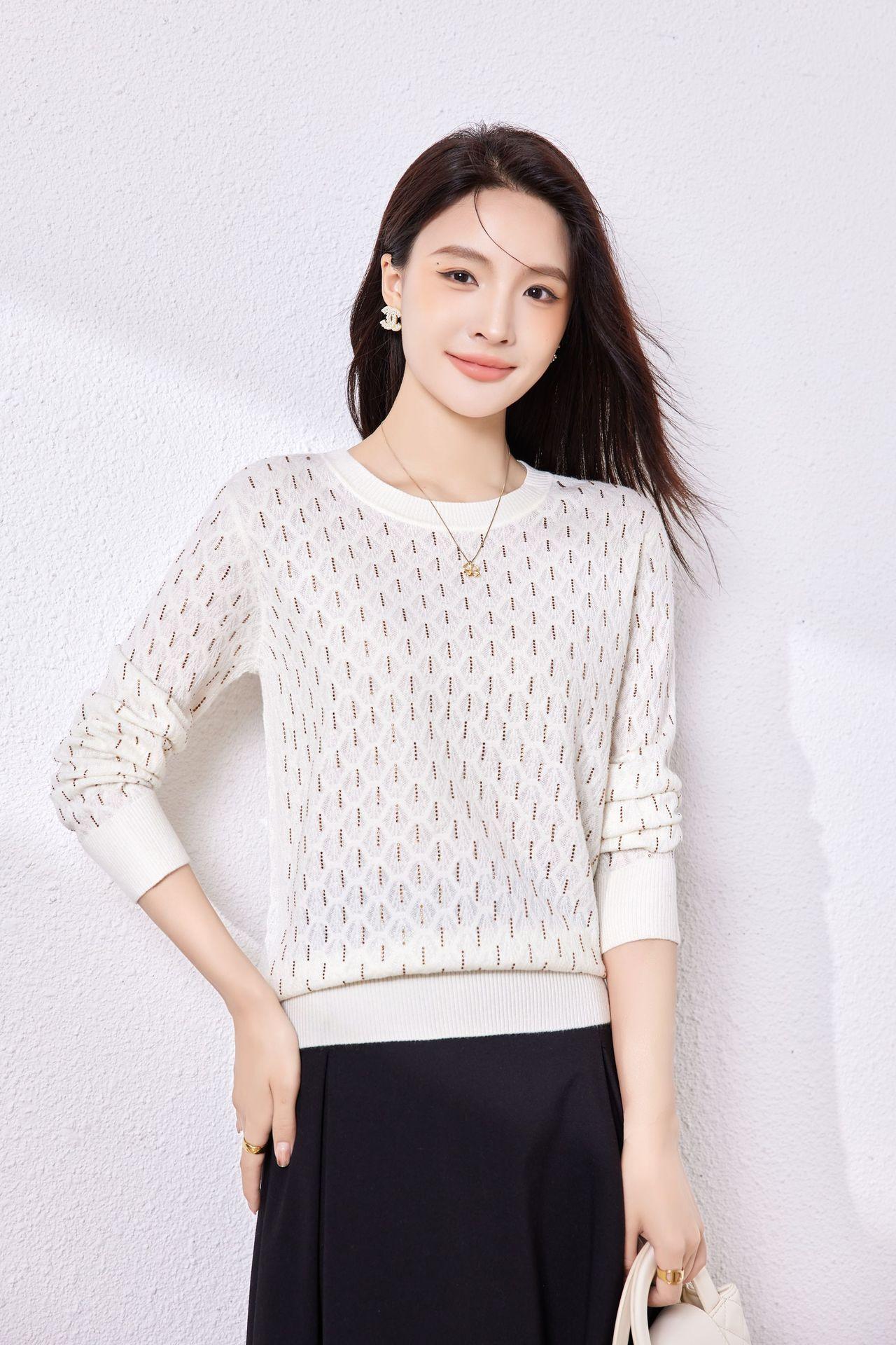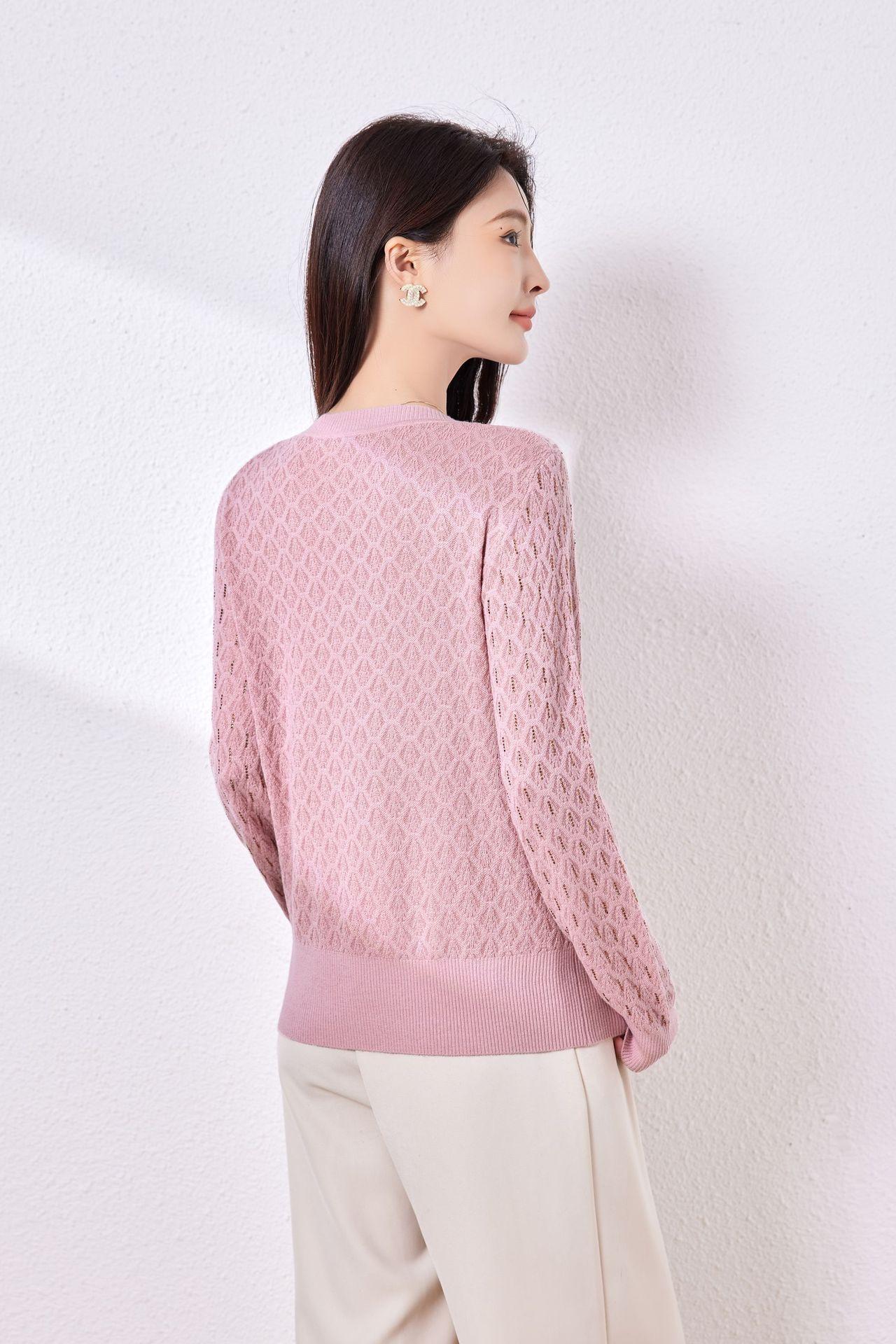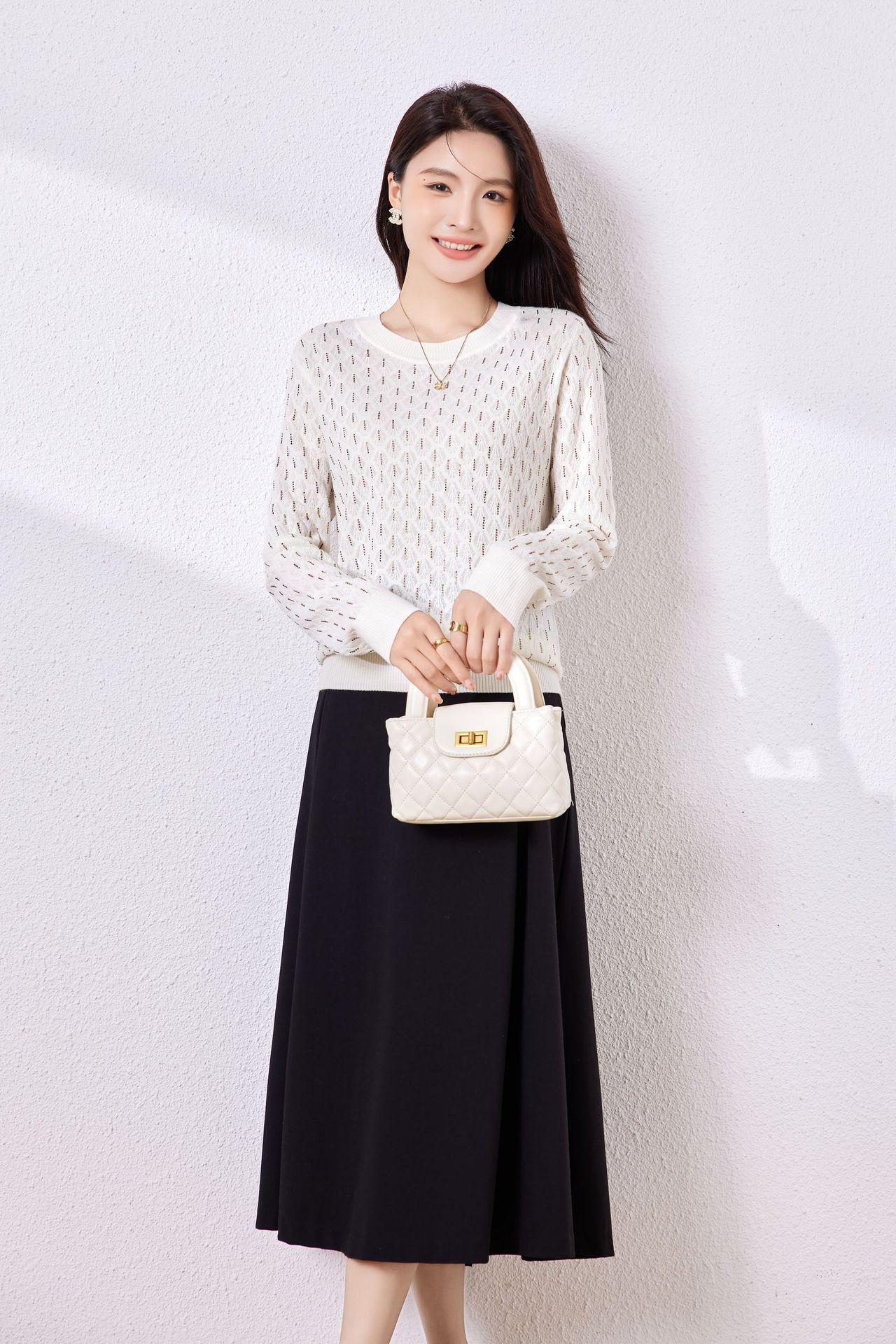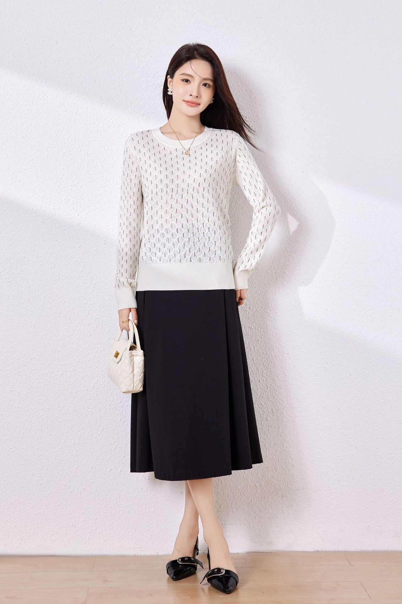 Suéter de punto suave y agradable para la piel con cuello redondo de mezcla de seda y lana para mujer, nuevo estilo de otoño 2025, suéter tipo jersey ajustado