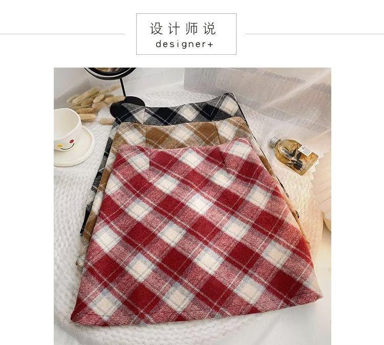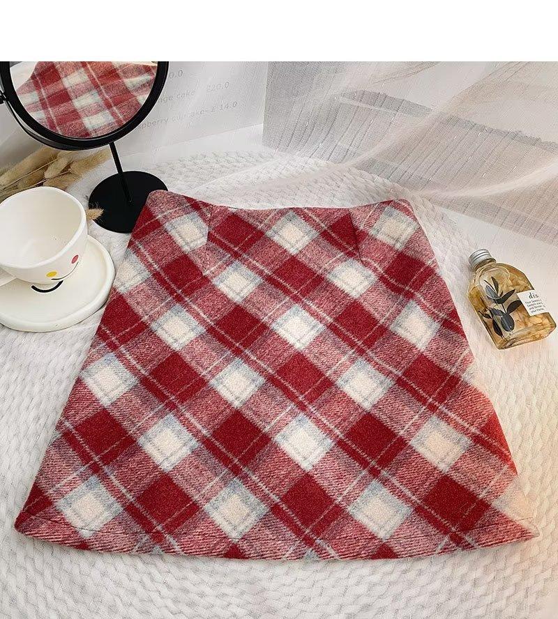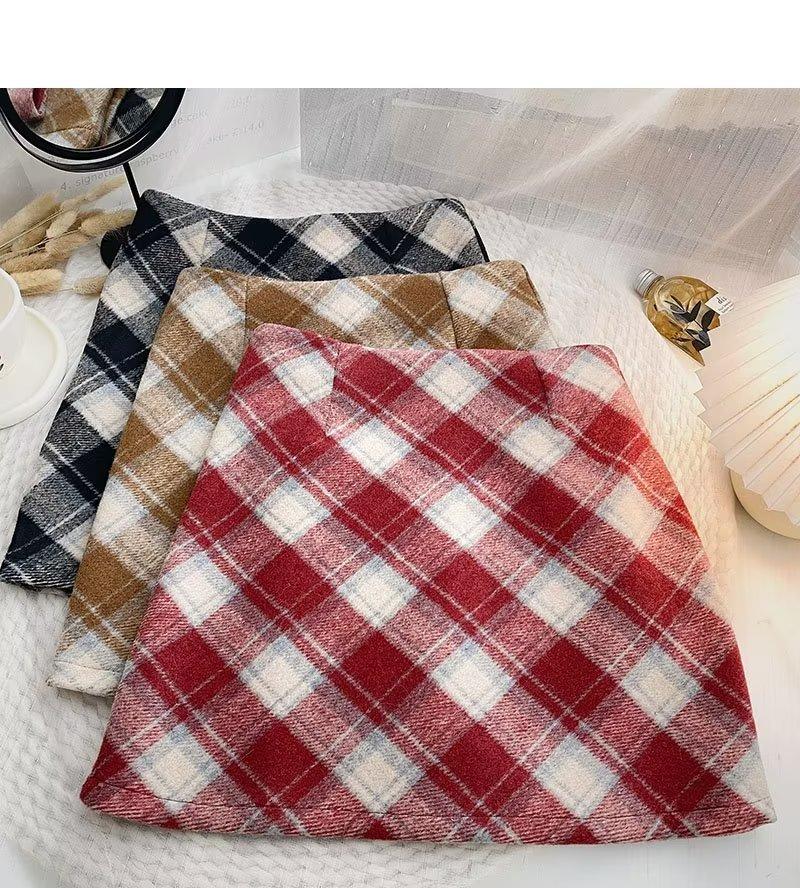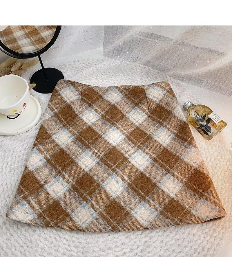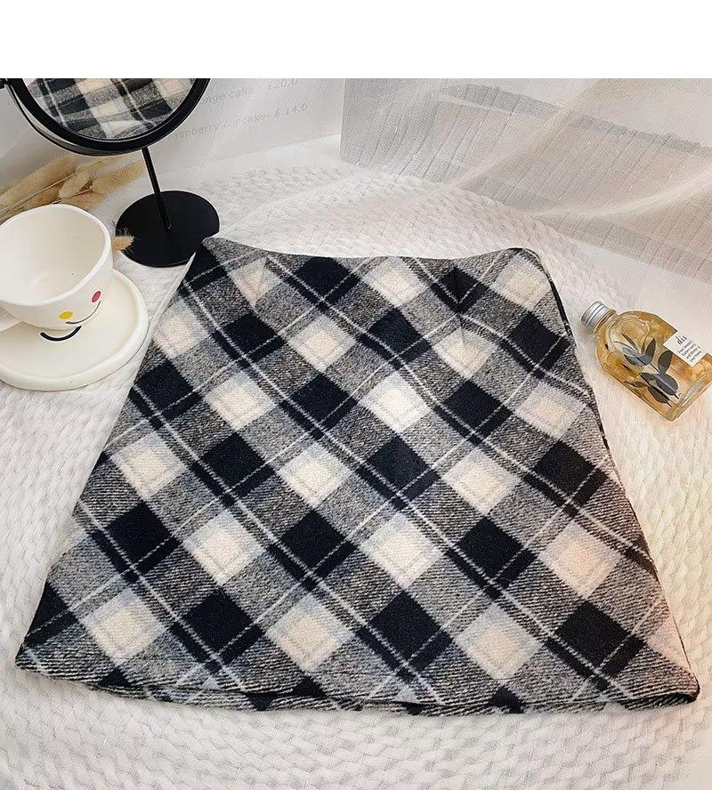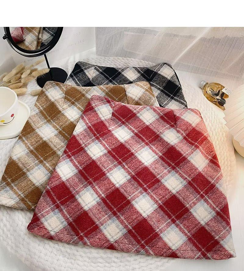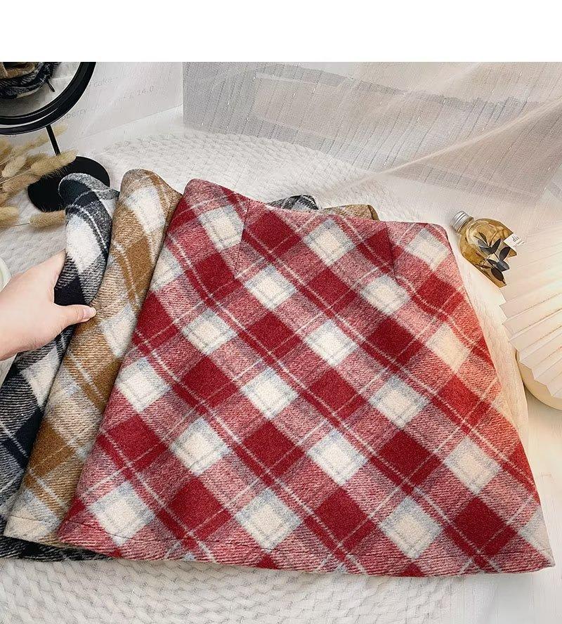Falda plisada de cintura alta para mujer, estilo paraguas, para otoño e invierno 2024, que cubre la cadera y adelgaza, vestido corto de lana.