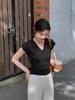 Camiseta de punto de clavícula francesa de manga corta, cárdigan de verano 2024, nuevo top corto ajustado con cuello en V puro