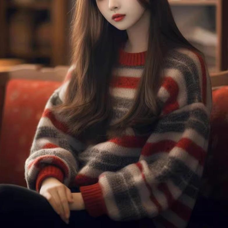 Suéter retro de rayas contrastantes de principios de primavera y otoño para mujer, estilo informal de invierno 2024, nuevo suéter exterior suave y encerado.