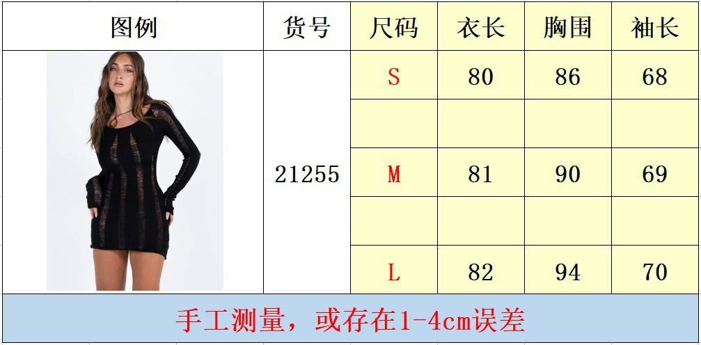 Nuevo verano 2023 AliExpress cuello redondo manga larga hueco sexy perspectiva cadera vestido corto tejido fino
