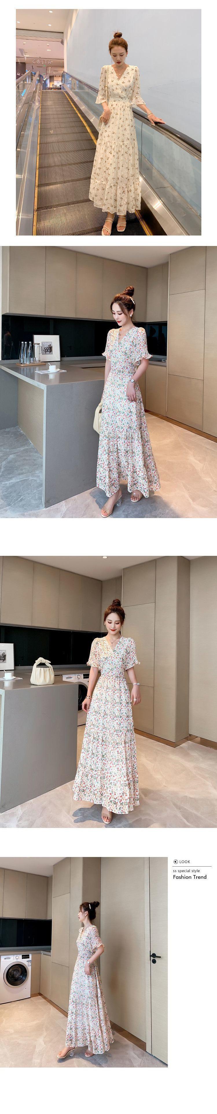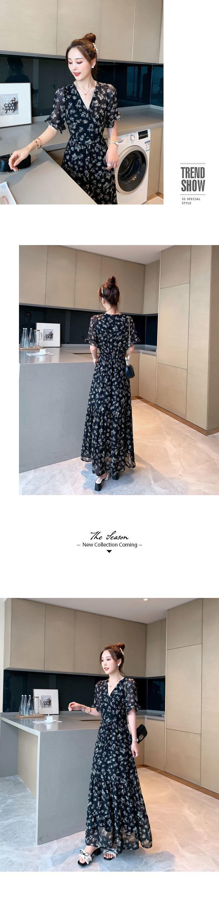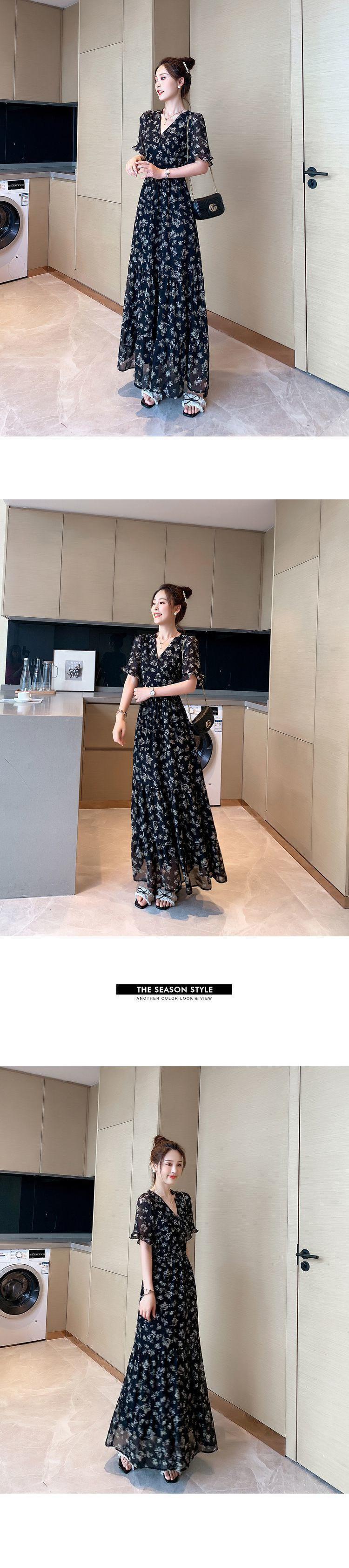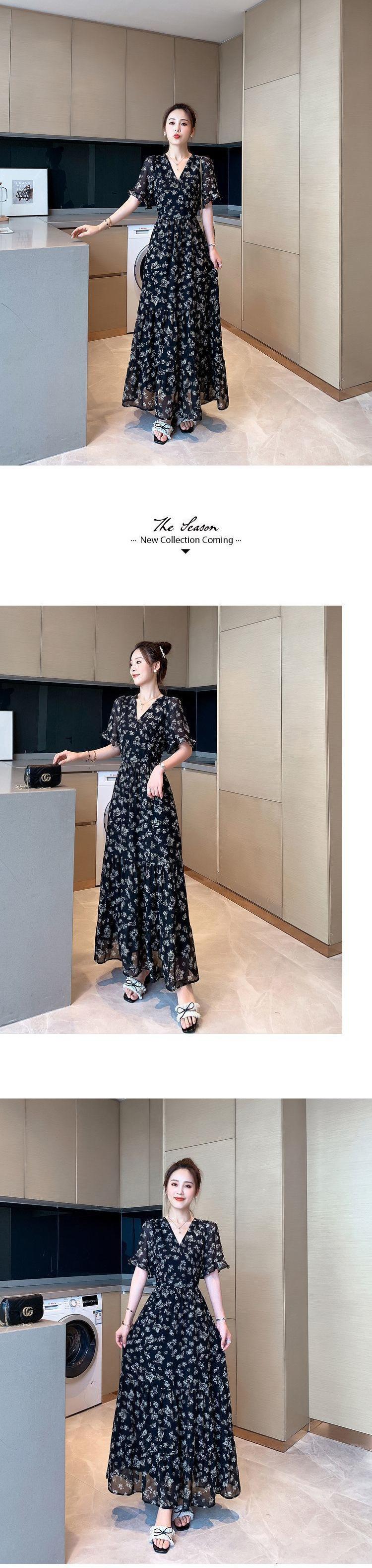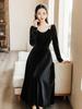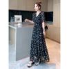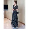 Vestido floral de gasa de alta calidad, nuevo vestido de verano con estampado de bosque francés, falda larga hasta los tobillos, falda negra para mujer