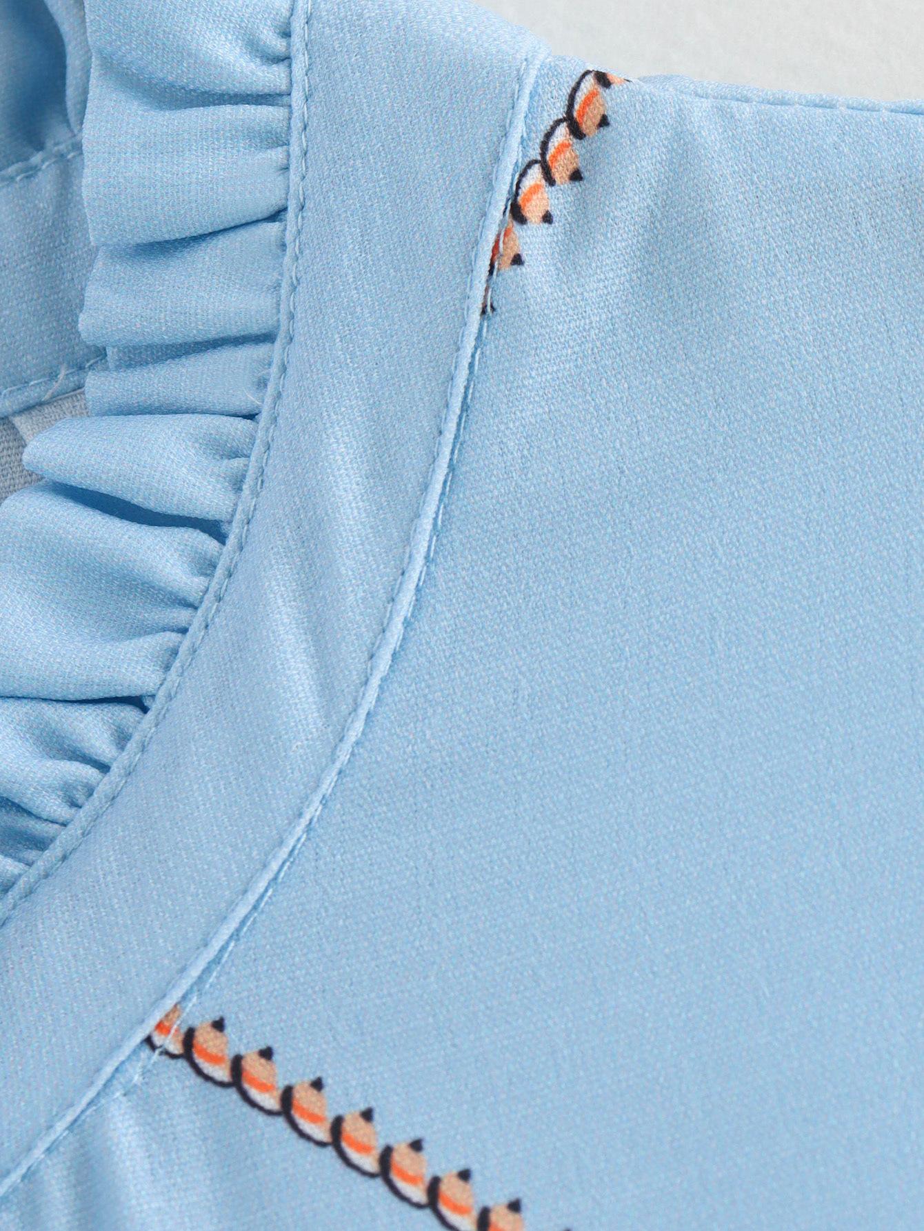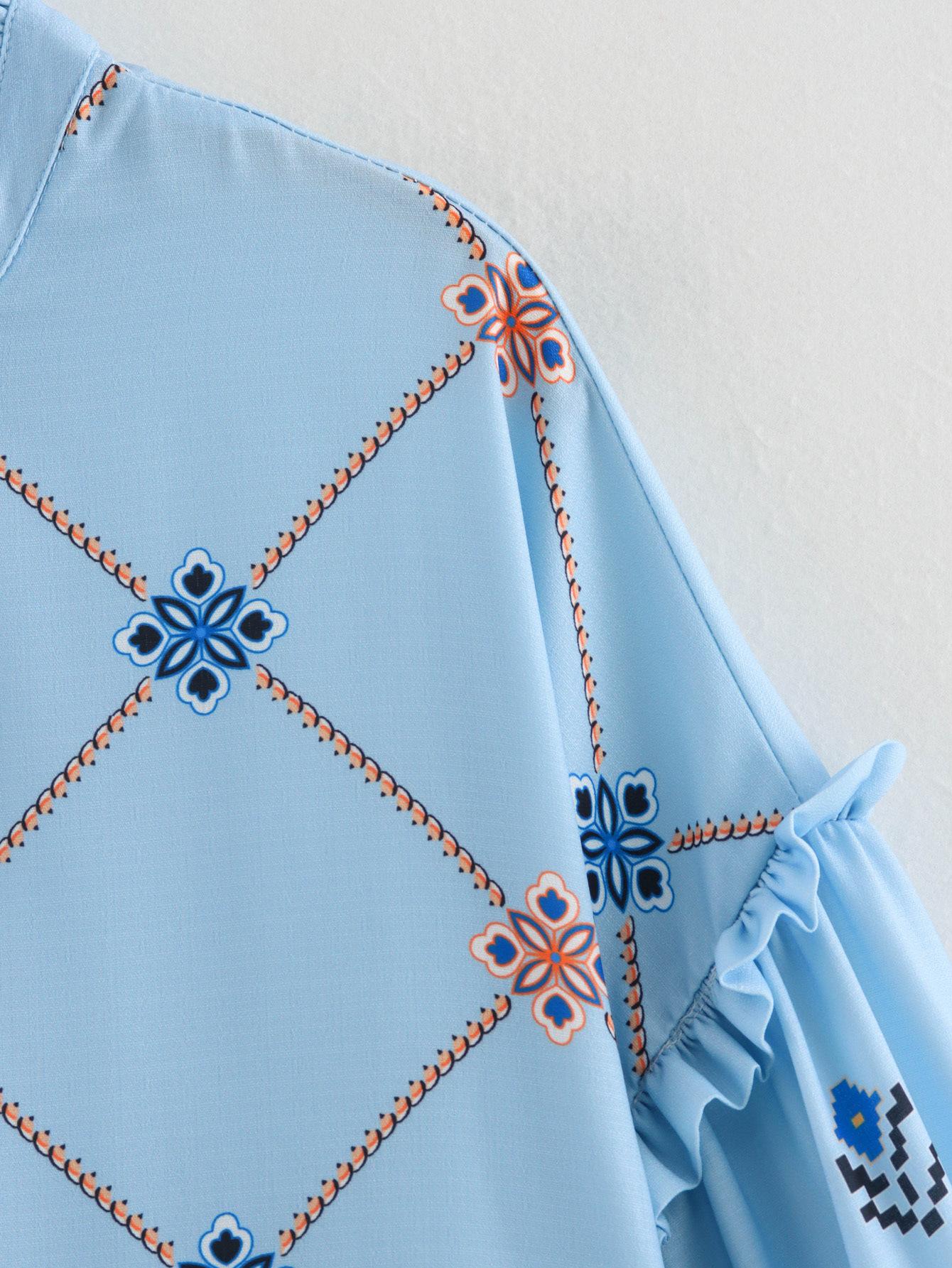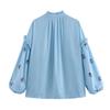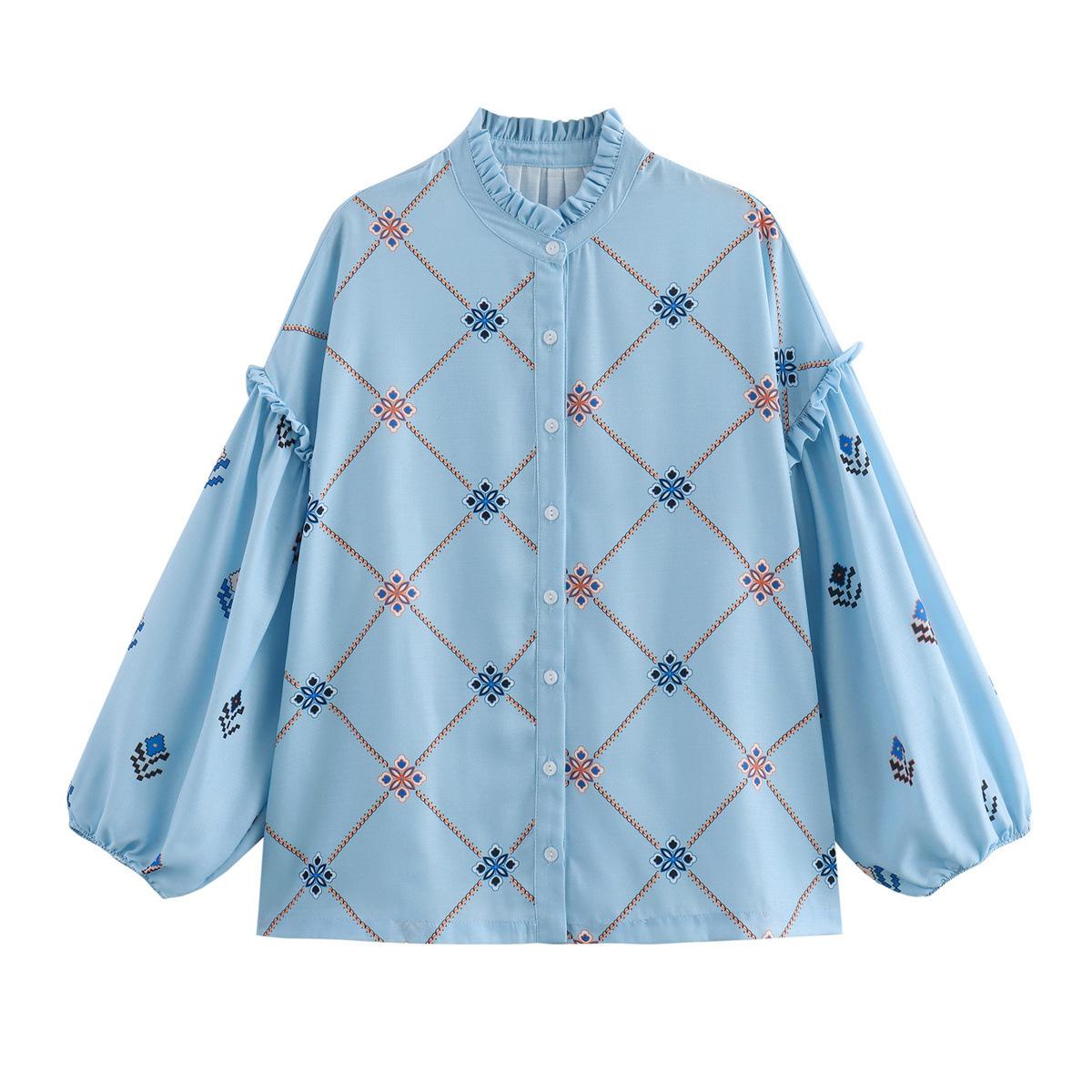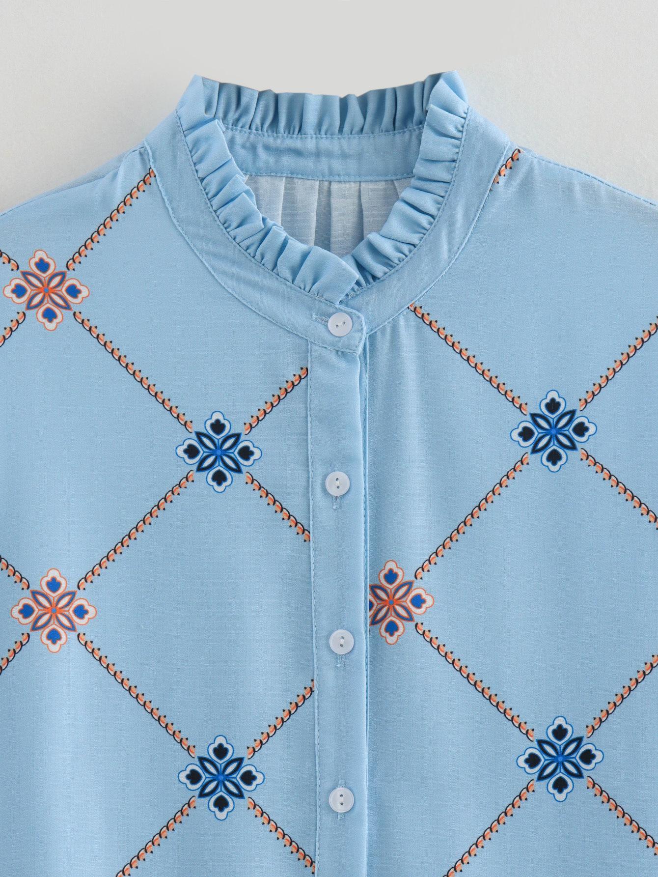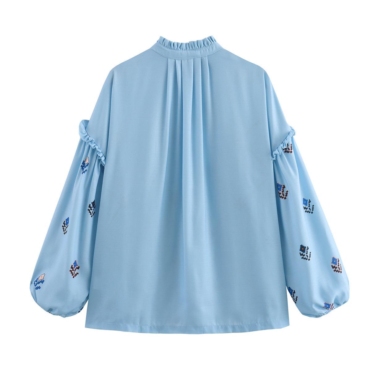 Camisa de manga larga con cuello con volantes para mujer europea y americana de comercio exterior transfronterizo de Amazon, verano 2024