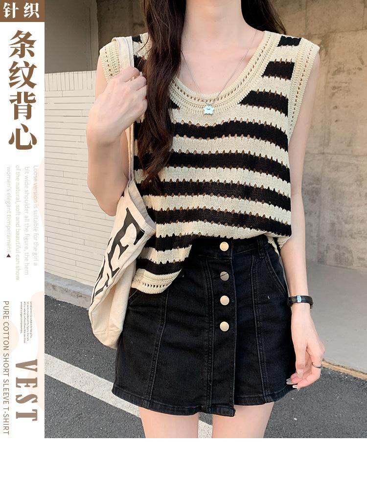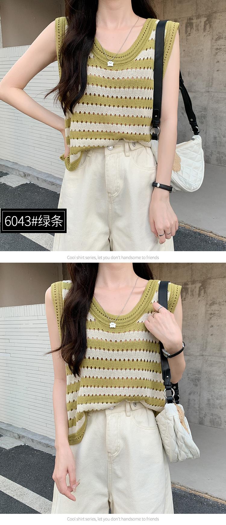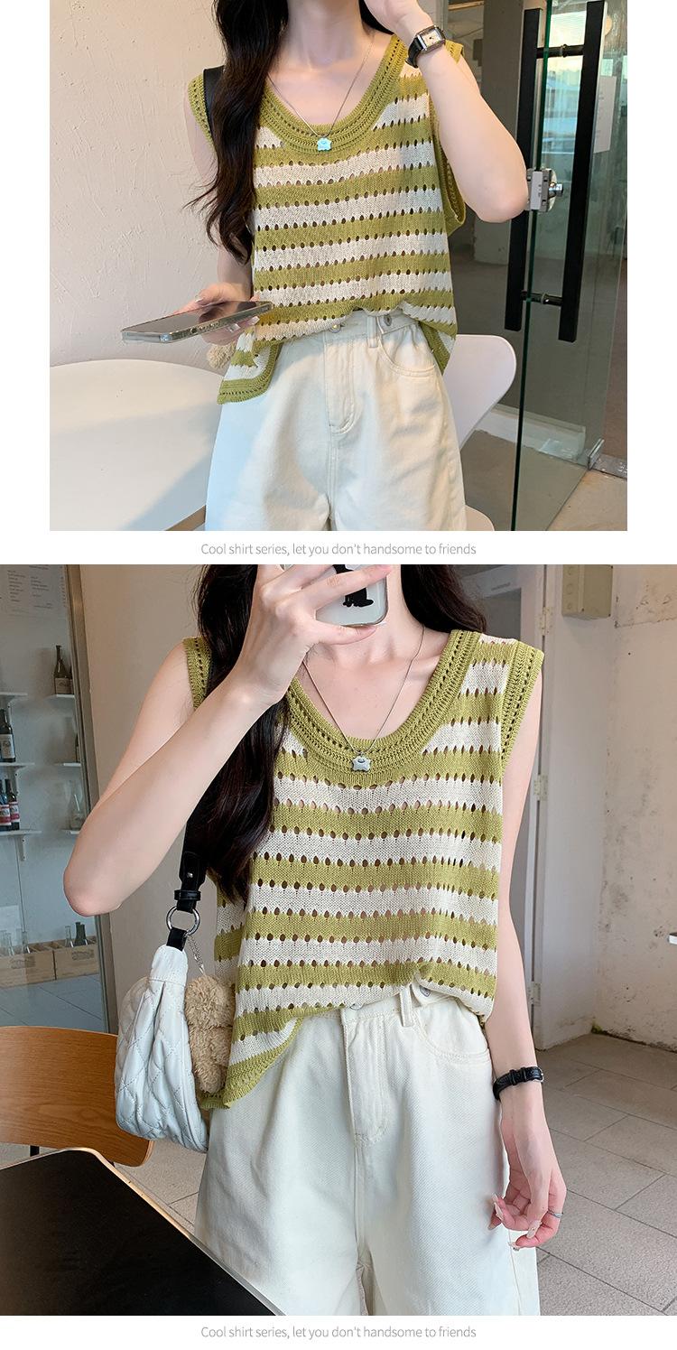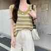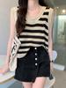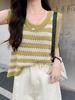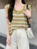 Camisola de punto de seda de hielo para mujer, ropa interior y exterior de verano, suelta, estilo coreano, a rayas, combina con todo, sin mangas, camiseta superior