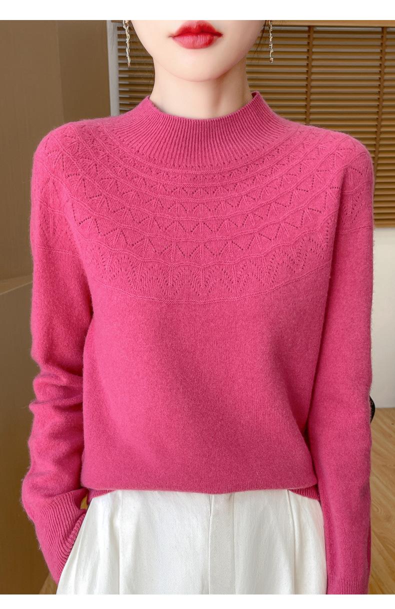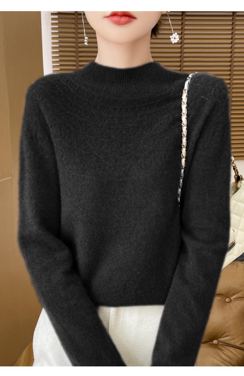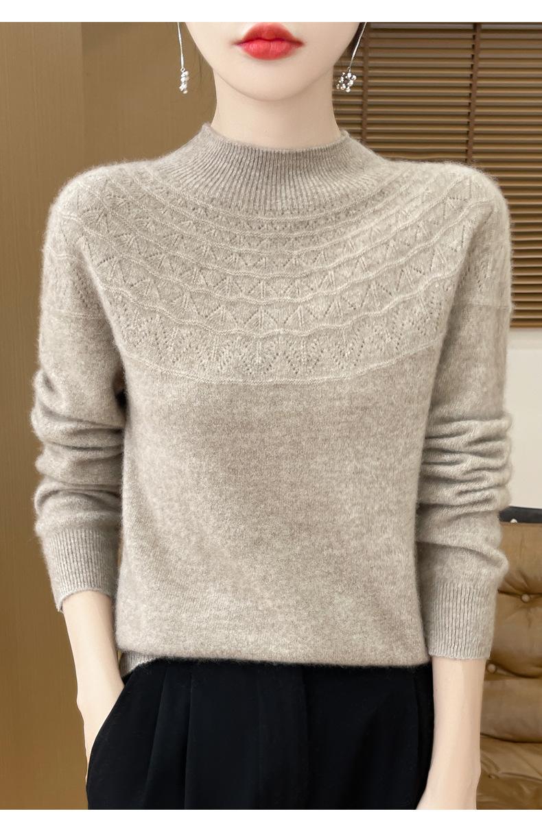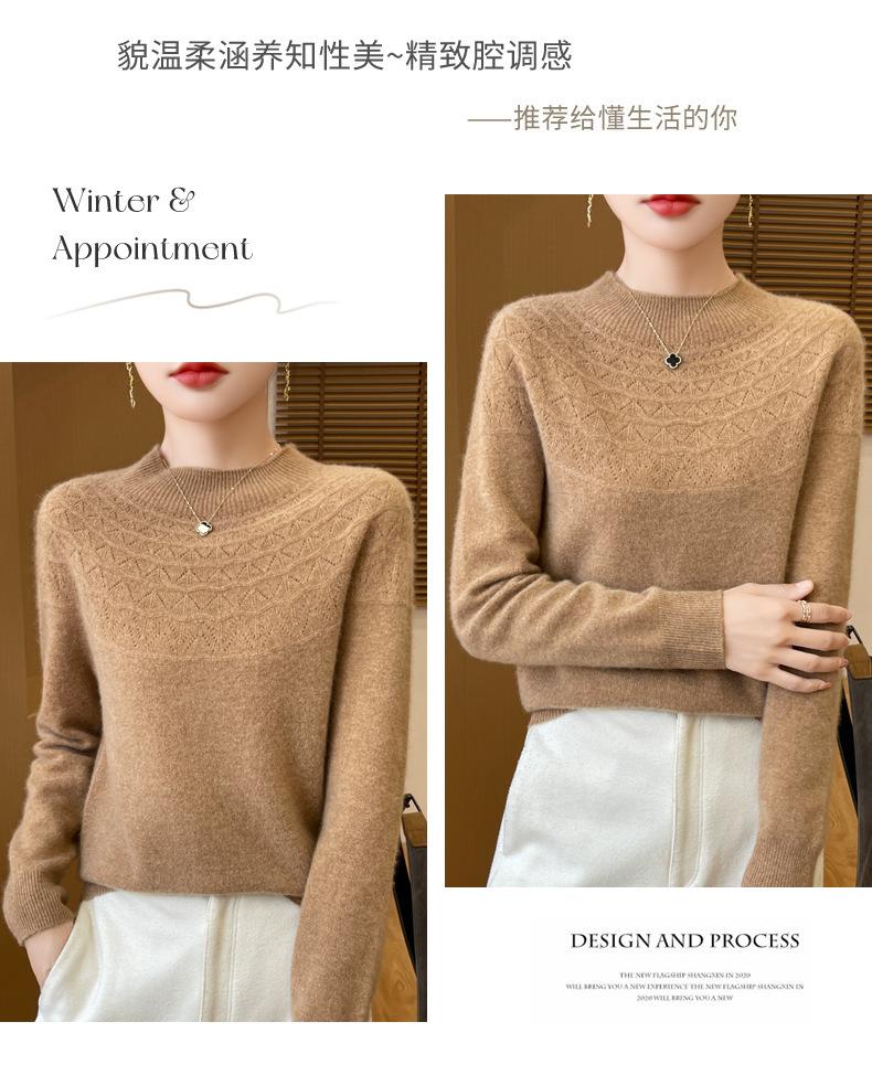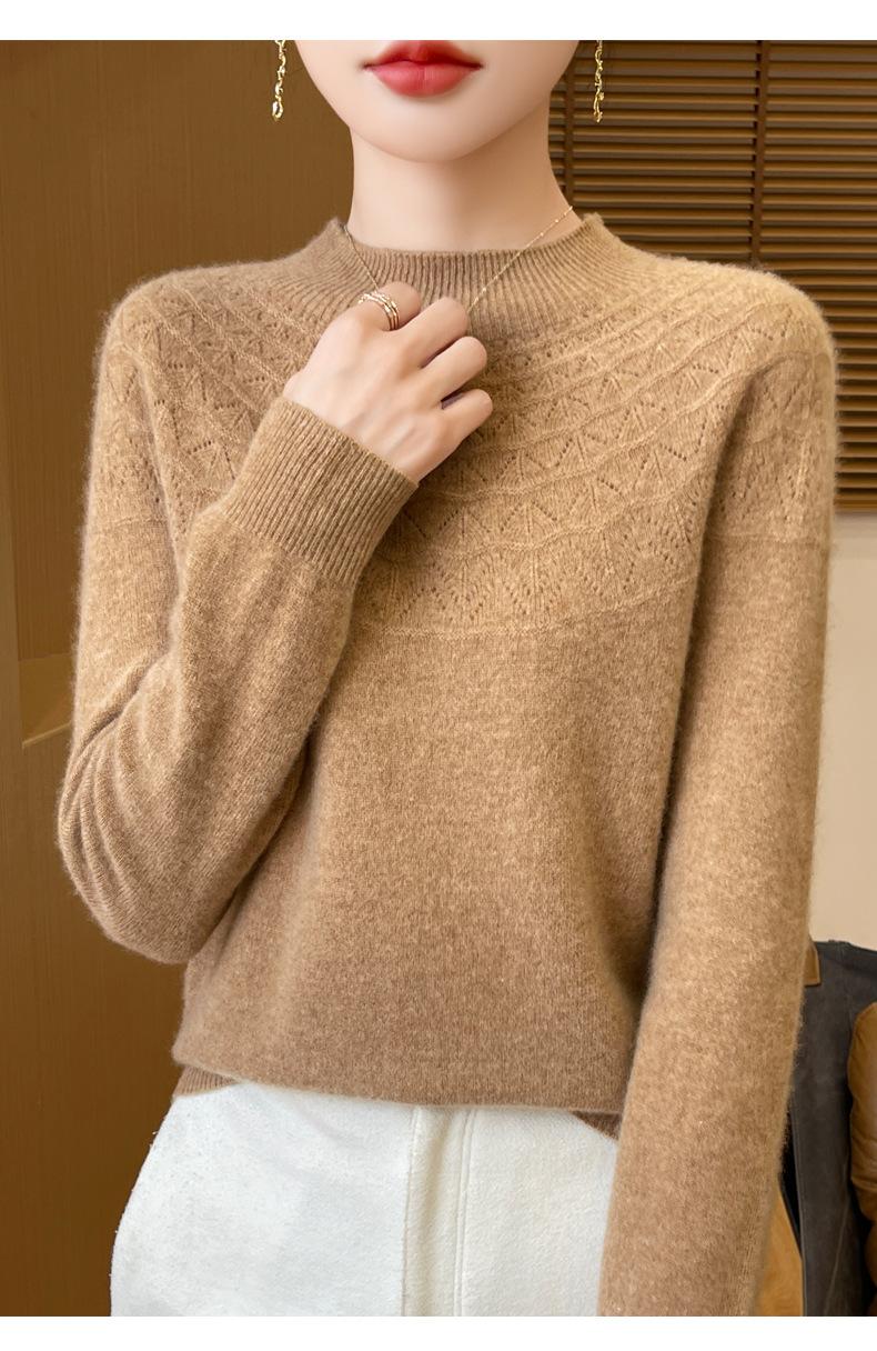 Suéter de punto de primera línea Gouhua para mujer, venta al por mayor de comercio exterior, otoño, nuevo, camisa básica de cuello medio alto para mujer, corte entallado para mujer, combina con todo