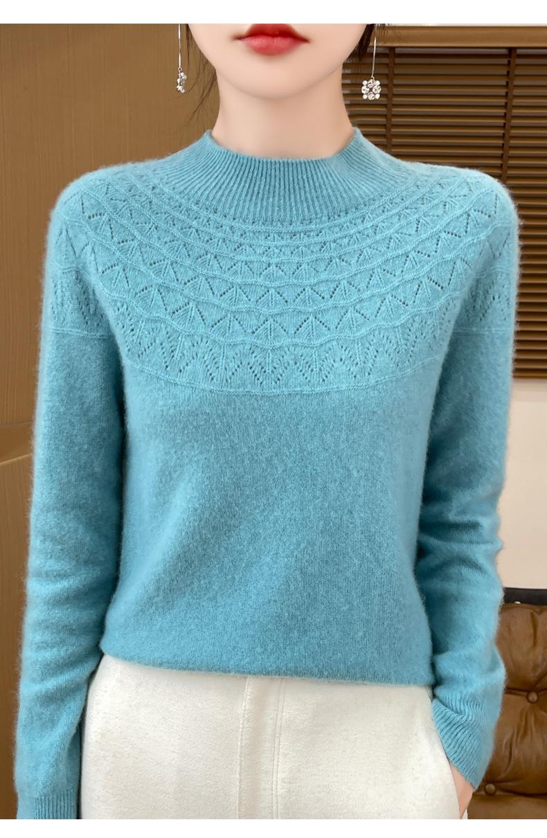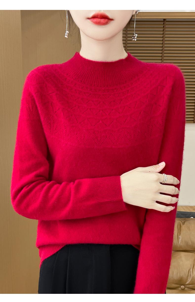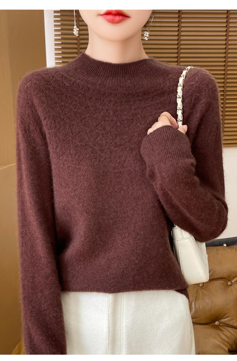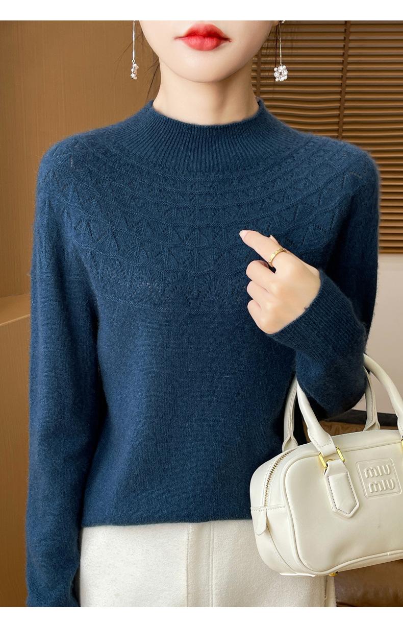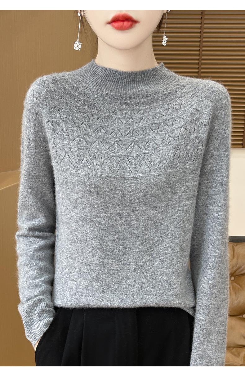 Suéter de punto de primera línea Gouhua para mujer, venta al por mayor de comercio exterior, otoño, nuevo, camisa básica de cuello medio alto para mujer, corte entallado para mujer, combina con todo