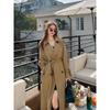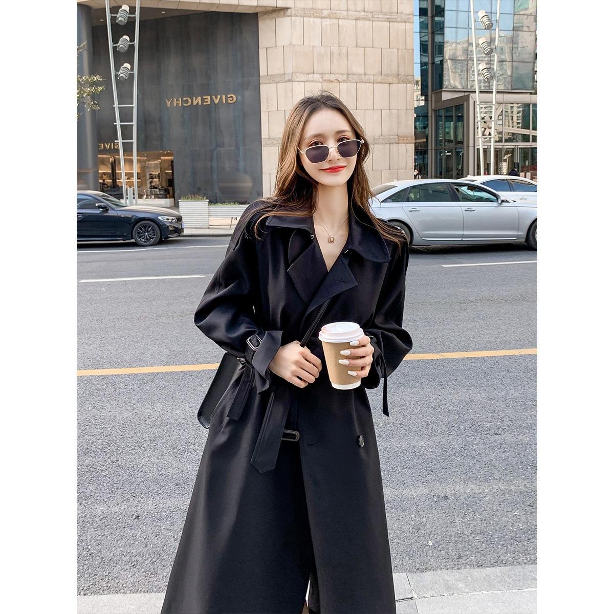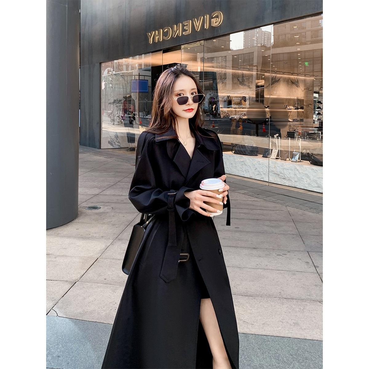 Comercio Exterior 2024 talla grande Abrigo Negro de Mujer Abrigo Ropa de Otoño para Mujer Estilo Británico Largo Medio Delgado Elegante