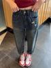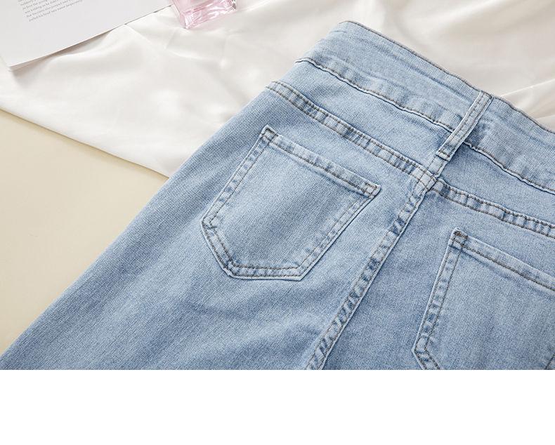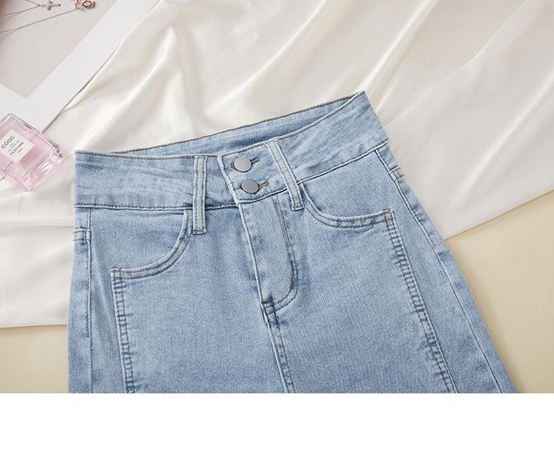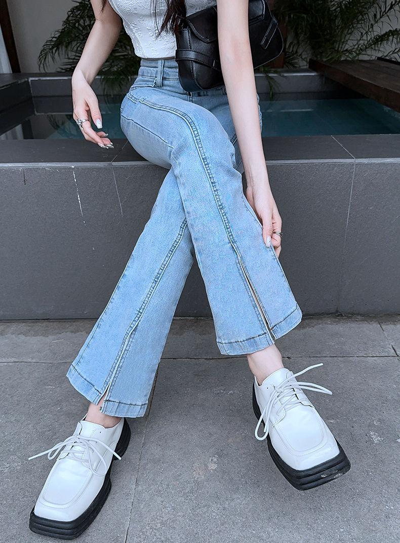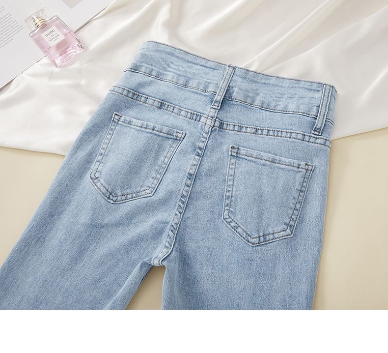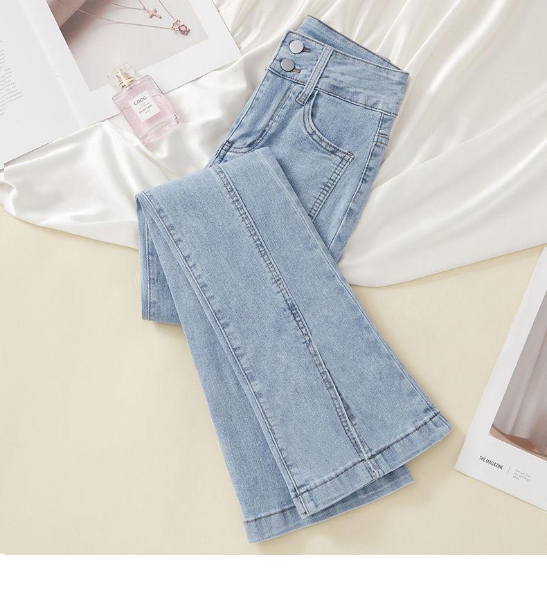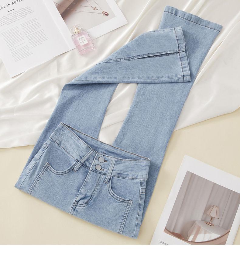 Pantalones acampanados de mezclilla azul claro para mujer primavera y otoño 2024 nuevos pantalones elásticos pequeños adelgazantes de cintura alta de primavera y otoño