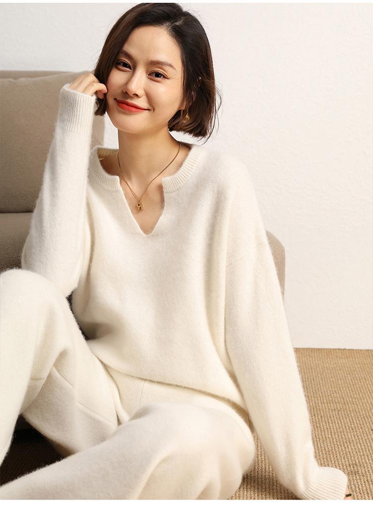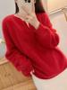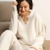 Suéter de Punto de Cachemira Casual de Moda de Color Puro para Mujer Otoño e Invierno Nuevo Estilo Holgado Perezoso Camisa Base