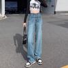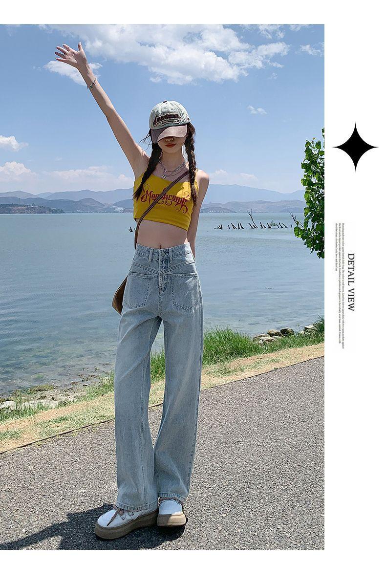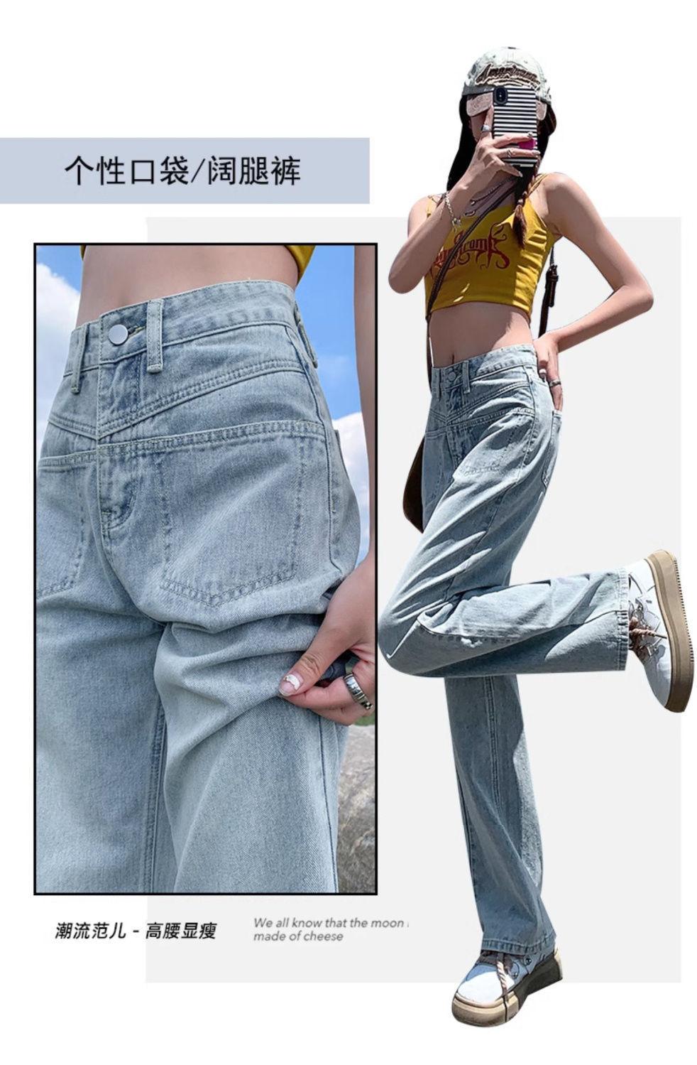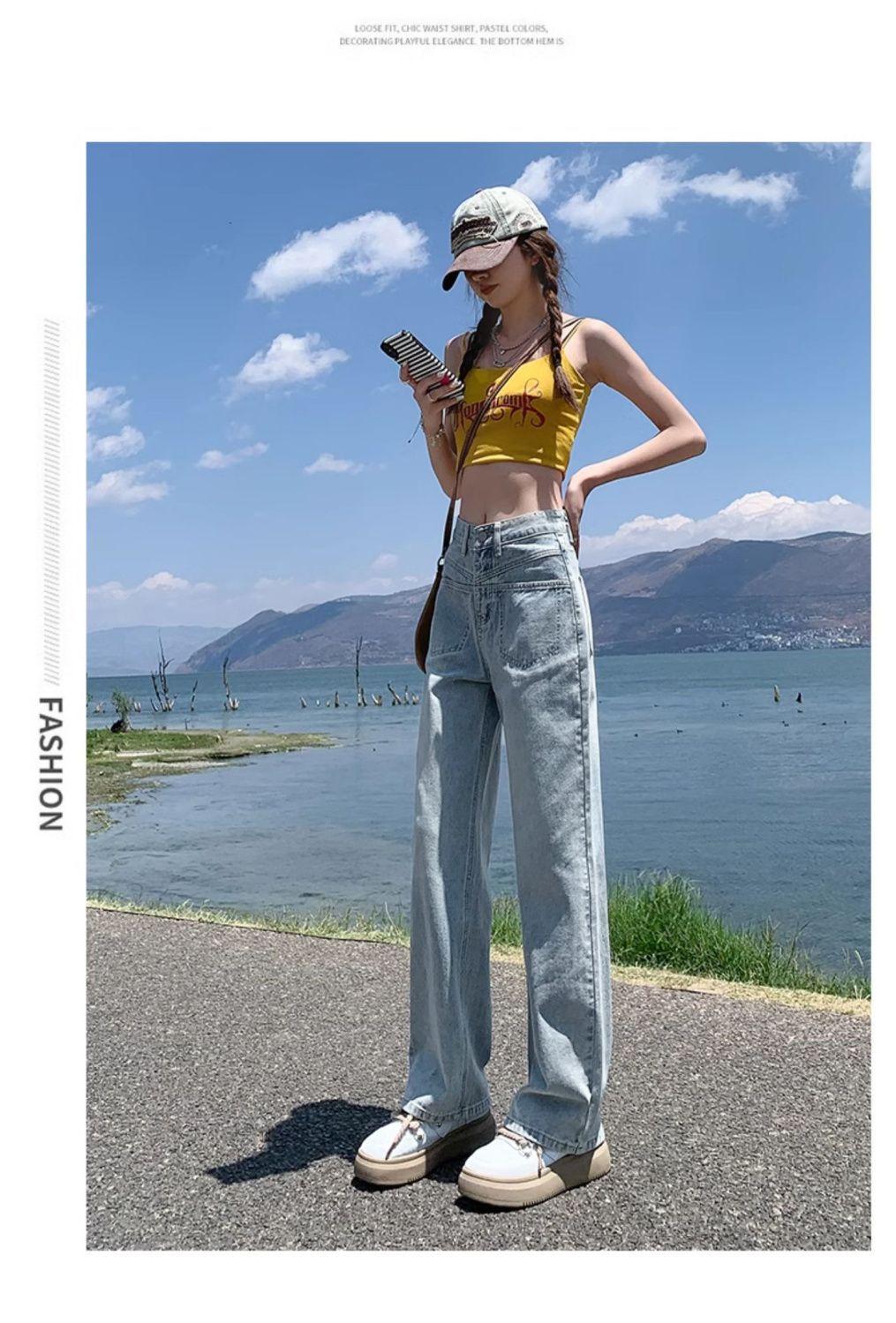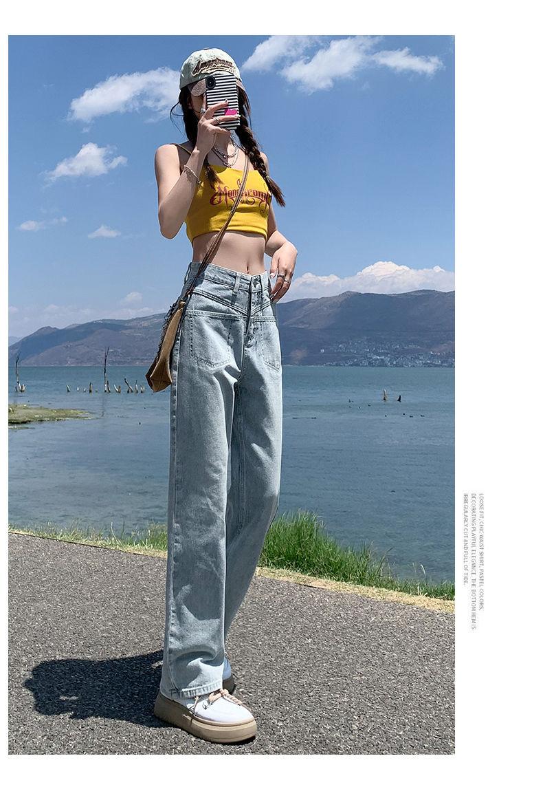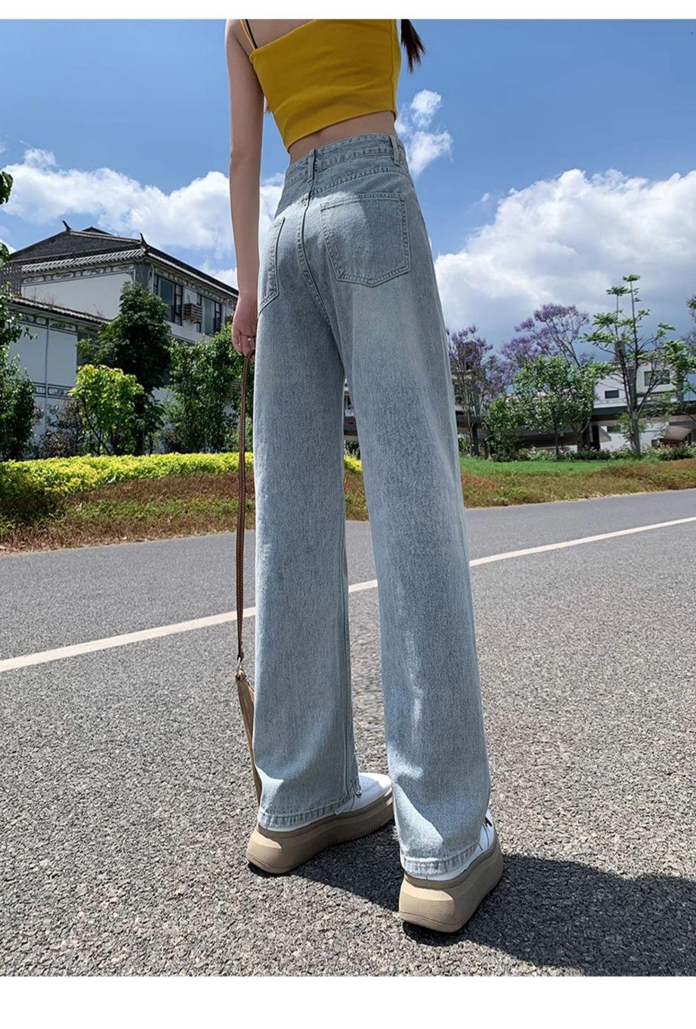 Pantalones vaqueros de pierna ancha azul claro estilo americano para mujer, verano 2024, nuevos pantalones rectos holgados de cintura alta y adelgazantes