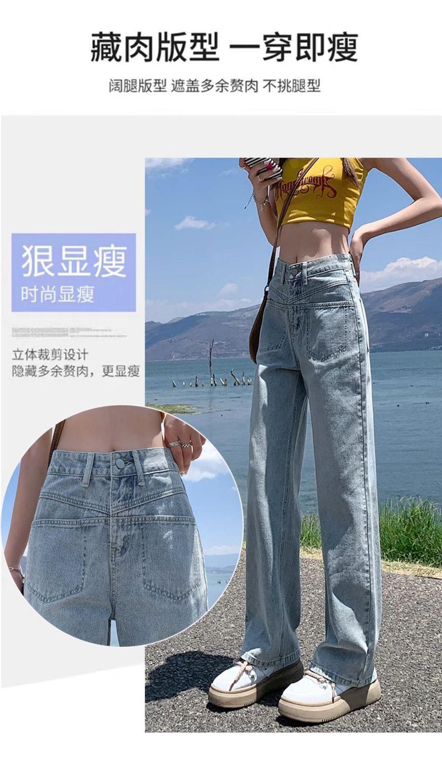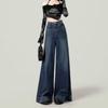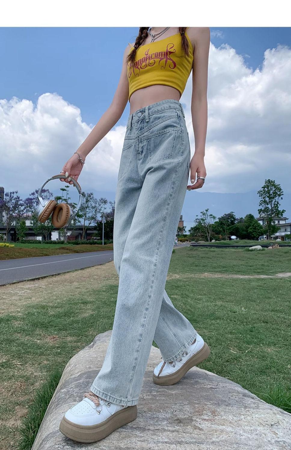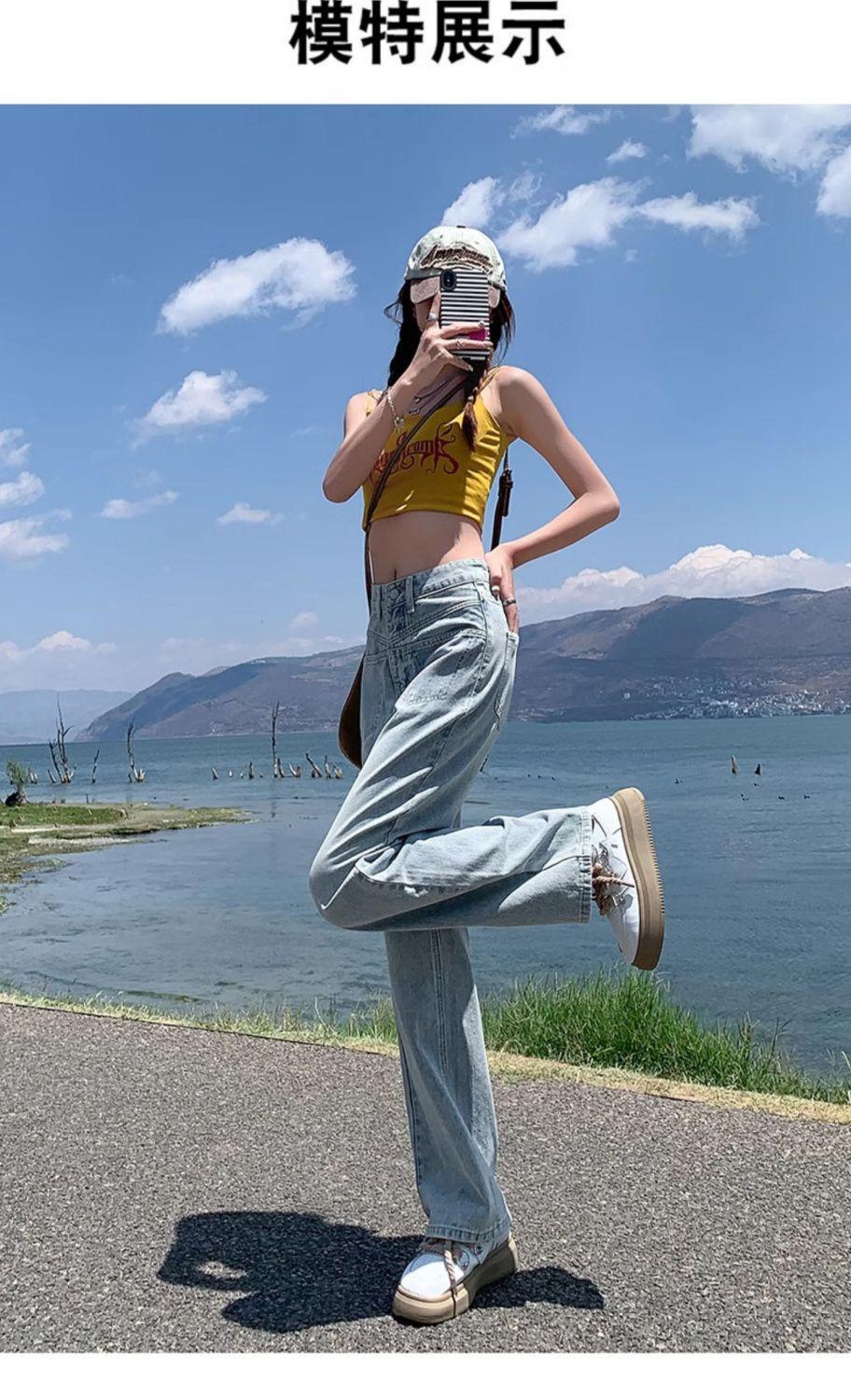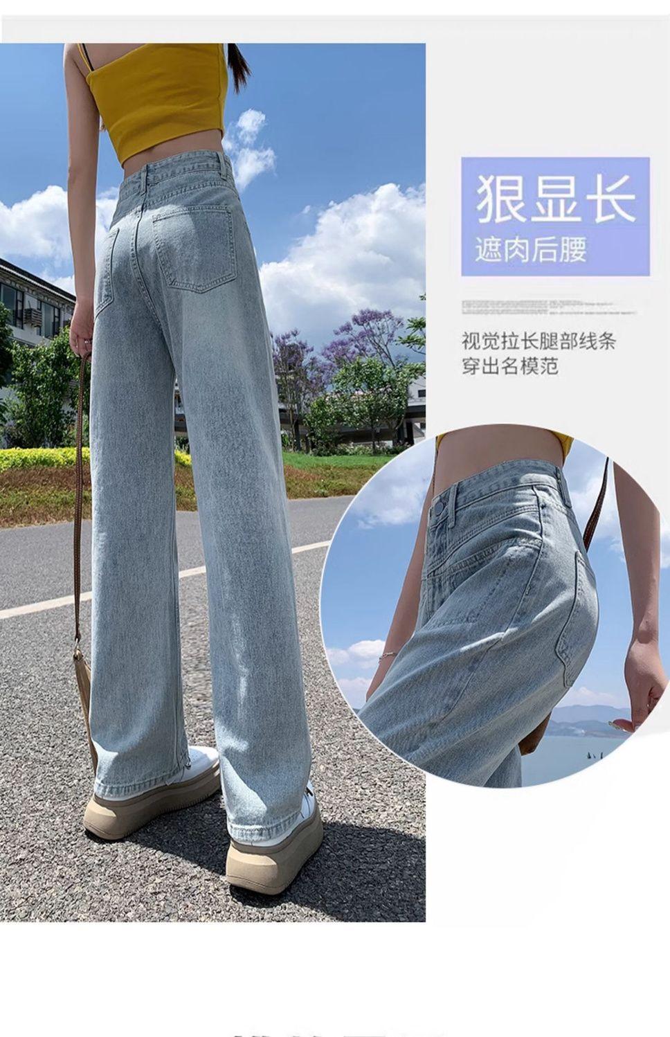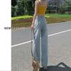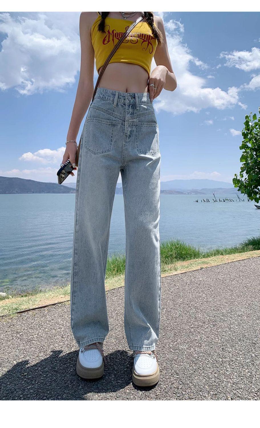 Pantalones vaqueros de pierna ancha azul claro estilo americano para mujer, verano 2024, nuevos pantalones rectos holgados de cintura alta y adelgazantes