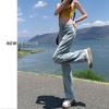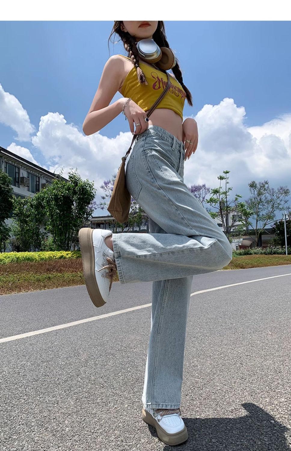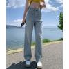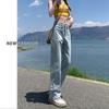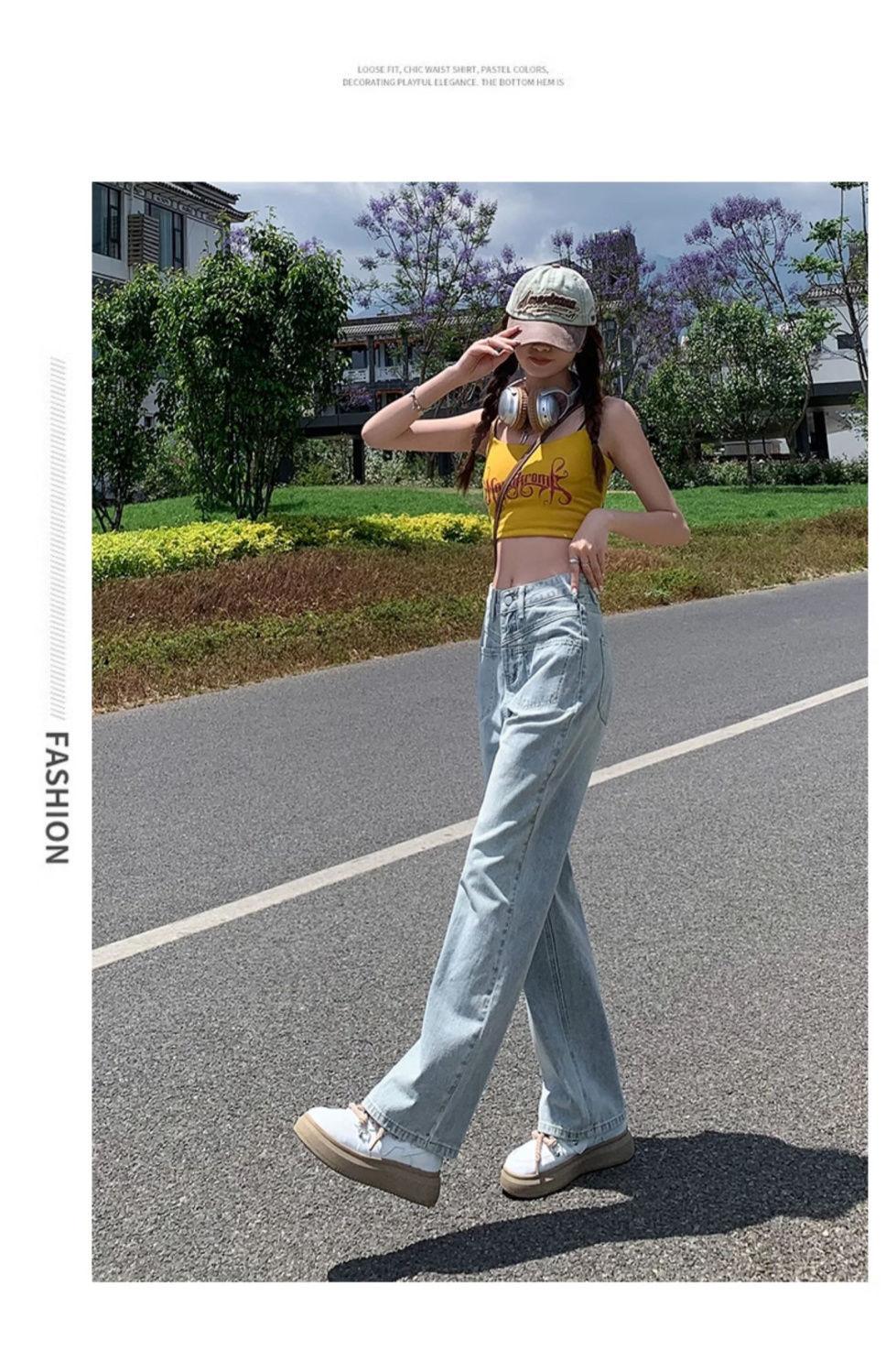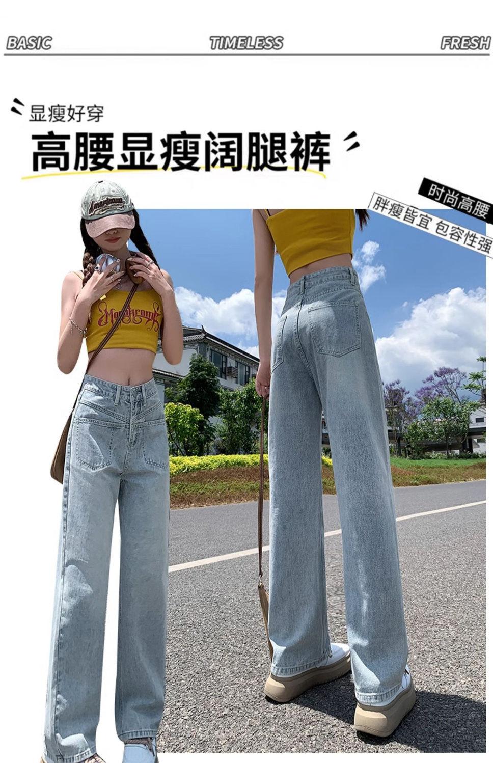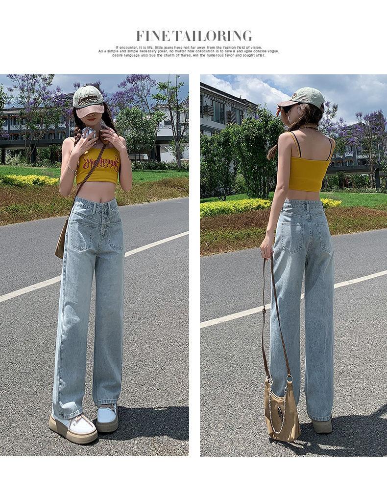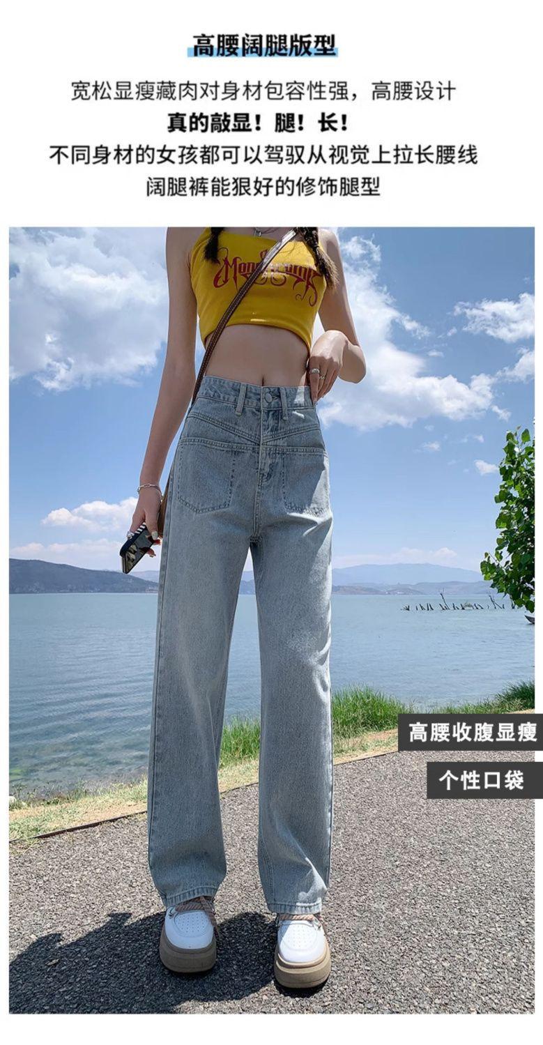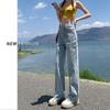 Pantalones vaqueros de pierna ancha azul claro estilo americano para mujer, verano 2024, nuevos pantalones rectos holgados de cintura alta y adelgazantes