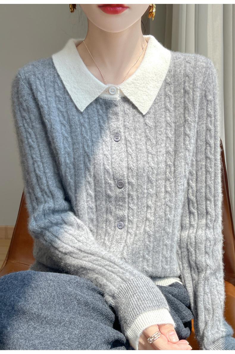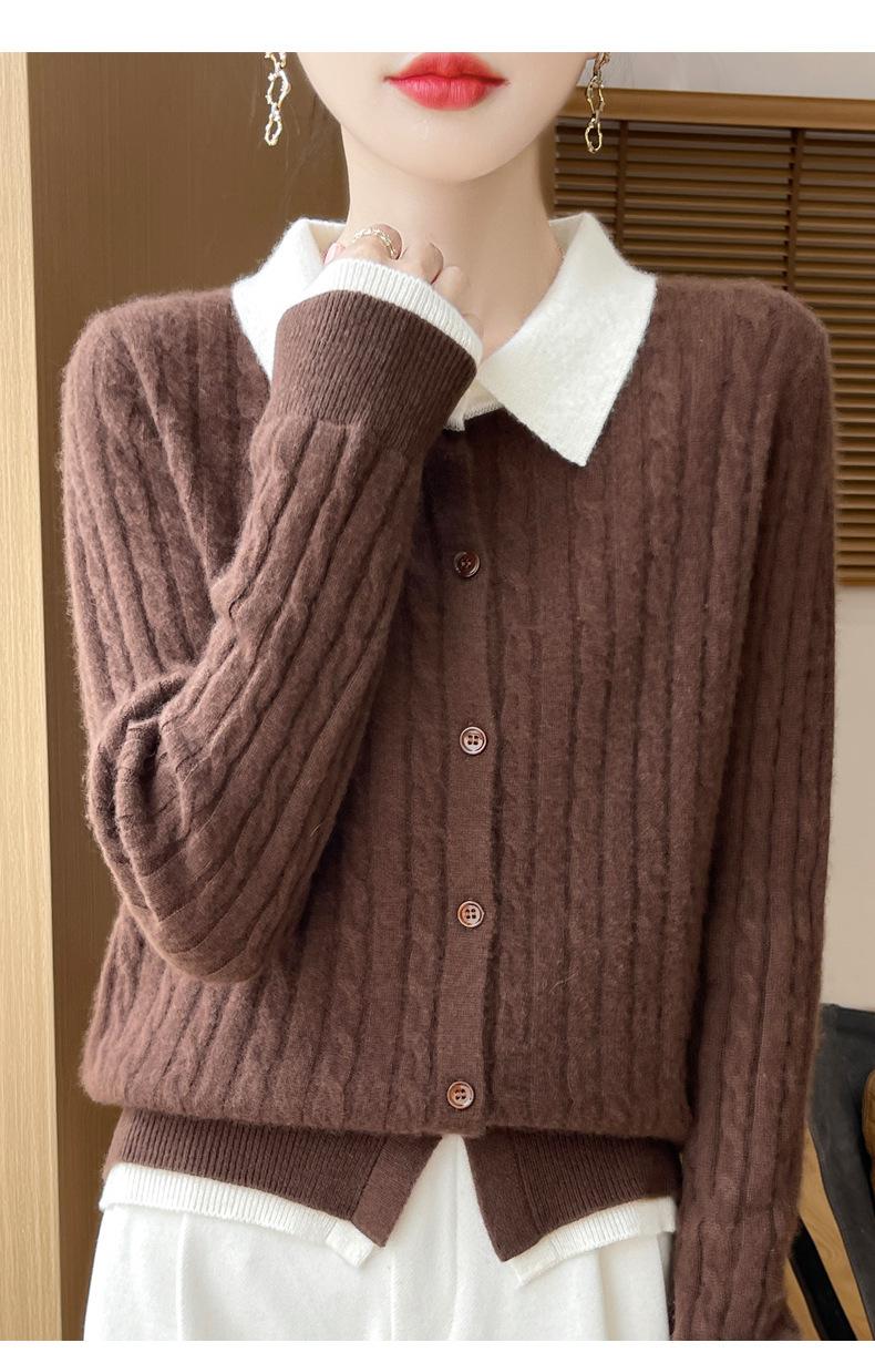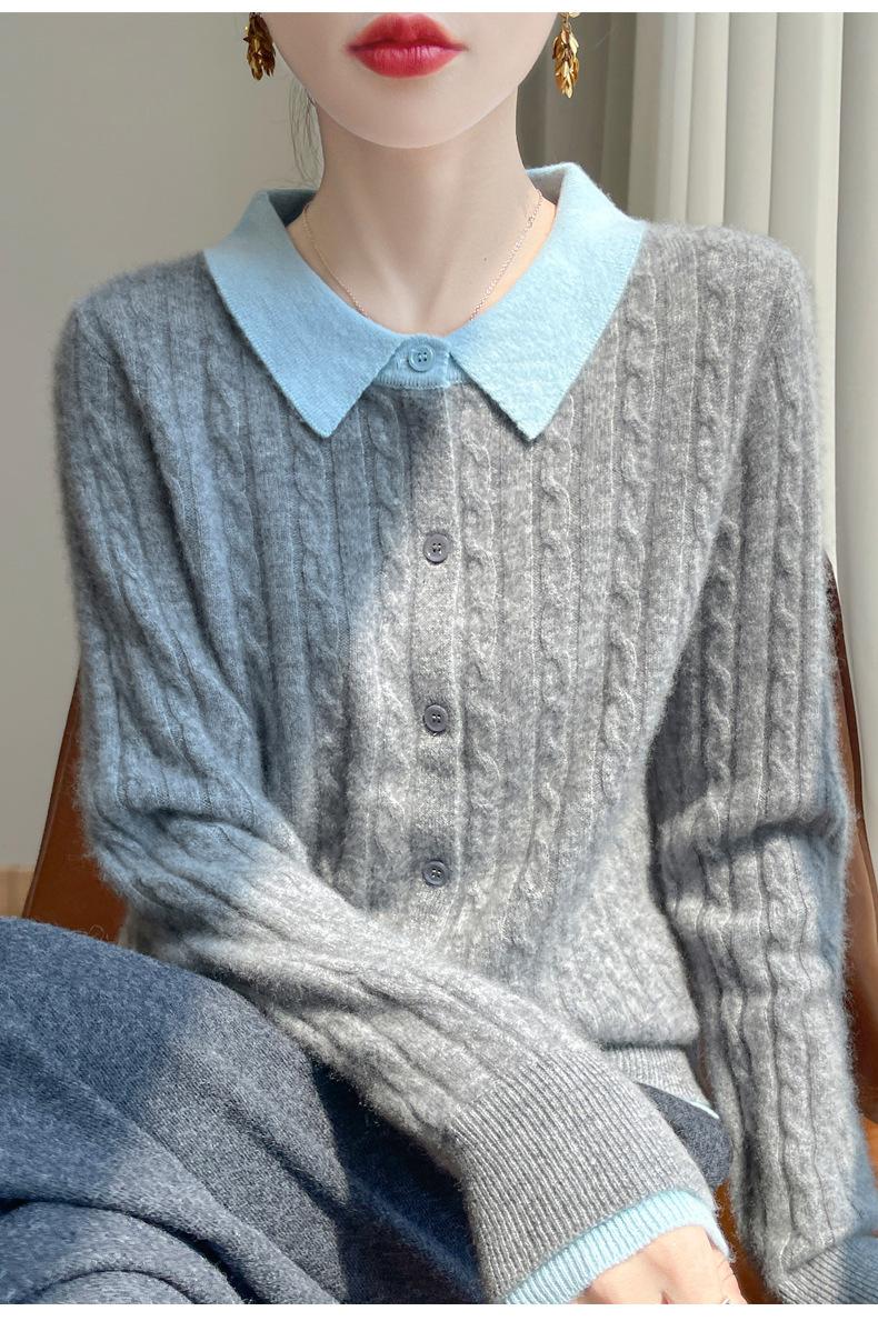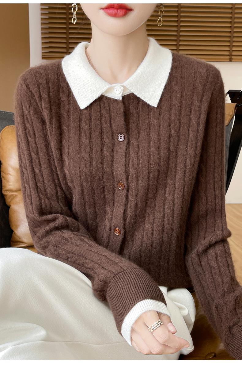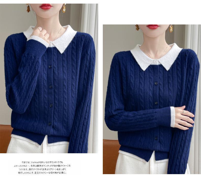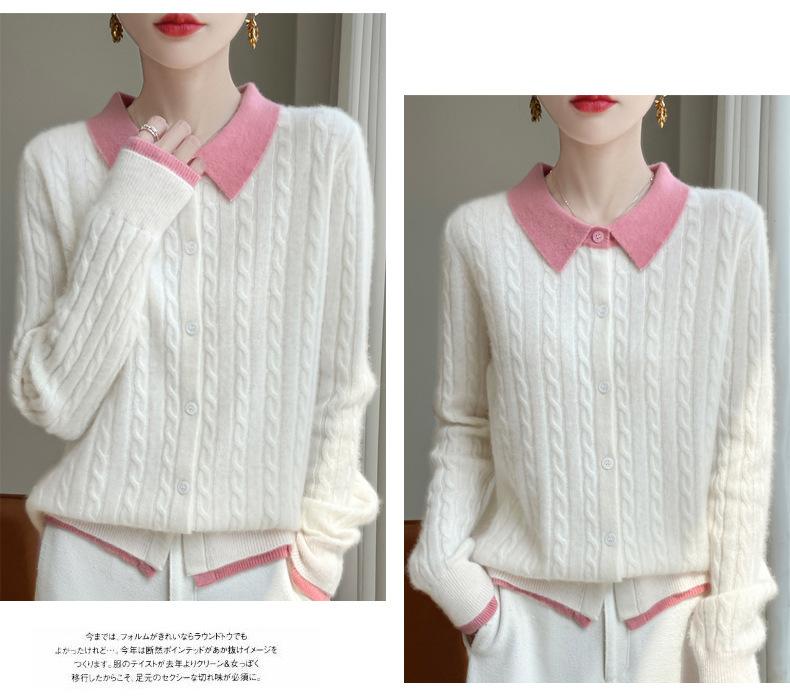 Cárdigan de Punto de Contraste de Color con Cuello POLO de Giro Retro Francés para Mujer, Abrigo Corto, Suéter, Top Apilado de Otoño e Invierno