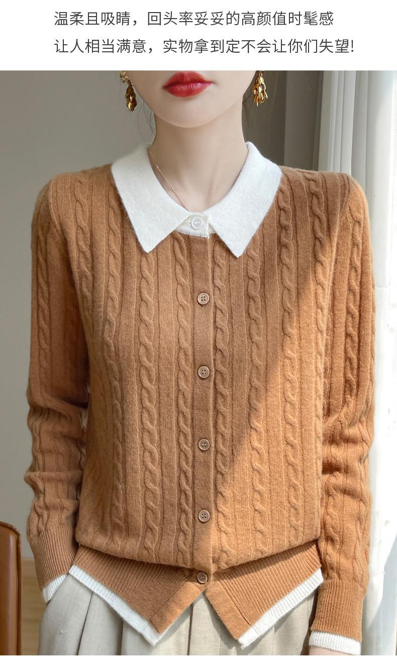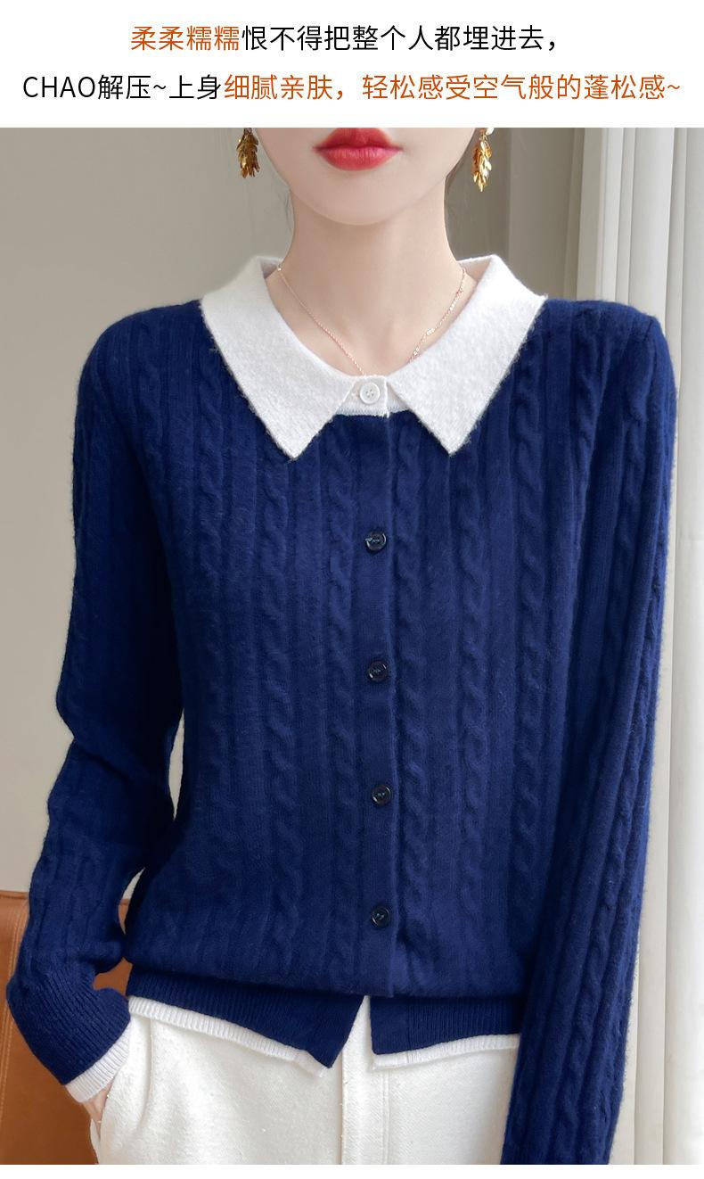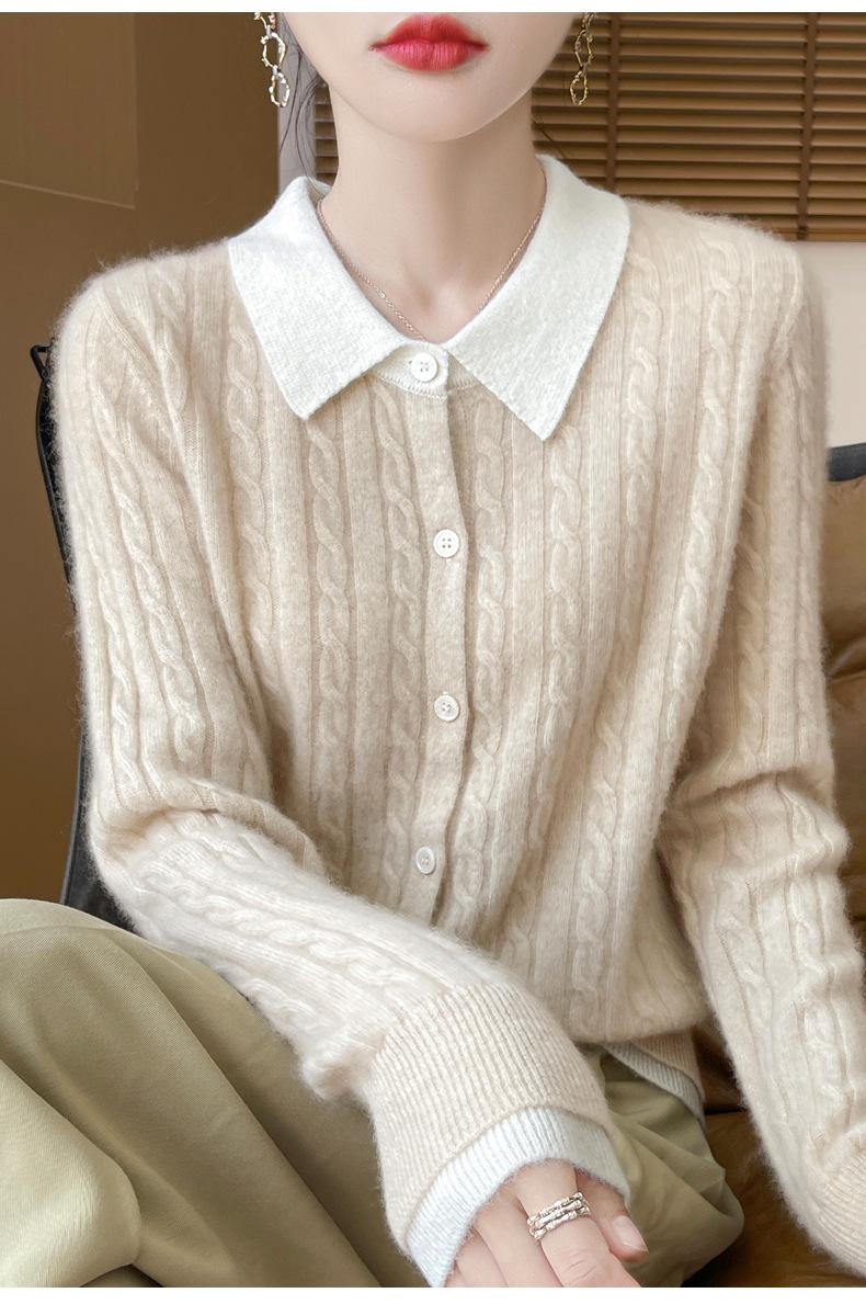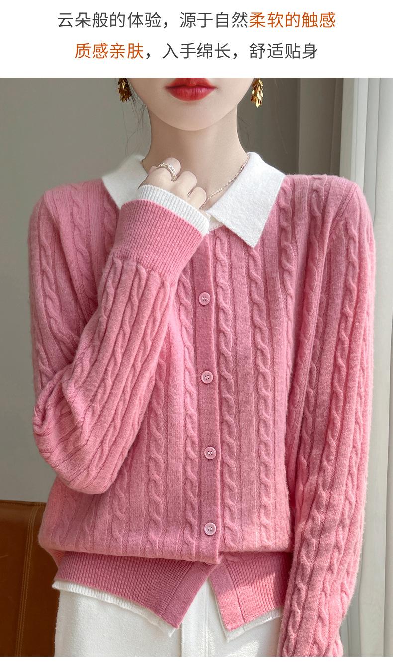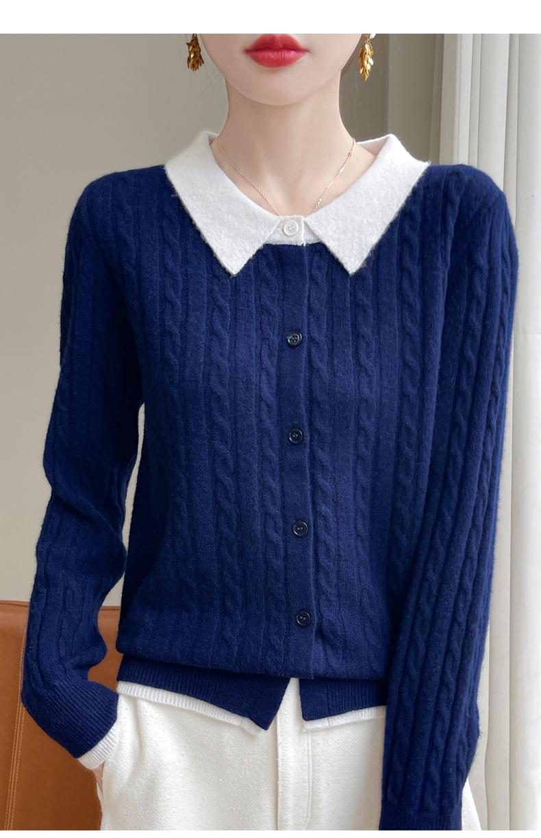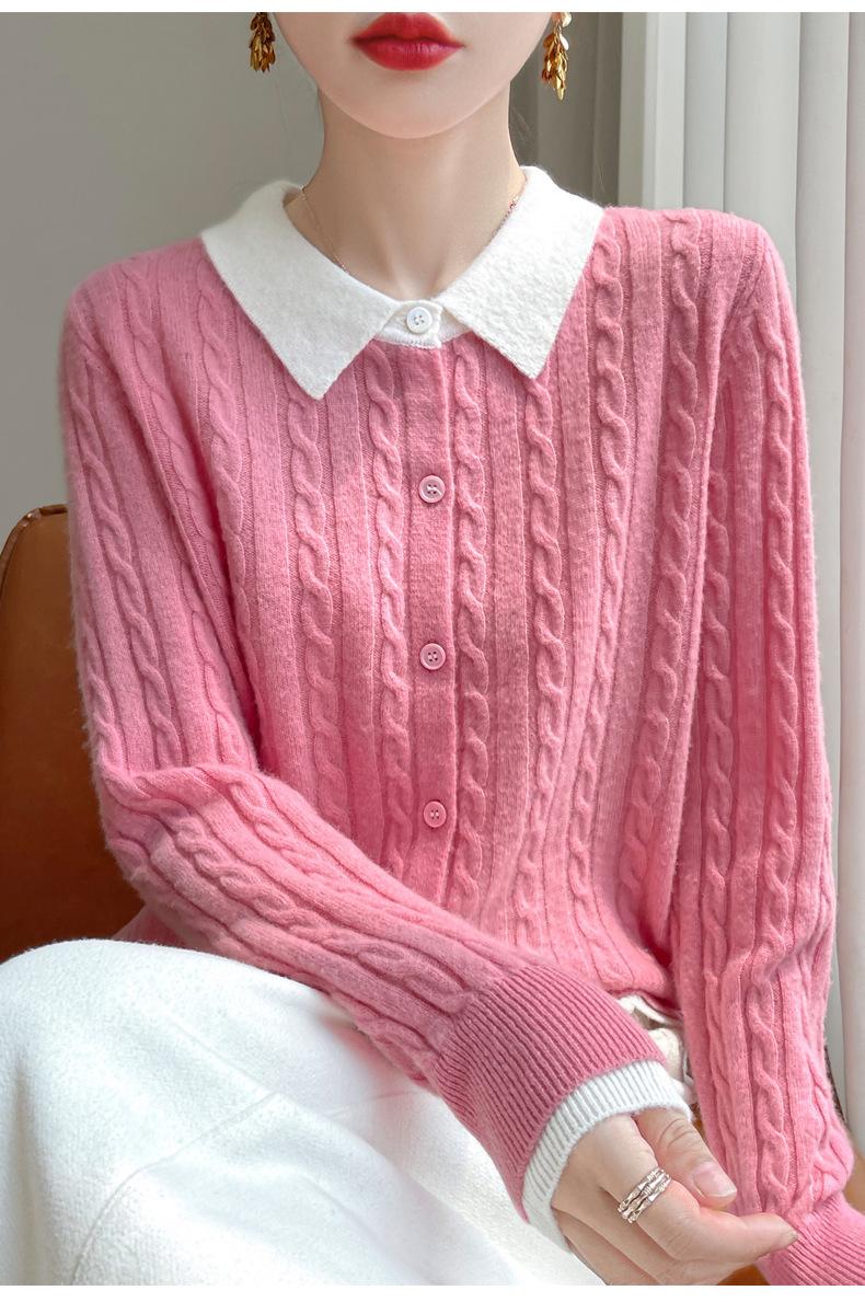 Cárdigan de Punto de Contraste de Color con Cuello POLO de Giro Retro Francés para Mujer, Abrigo Corto, Suéter, Top Apilado de Otoño e Invierno