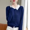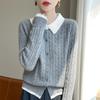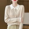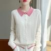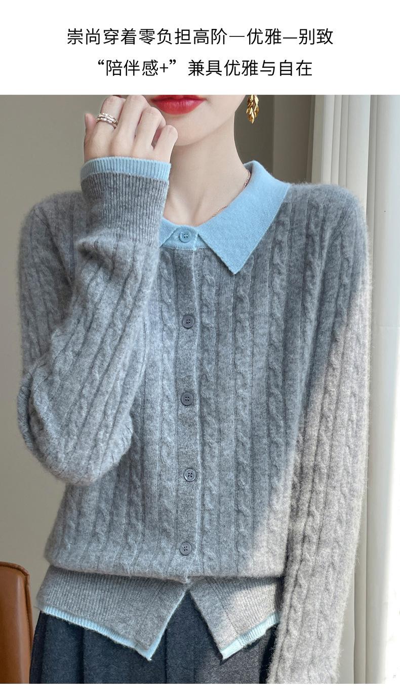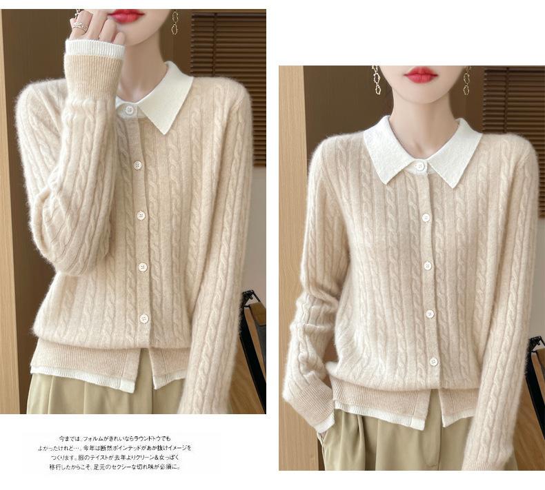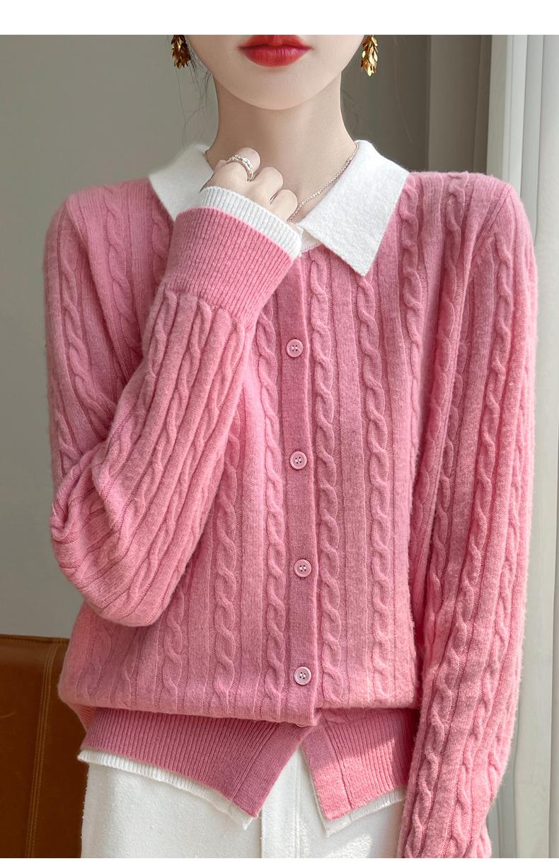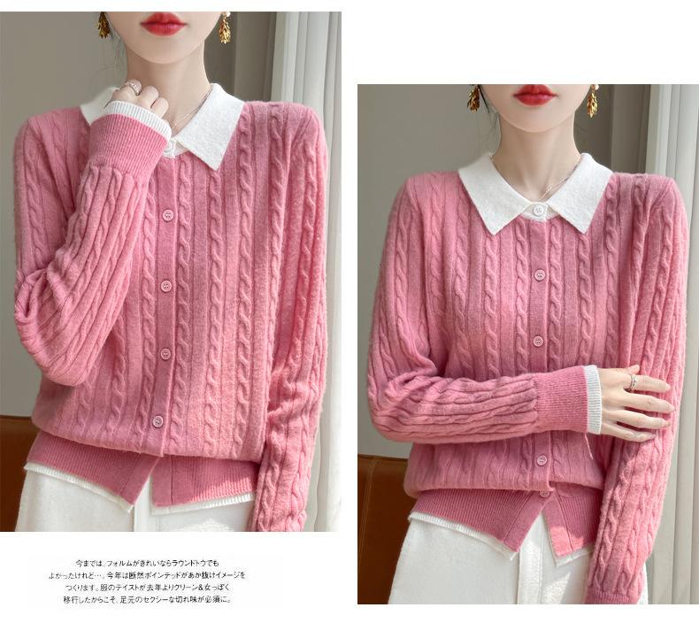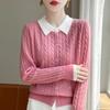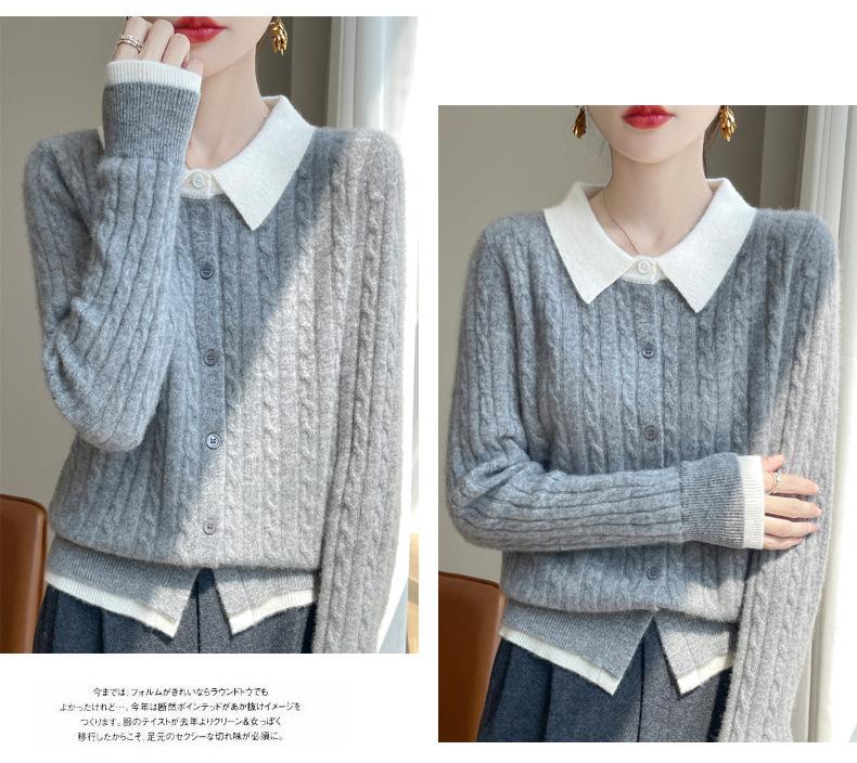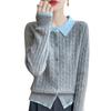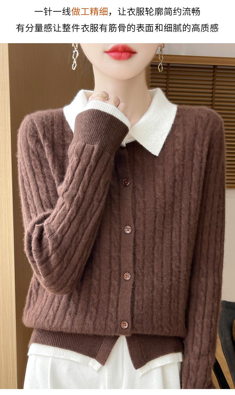 Cárdigan de Punto de Contraste de Color con Cuello POLO de Giro Retro Francés para Mujer, Abrigo Corto, Suéter, Top Apilado de Otoño e Invierno