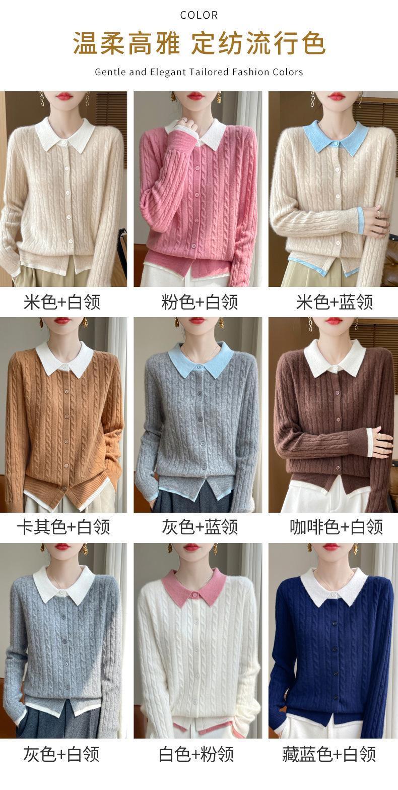 Beige + white collar, Pink + white collar, Beige + blue collar, Khaki + white collar, Gray + blue collar, Brow...