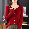 Cárdigan de lana nuevo de principios de otoño, abrigo de punto, suéter de mujer, prenda exterior de punto de lana única y corta.