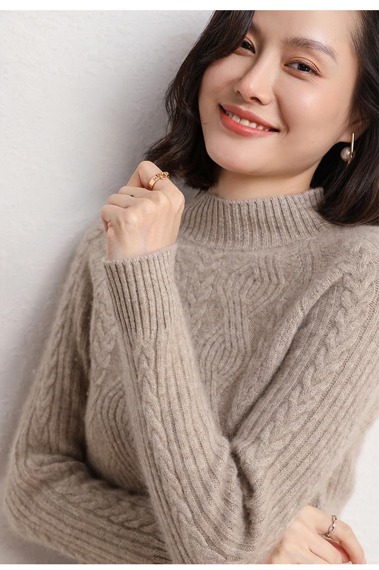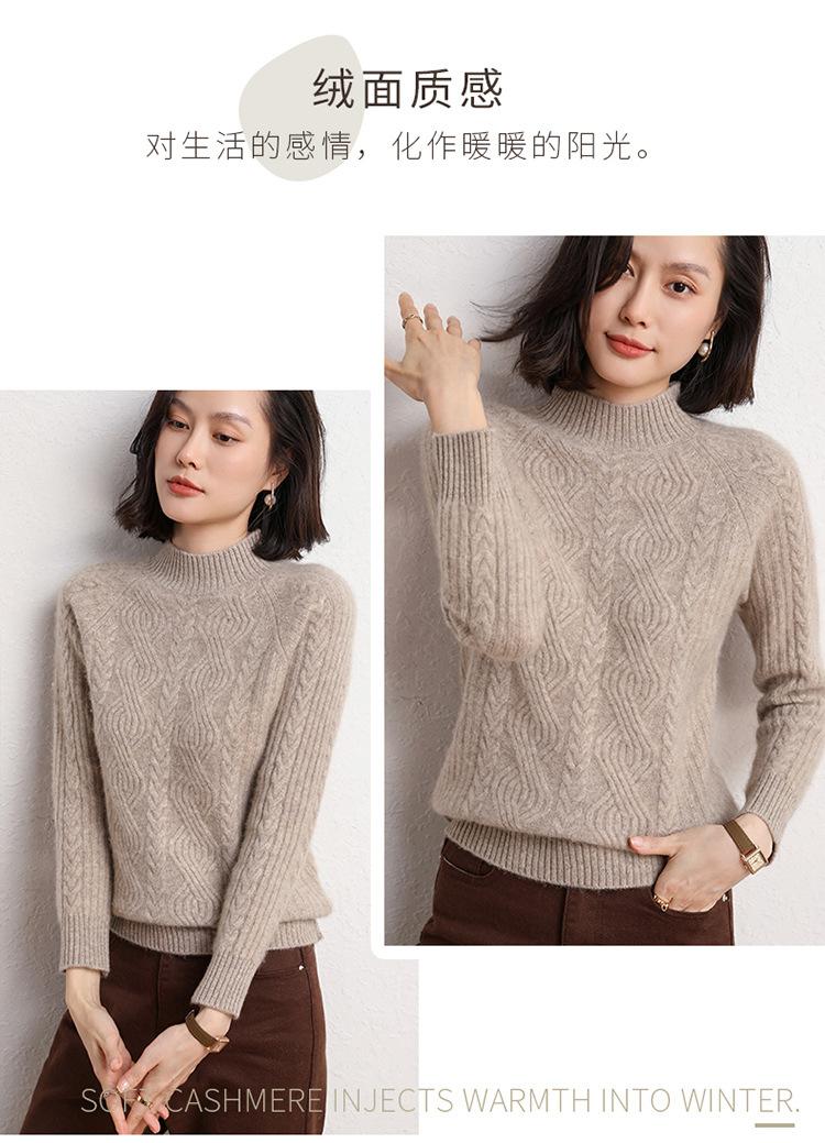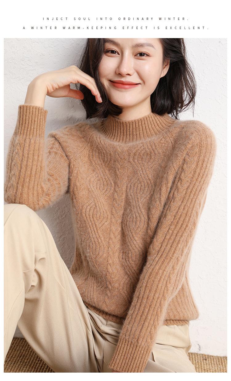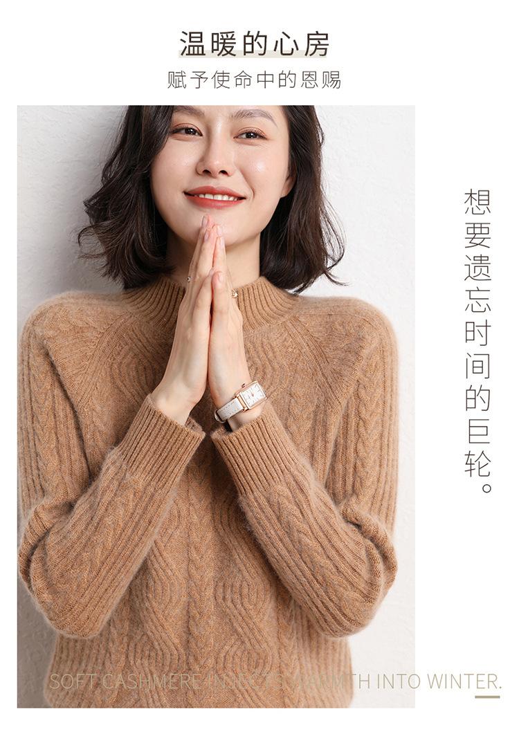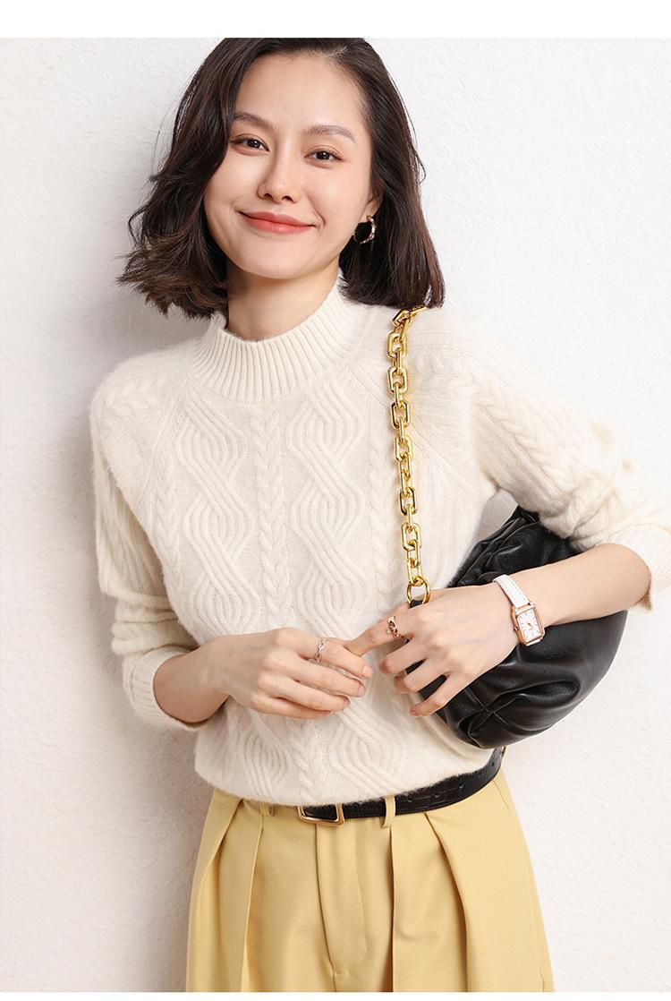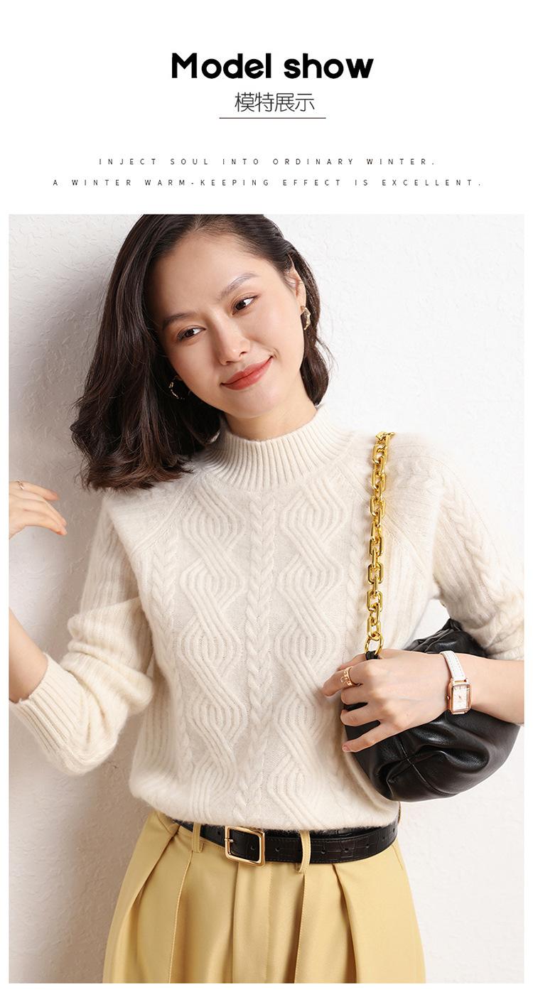 Suéter de Punto de Cachemira para Mujer de Otoño e Invierno 2023 de Cuello Medio Alto con Cordón de Color Sólido, Grueso, Base Adelgazante para Oficina
