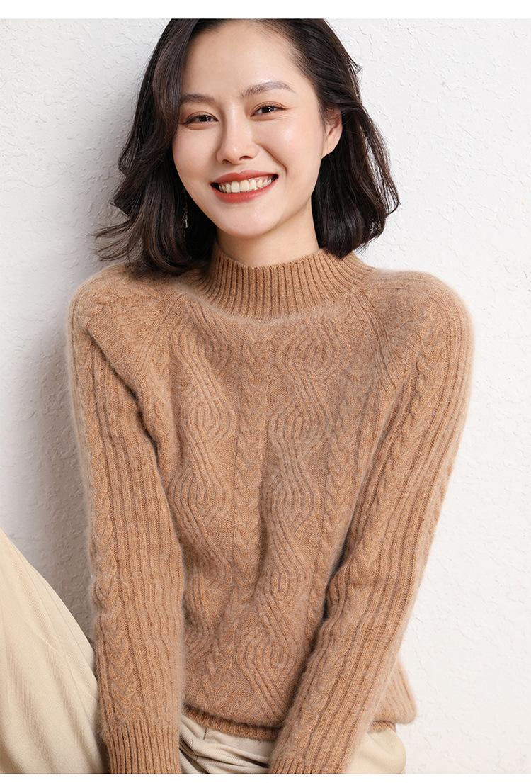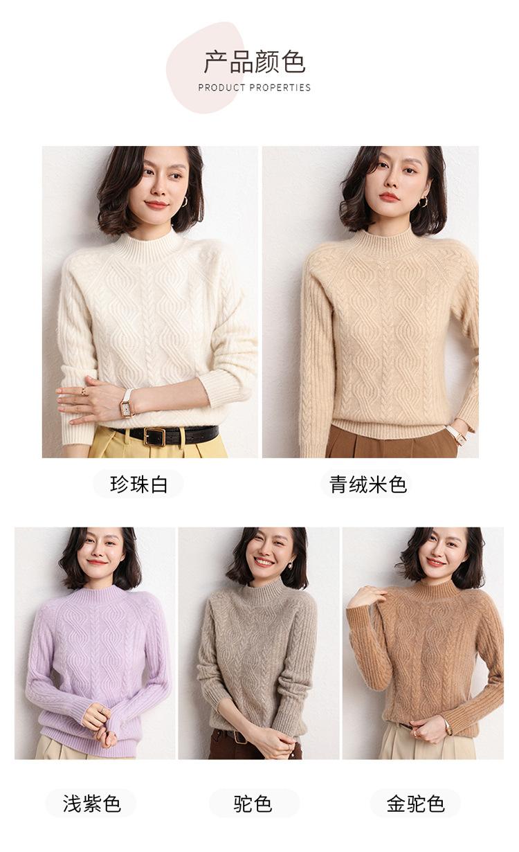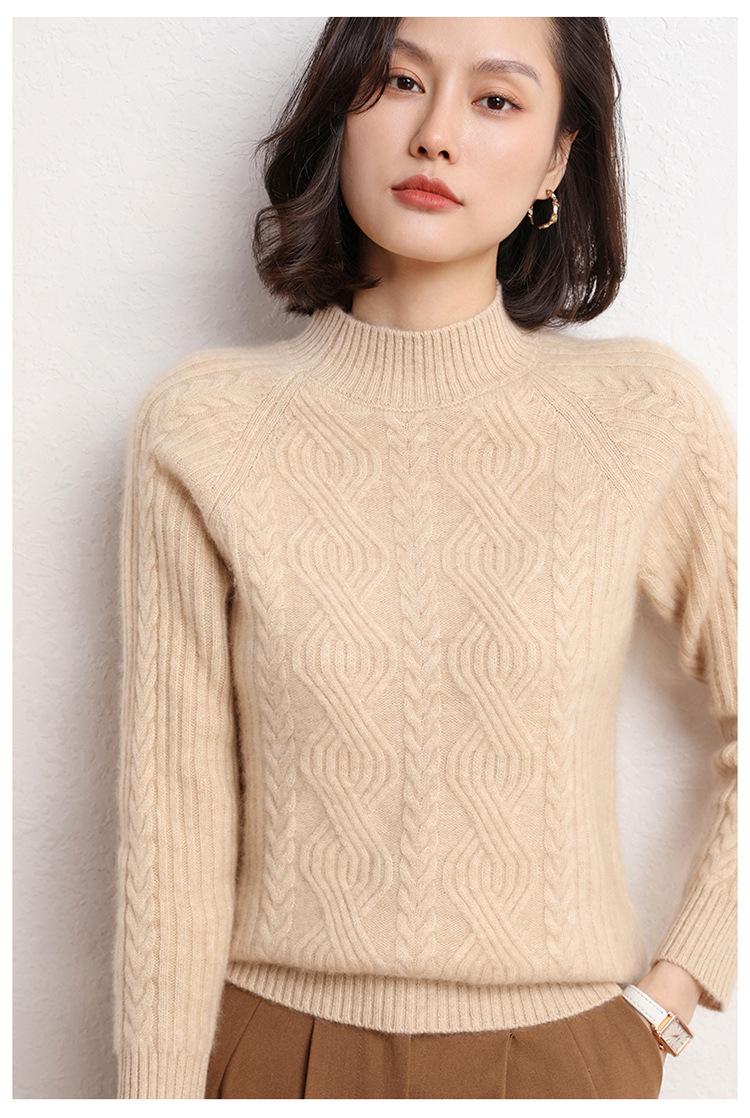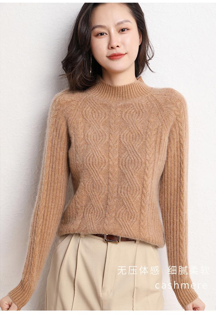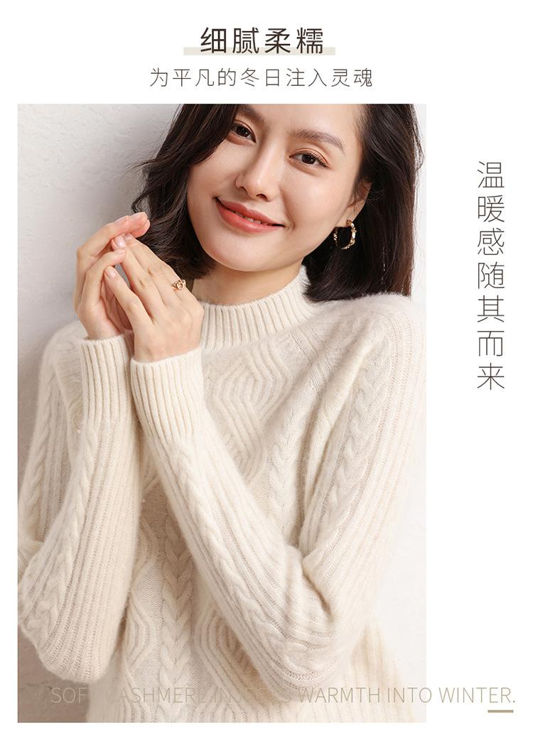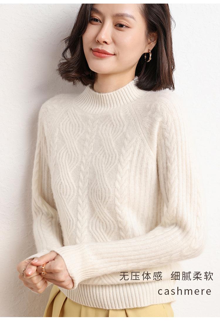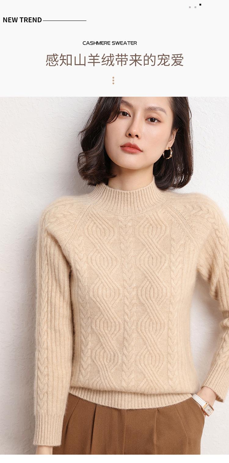 Suéter de Punto de Cachemira para Mujer de Otoño e Invierno 2023 de Cuello Medio Alto con Cordón de Color Sólido, Grueso, Base Adelgazante para Oficina