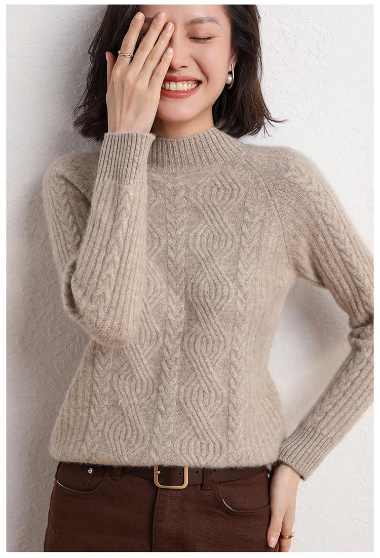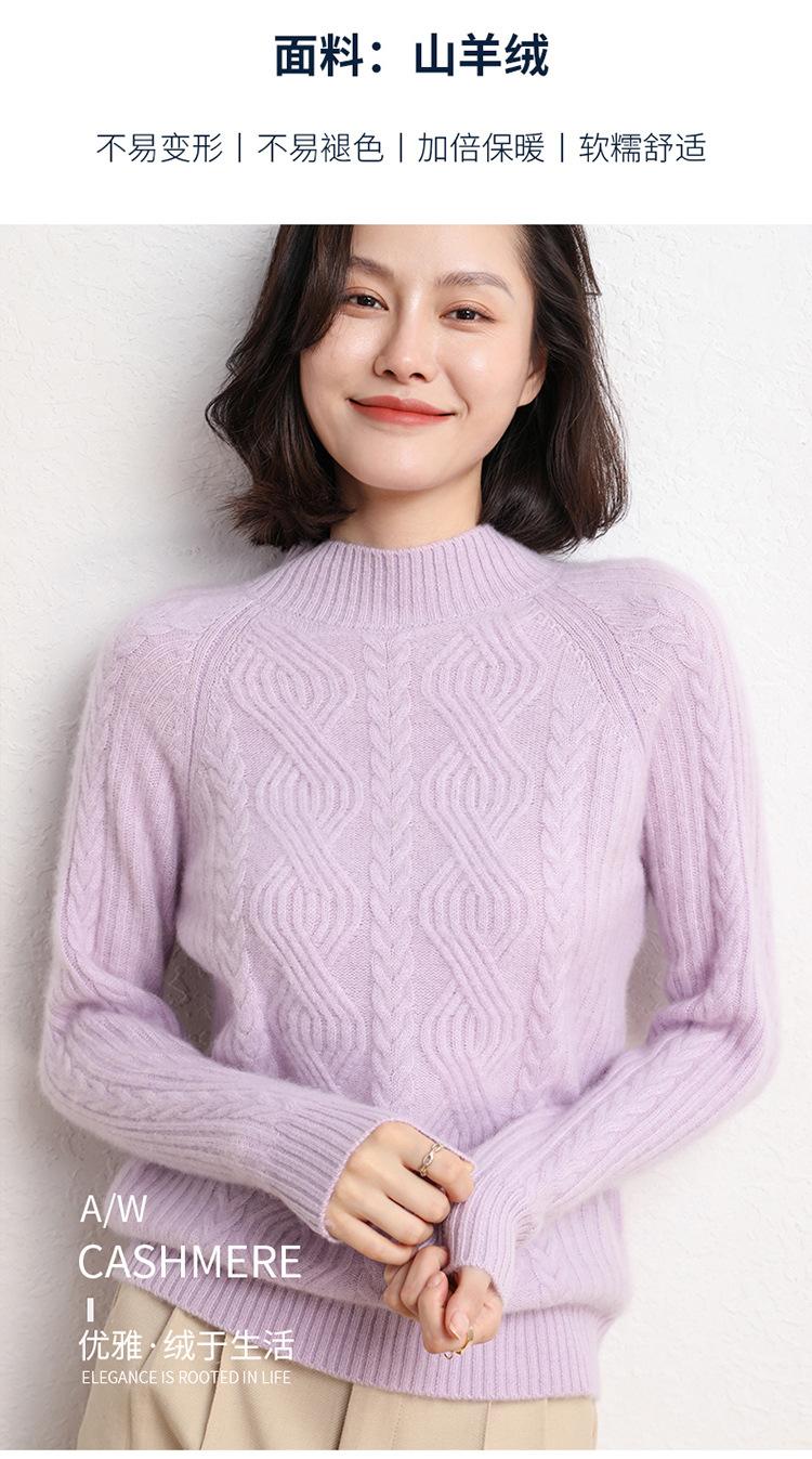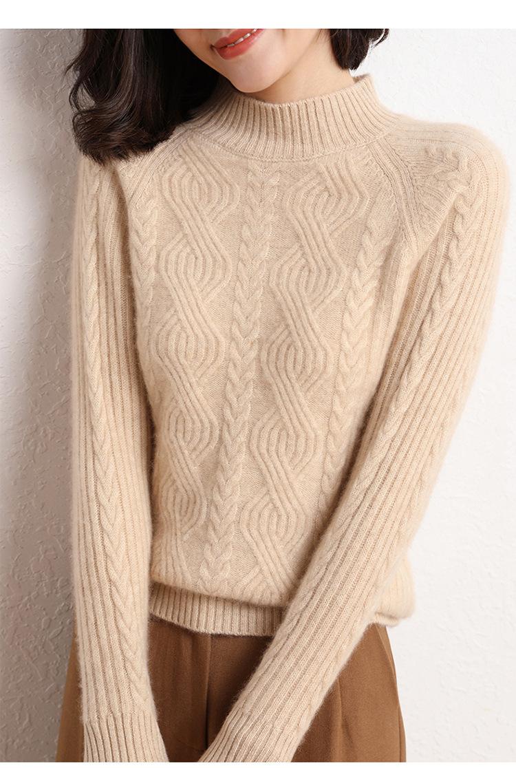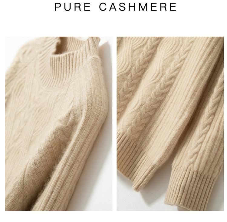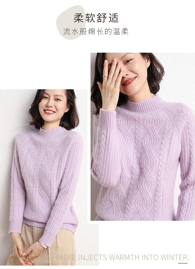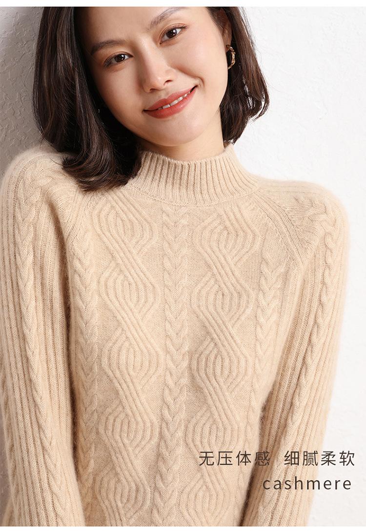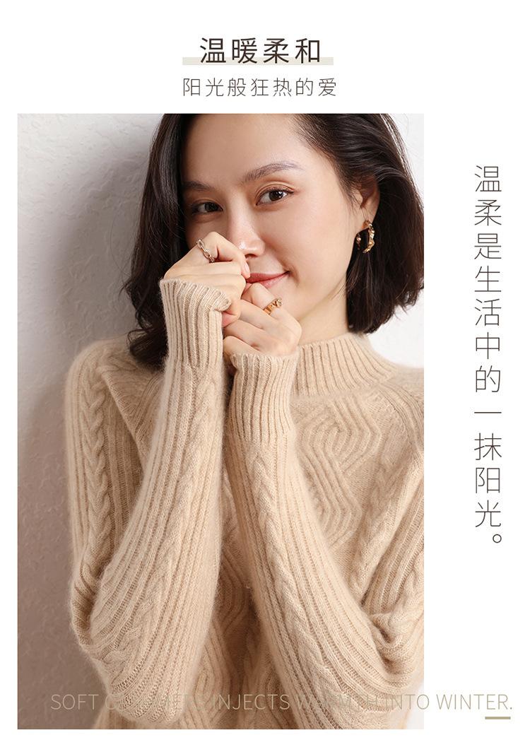 Suéter de Punto de Cachemira para Mujer de Otoño e Invierno 2023 de Cuello Medio Alto con Cordón de Color Sólido, Grueso, Base Adelgazante para Oficina