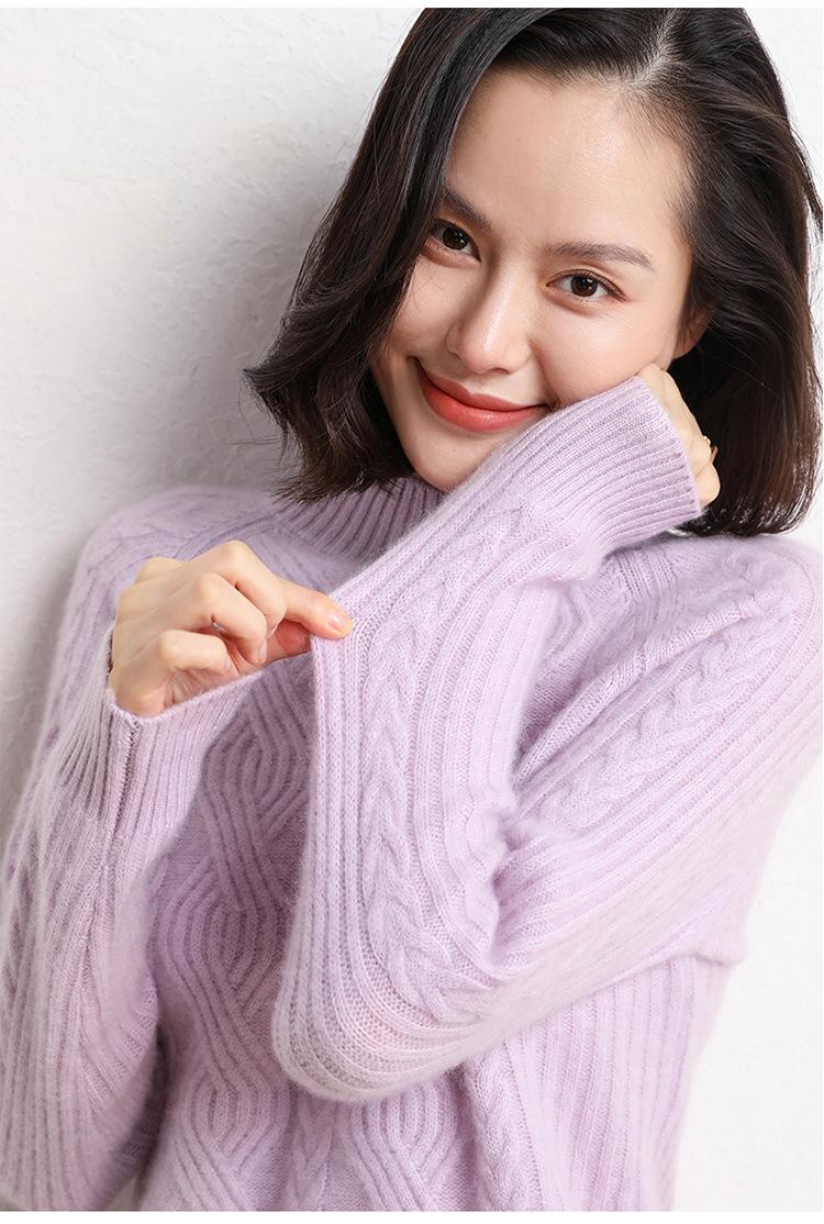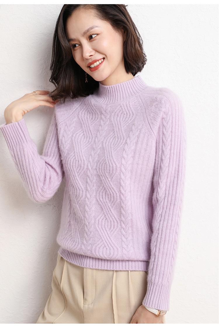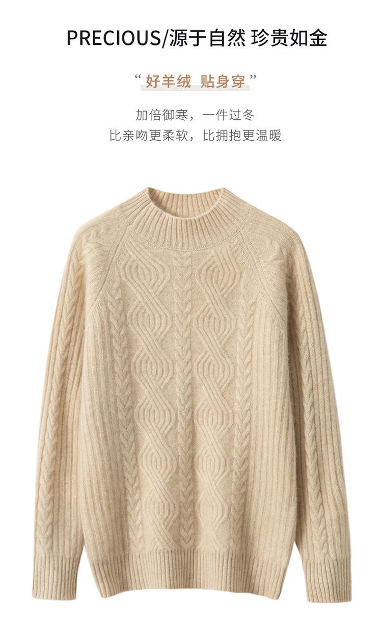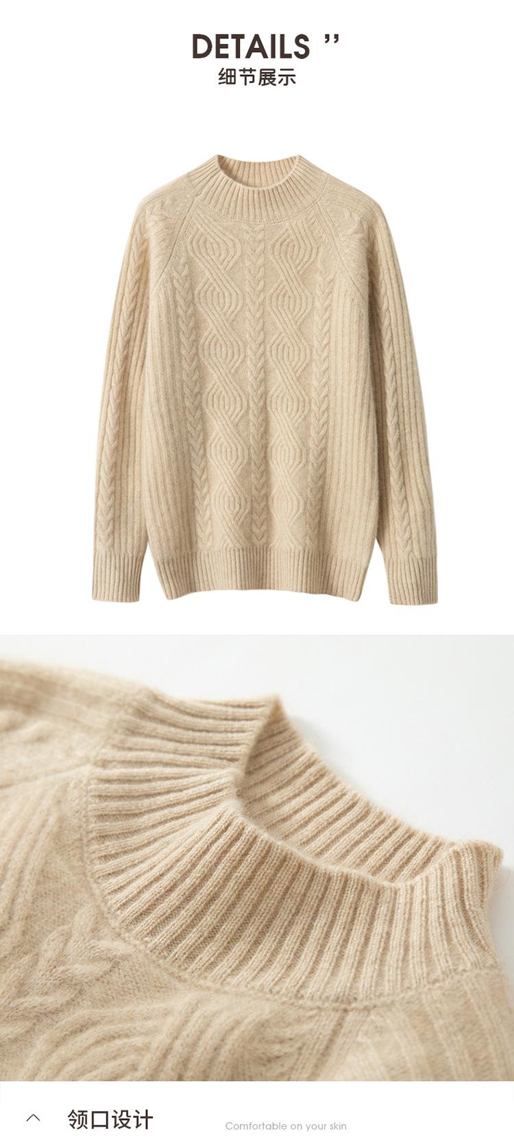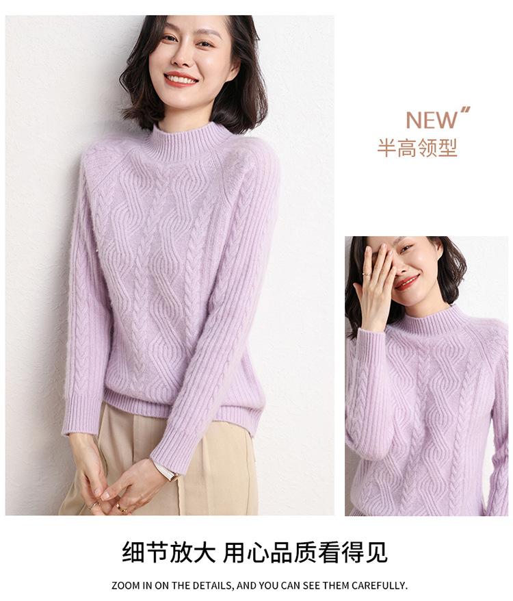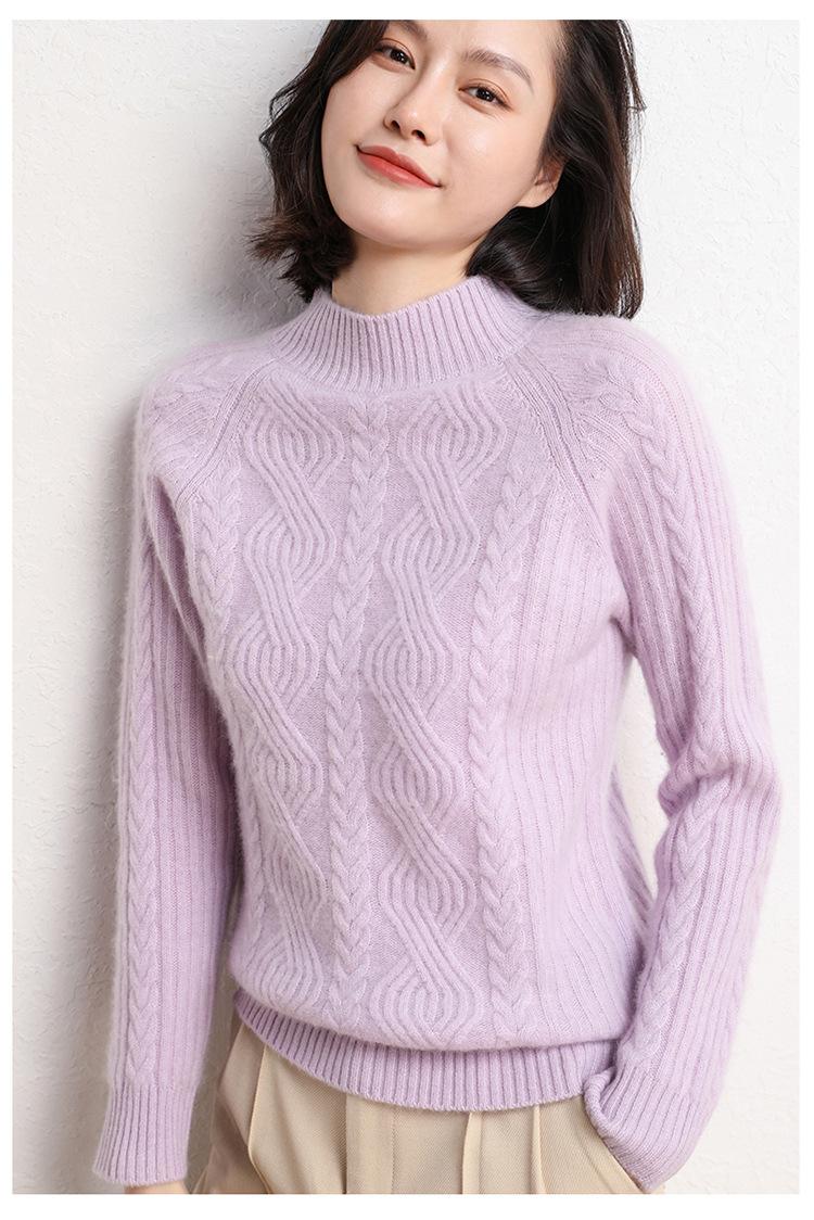 Suéter de Punto de Cachemira para Mujer de Otoño e Invierno 2023 de Cuello Medio Alto con Cordón de Color Sólido, Grueso, Base Adelgazante para Oficina