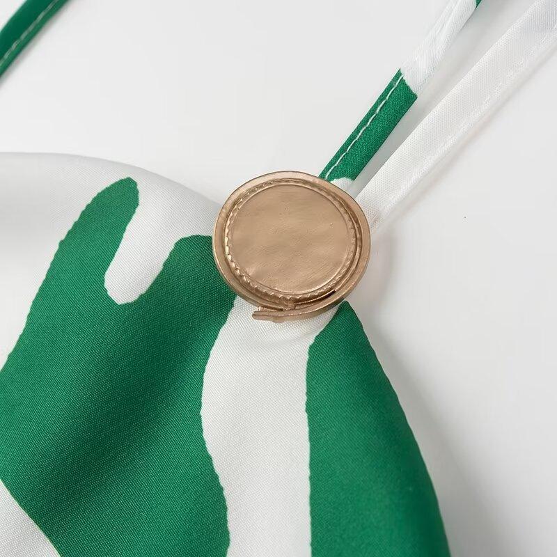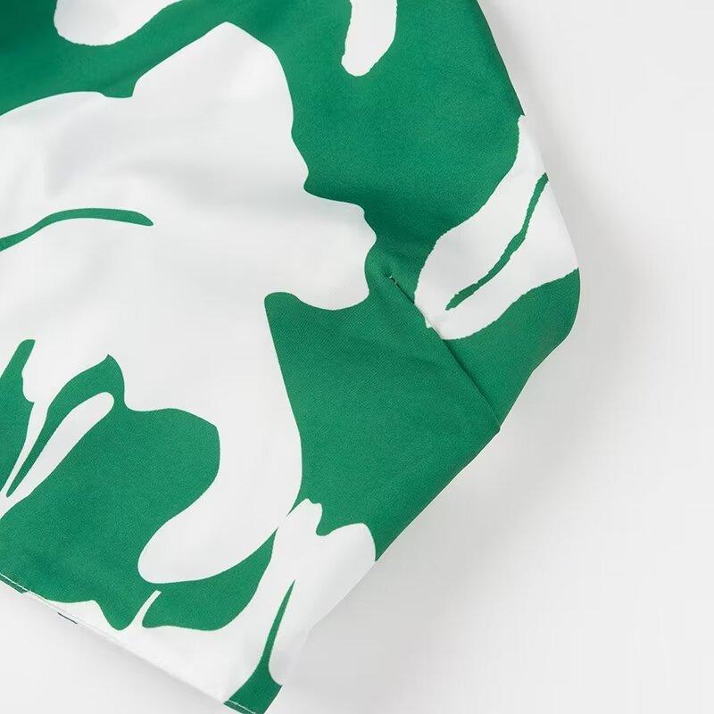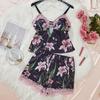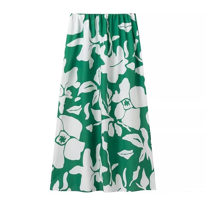 Estilo Europeo y Americano para Mujer Verano Nuevo Estilo Estampado Halterneck con Cordones Top Corto Falda de Cintura Alta Ajustada Traje