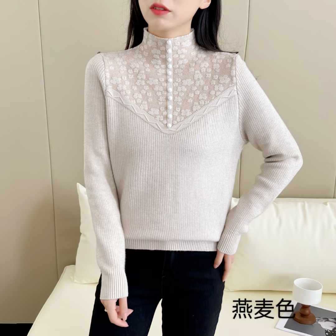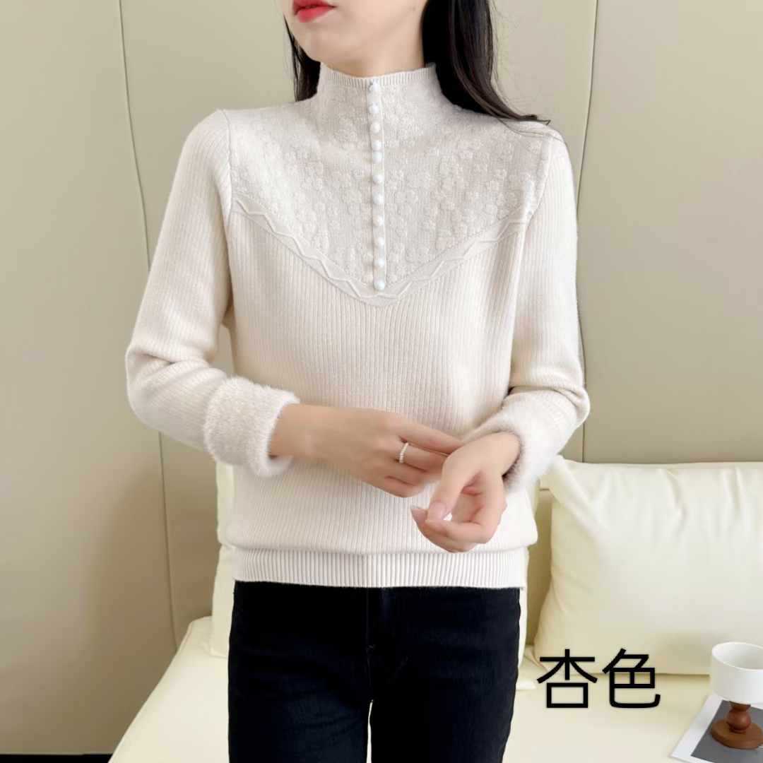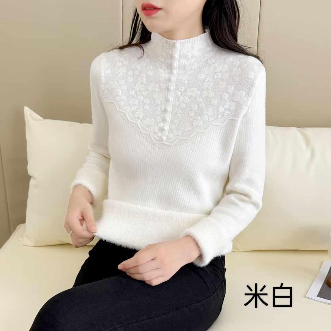 Nuevo Suéter Jersey de Punto de Cuello Alto Medio de Manga Larga para Mujer de Otoño e Invierno con Camiseta Básica de Terciopelo de Una Pieza