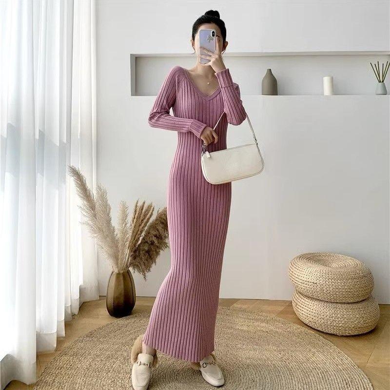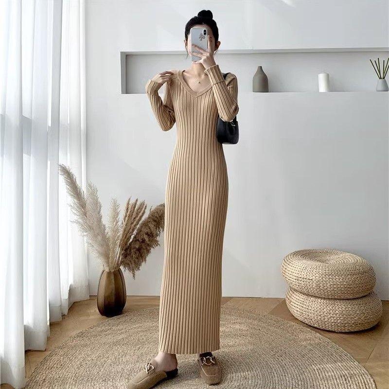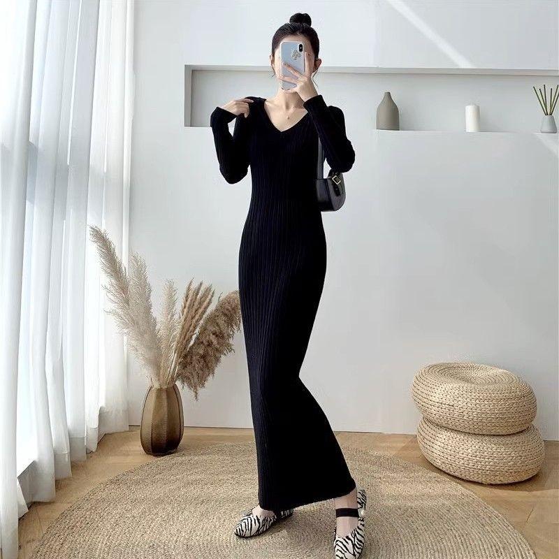 Vestido de manga larga elegante y sexy de moda francesa para mujer, primavera y otoño 2024, nuevo vestido ajustado y adelgazante.