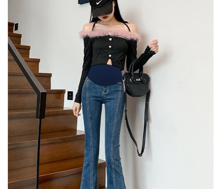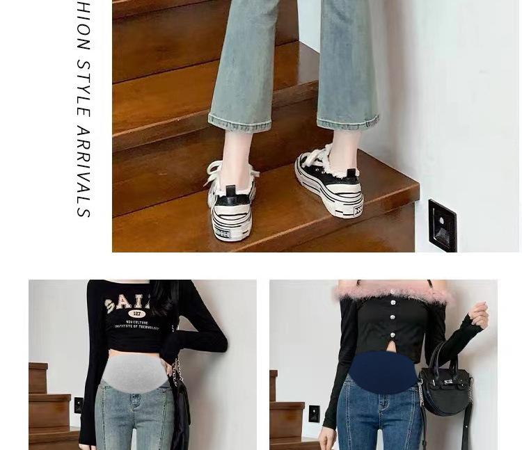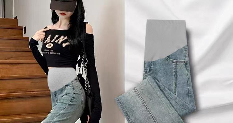 9286 Pantalones de Mujer Embarazada Jeans Moda Pantalones Campana Ropa de Verano Casual Moderno Mamá Casual Pantalones Recortados Pantalones Abdominales
