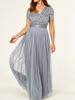 Vestido de Lentejuelas Estilo Nuevo Europeo y Americano Transfronterizo de Manga Corta con Cuello en V Bajo Amplio Vestido de Noche Cintura Alta Elegante Vestido de Banquete