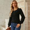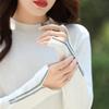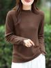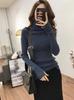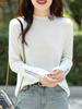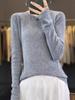 Suéter de lana peinada de manga larga y fina de principios de otoño para mujer, suéter de punto estilo occidental con perforación en caliente y cuello medio alto.