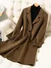 Abrigo de lana de doble cara para mujer, novedad de 2024, informal, de otoño e invierno, con cuello de traje, aspecto entallado, de lana, estilo coreano, por encima de la rodilla.