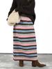 Louvre Otoño e Invierno Nueva Falda de Lana Retro Estilo Japonés con Rayas de Contraste Cómoda y Cálida Falda Larga Acampanada para Mujer