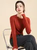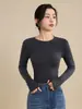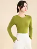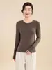 Suéter Básico de Punto de Lujo Ligero con Cuello Redondo Cepillado para Mujer, Estilo Otoño e Invierno, Corte Ajustado, Elástico, Cálido