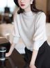 Suave desbordamiento de adentro hacia afuera ~ ~ Camisa de punto de manga de cuerno de 7 puntos tricolor para mujer Camisa base Joker de principios de otoño Tide