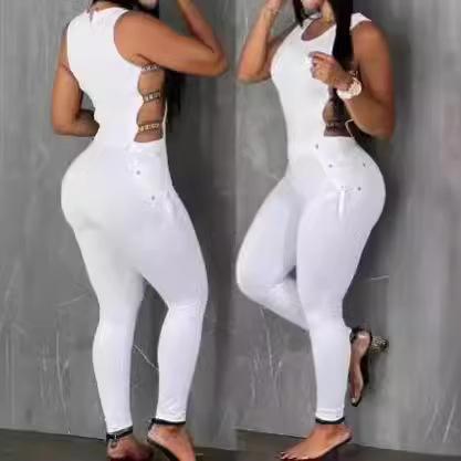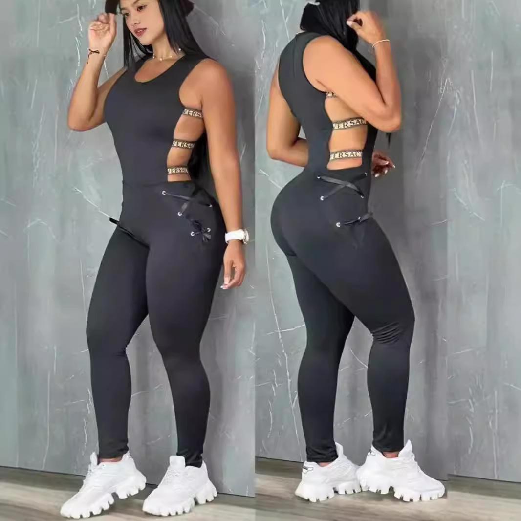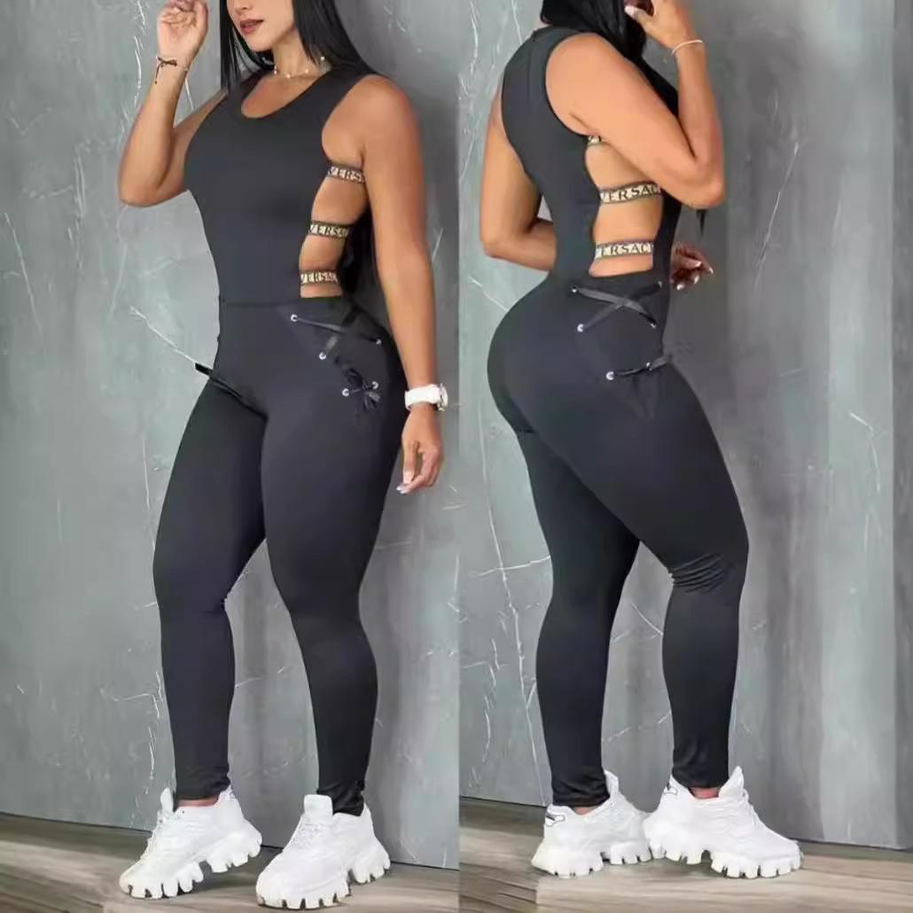 Mono ajustado estilo punk sexy con tirantes finos y huecos para mujer europea y americana, novedad de verano de 2024