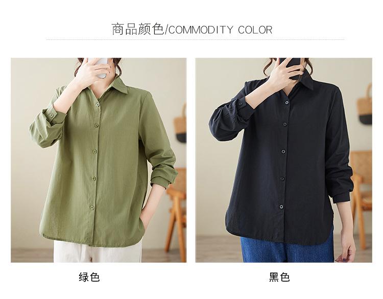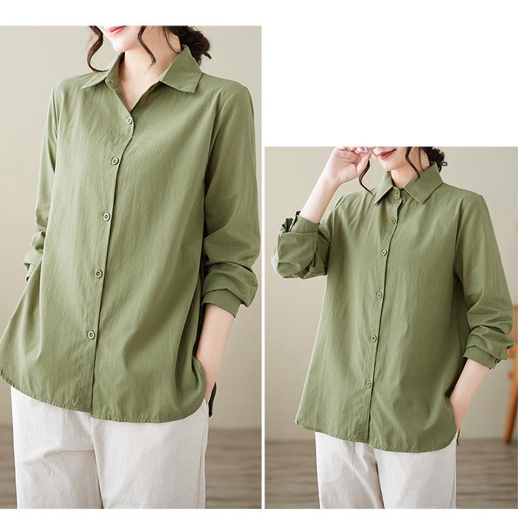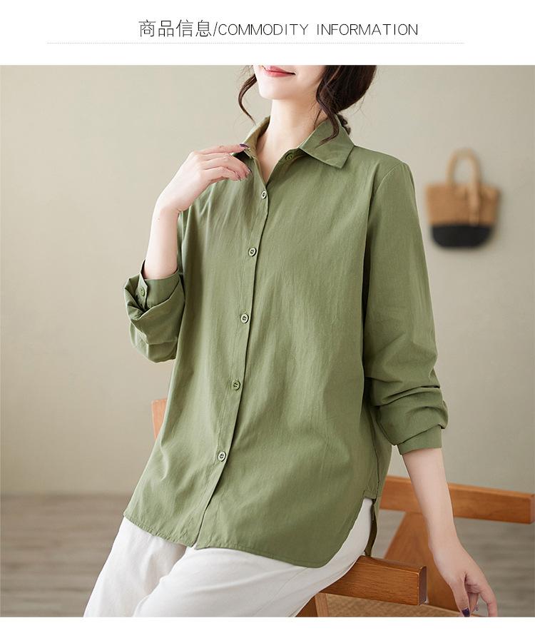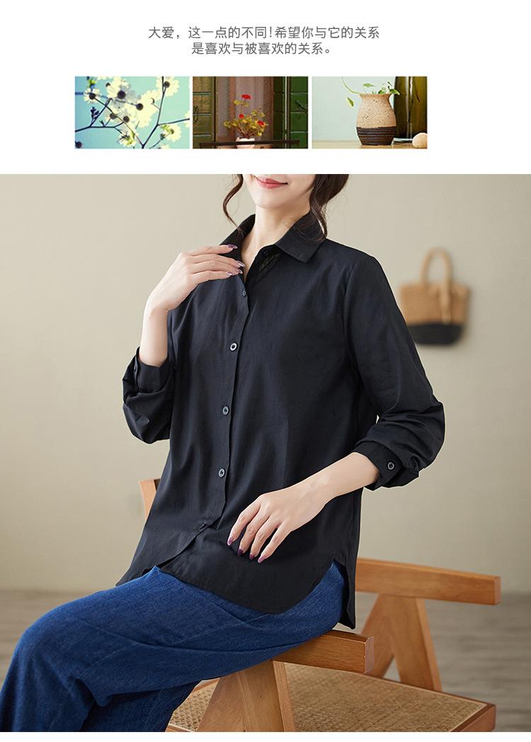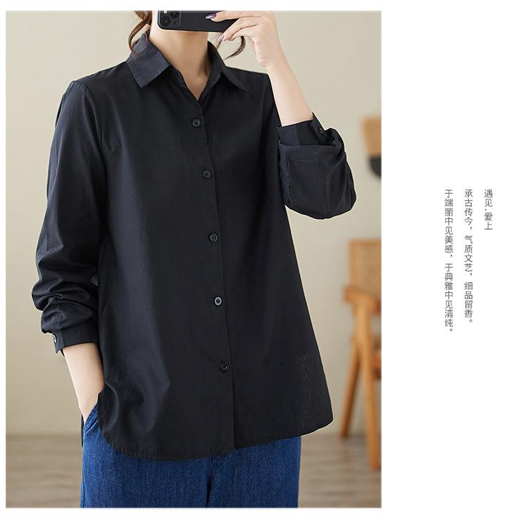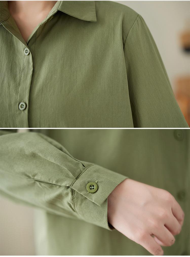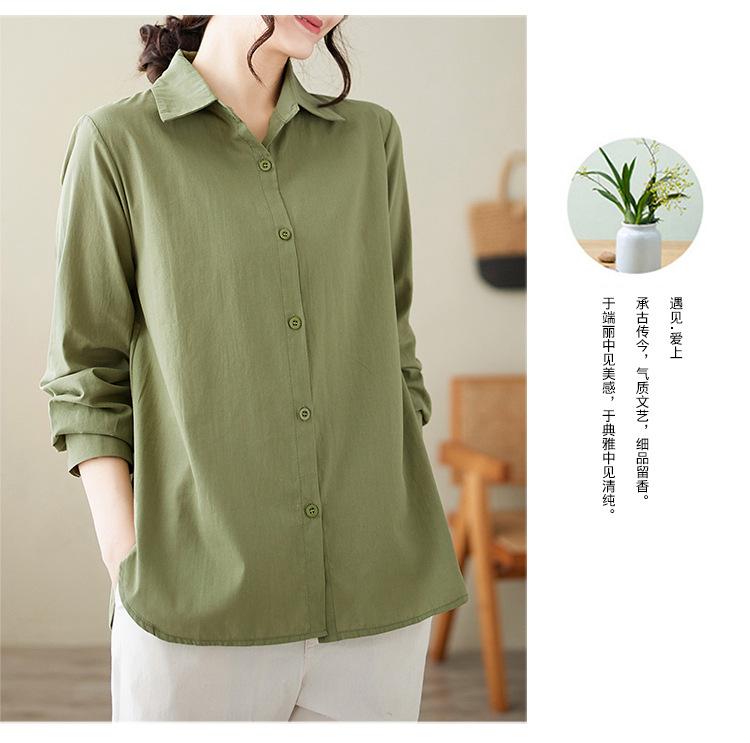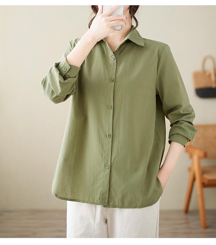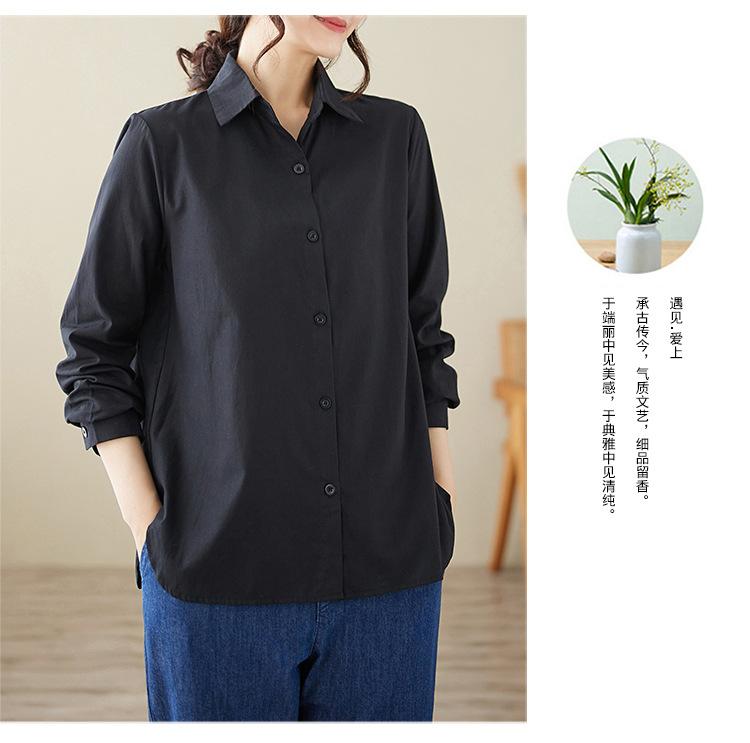 Camisa holgada de algodón y lino de talla grande, de otoño 2024, con temperamento, informal, versátil y a la moda para mujer.