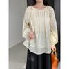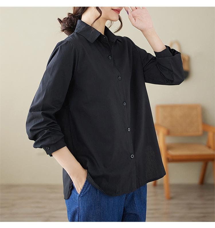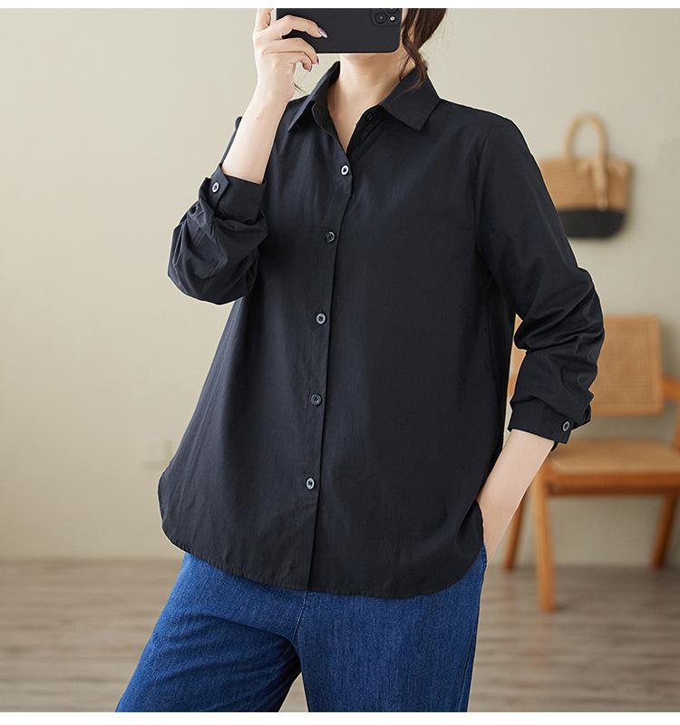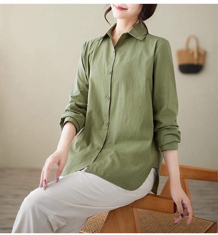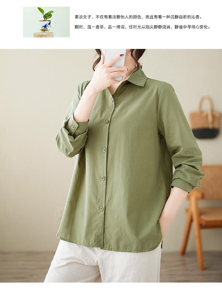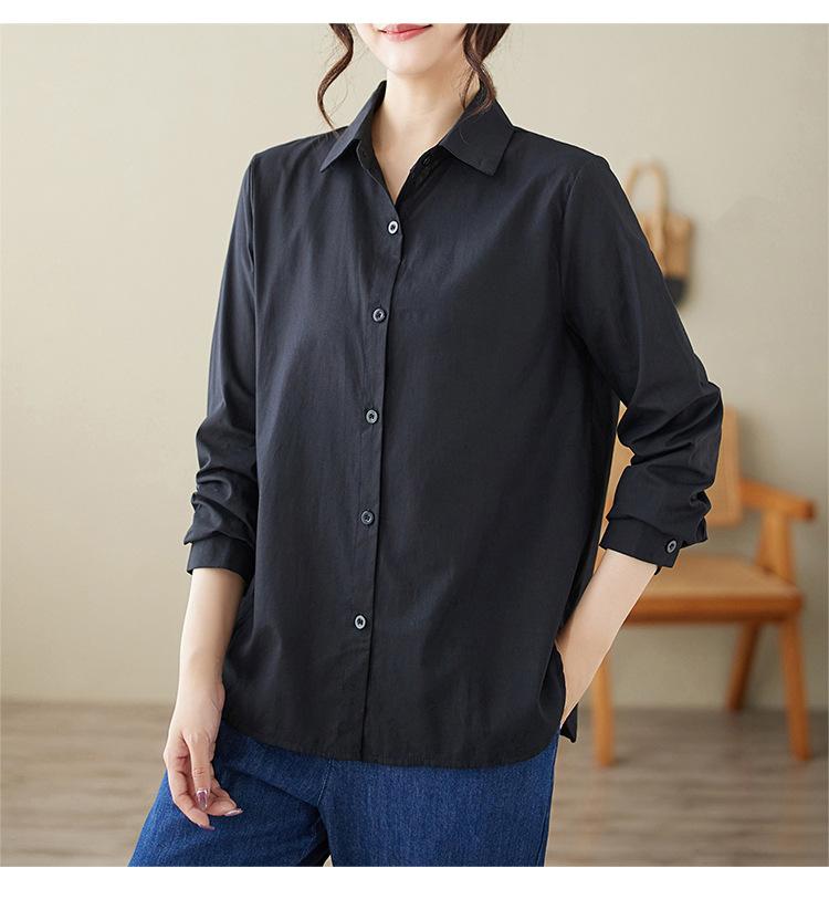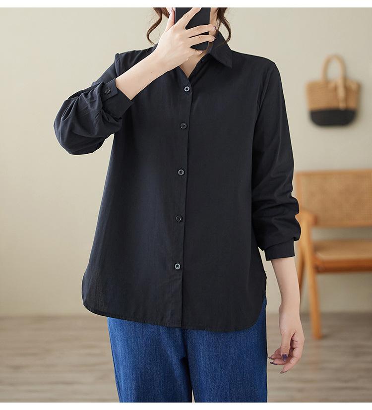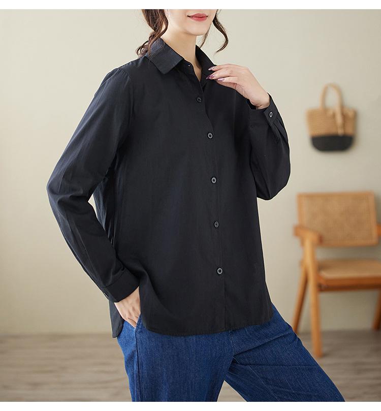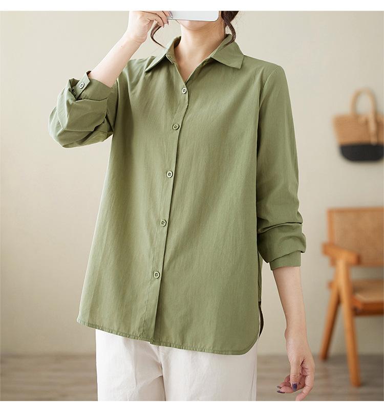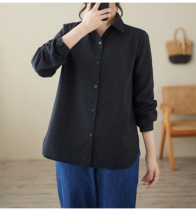 Camisa holgada de algodón y lino de talla grande, de otoño 2024, con temperamento, informal, versátil y a la moda para mujer.