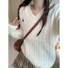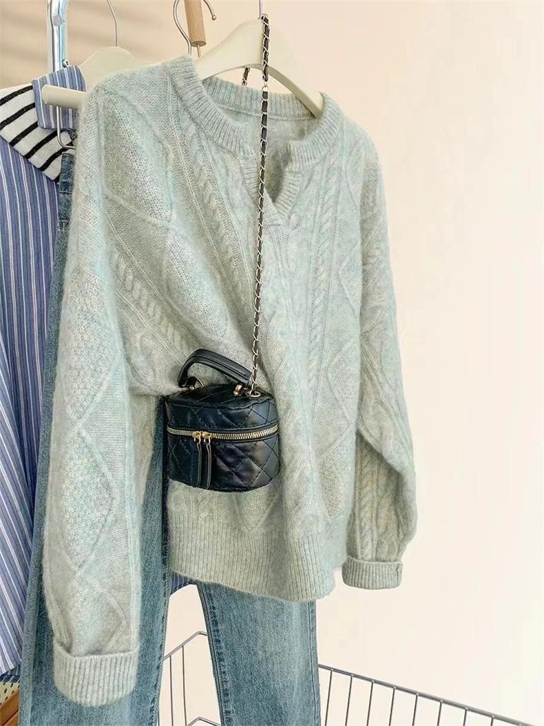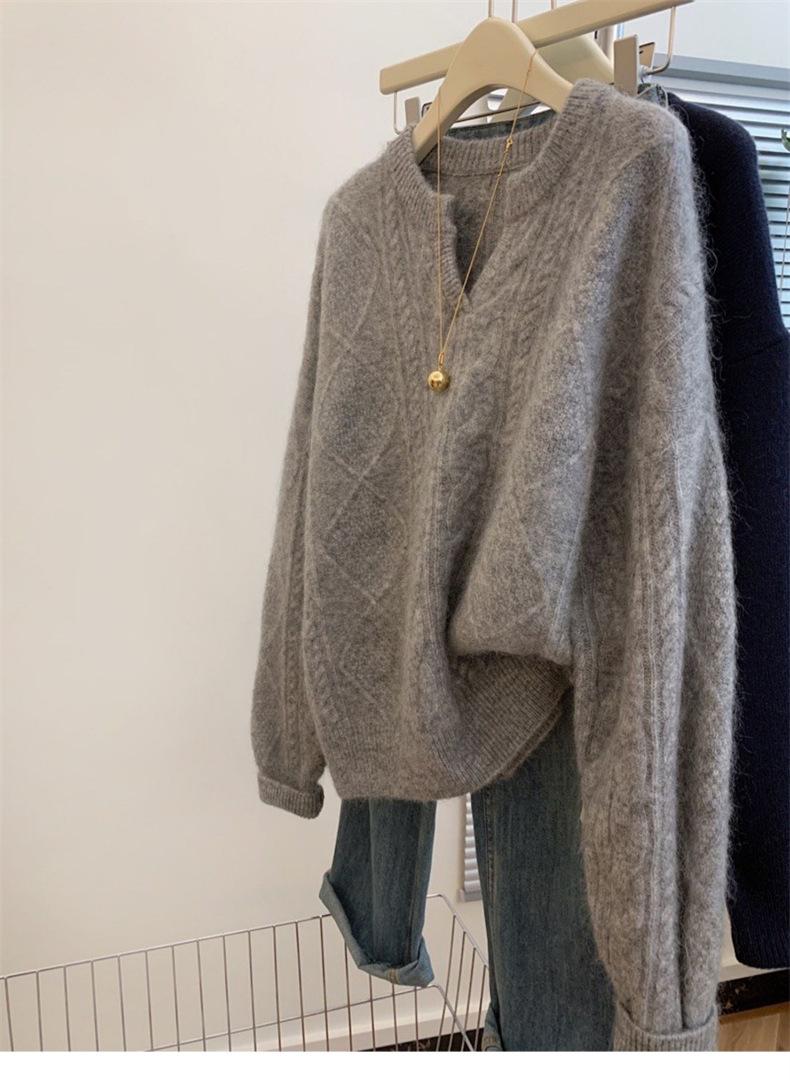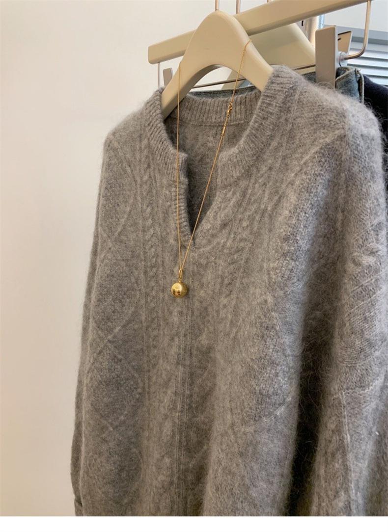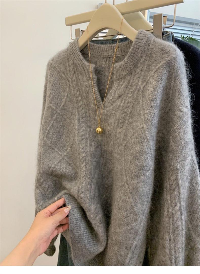 Suéter tipo cárdigan de cuello redondo estilo perezoso coreano nuevo de otoño e invierno para mujer, tops casuales sueltos y suaves que no dañan la piel.